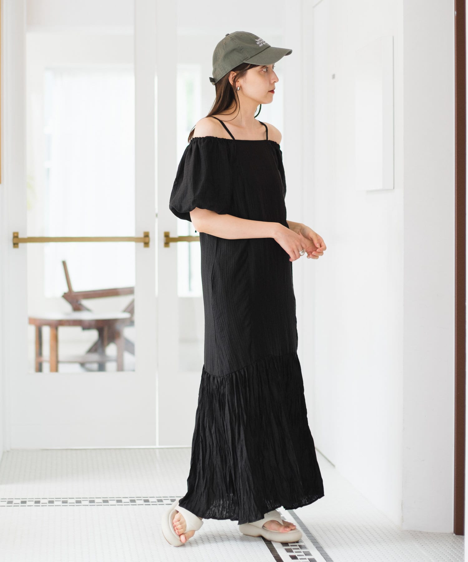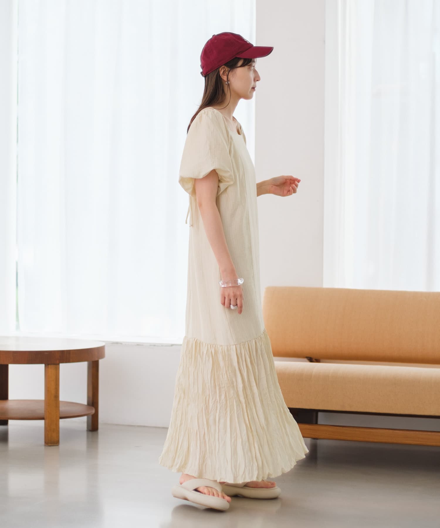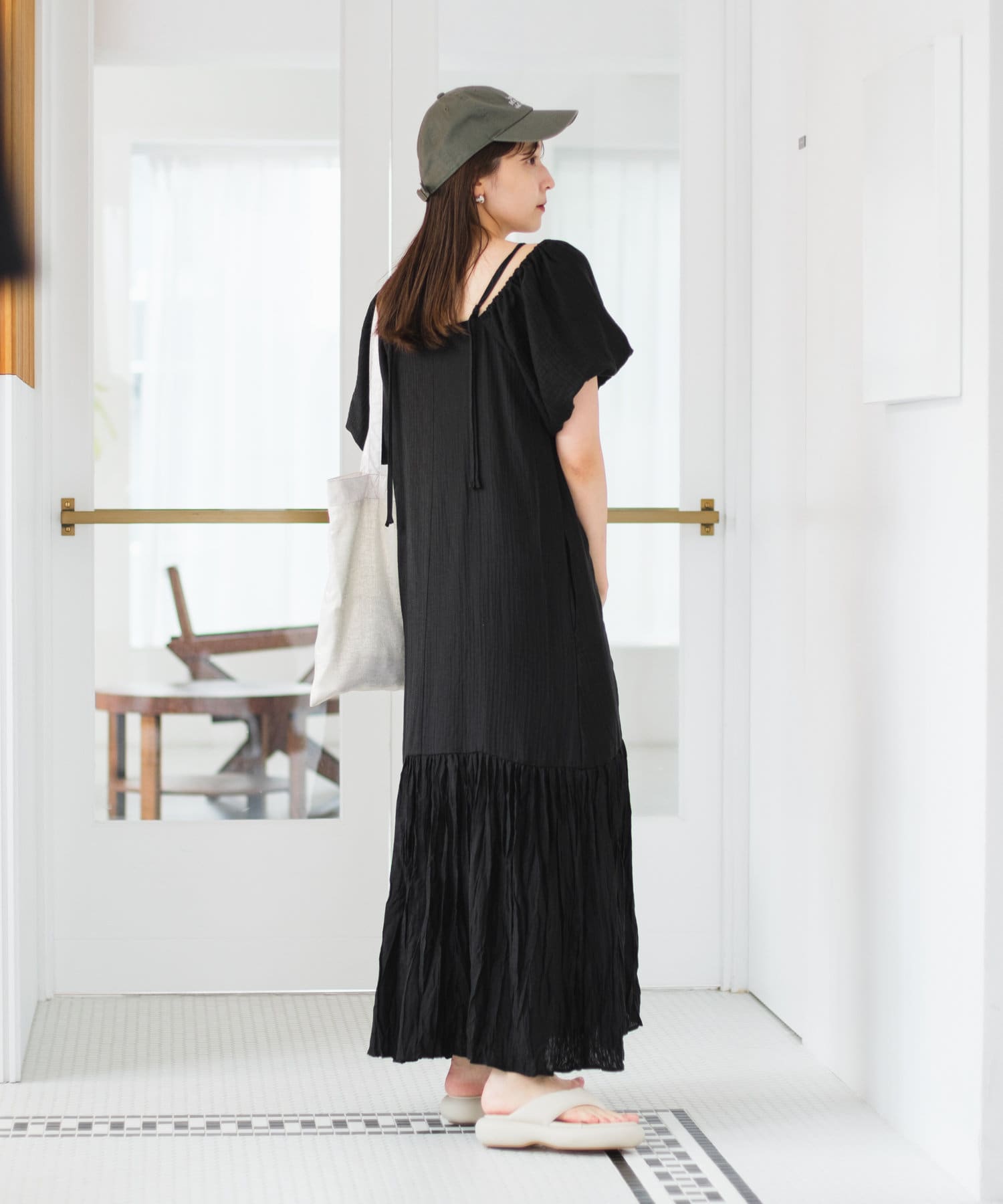 人気アイテムのギャザーオールインワンがワンピースverになって登場。