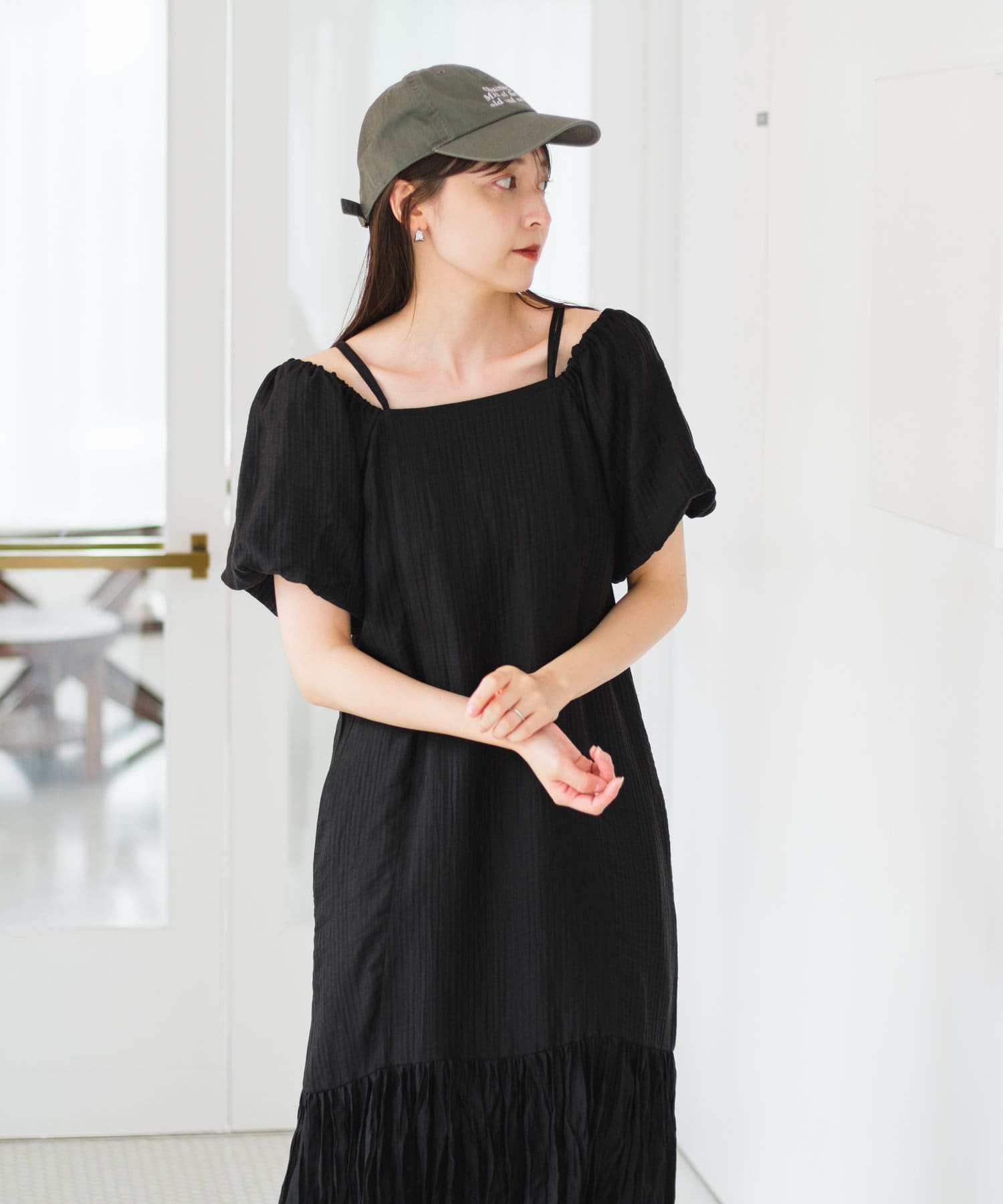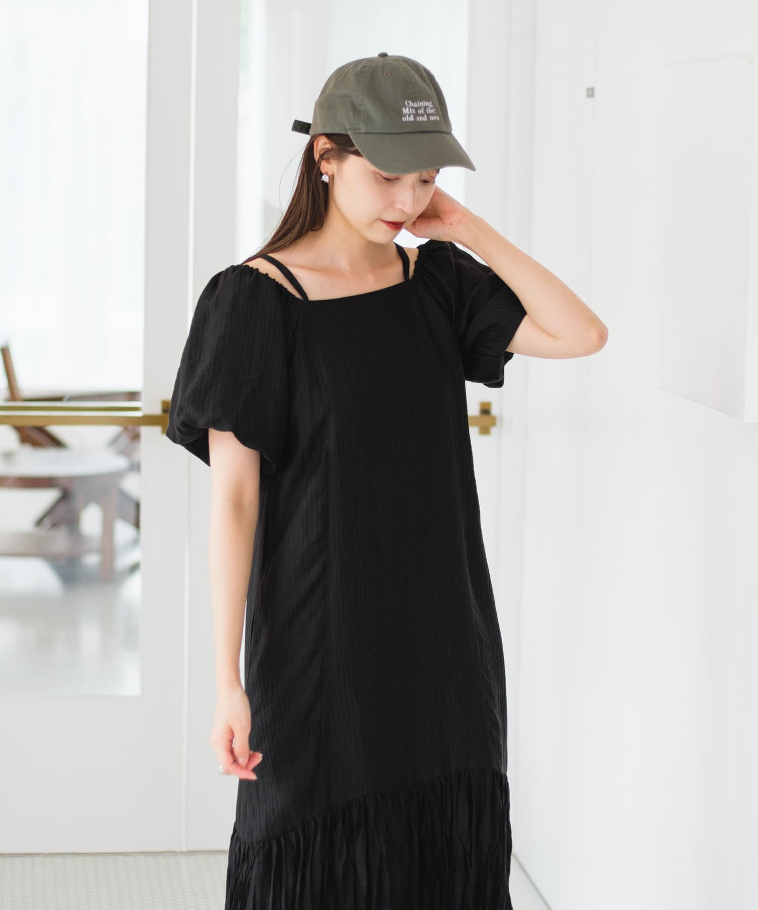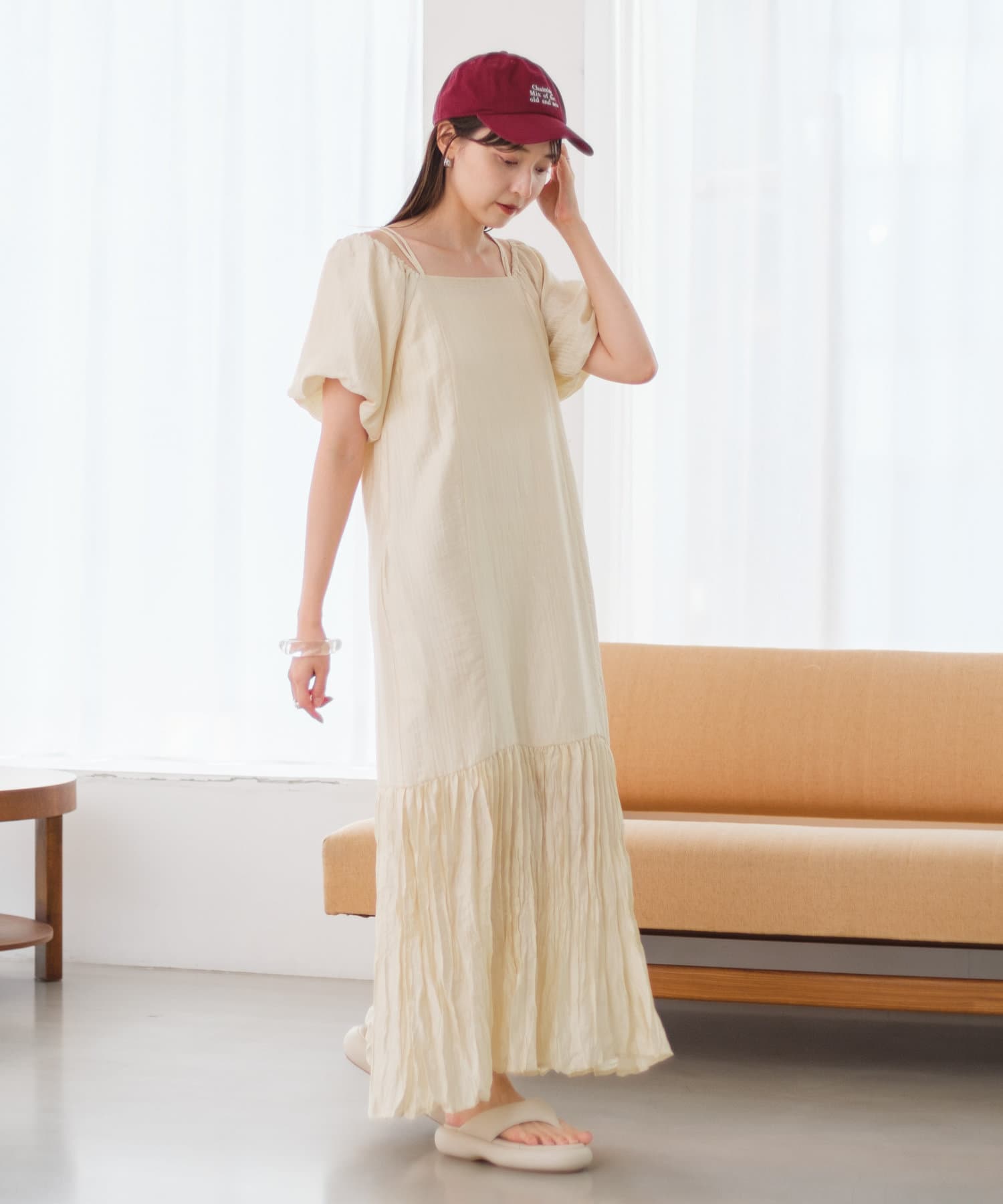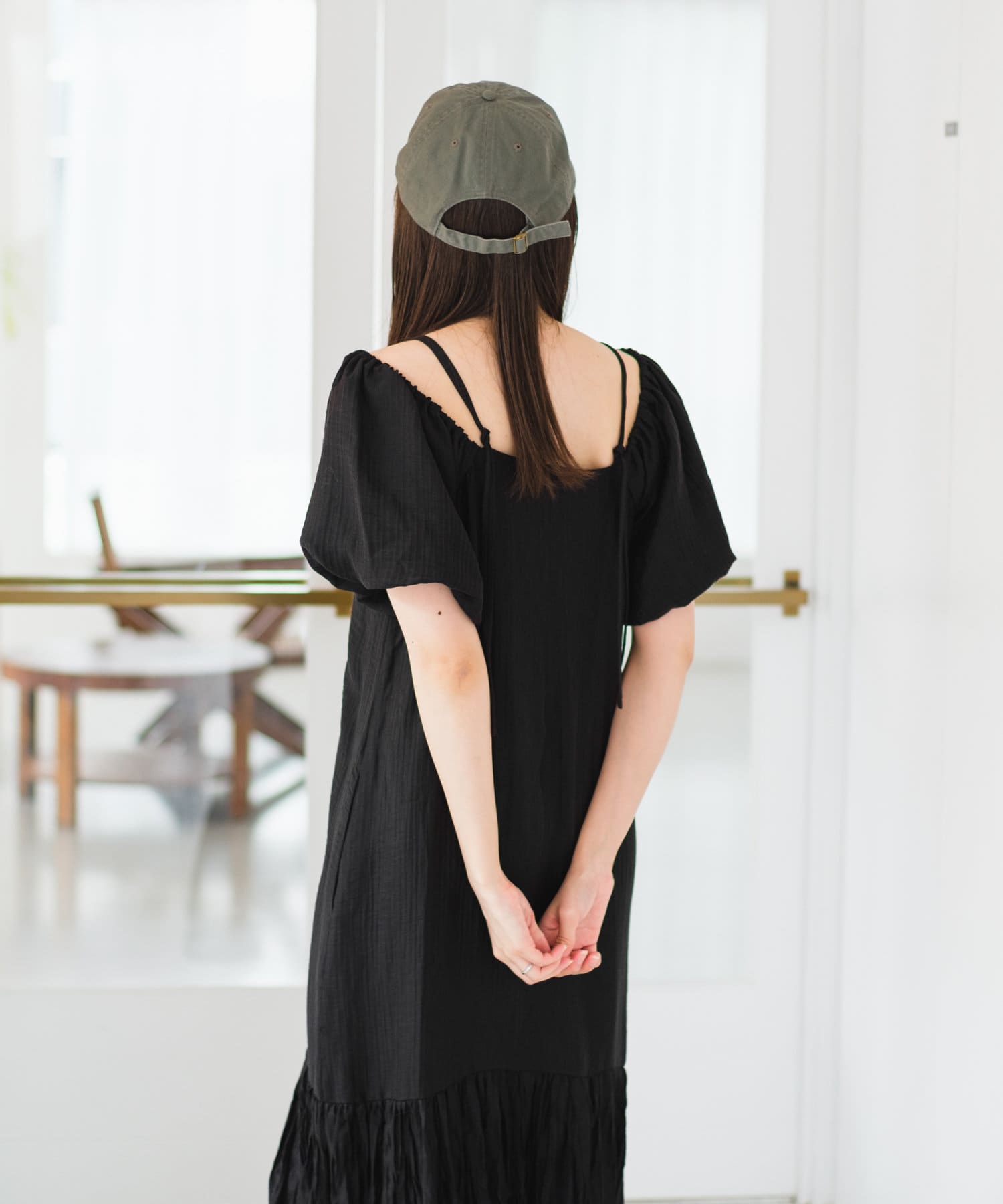 【2サイズ展開/2WAY/裏地付き/着丈調節可】ギャザーバルーン袖付きワンピース