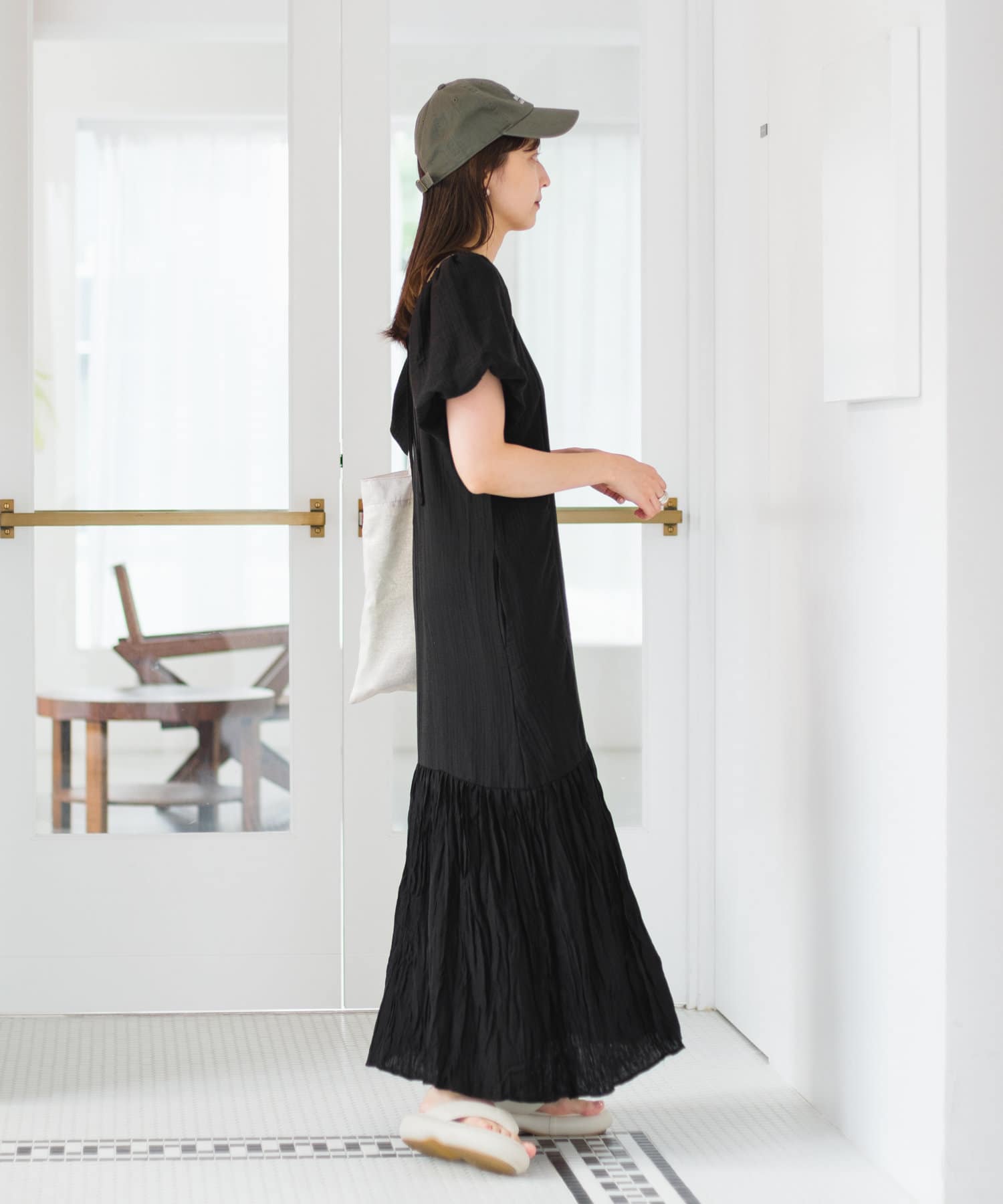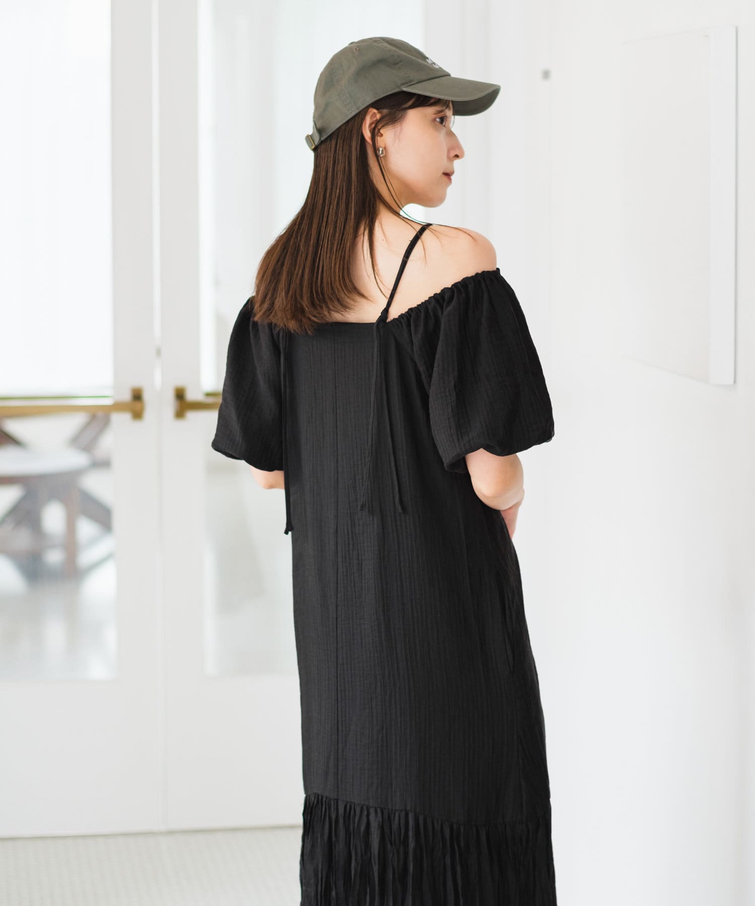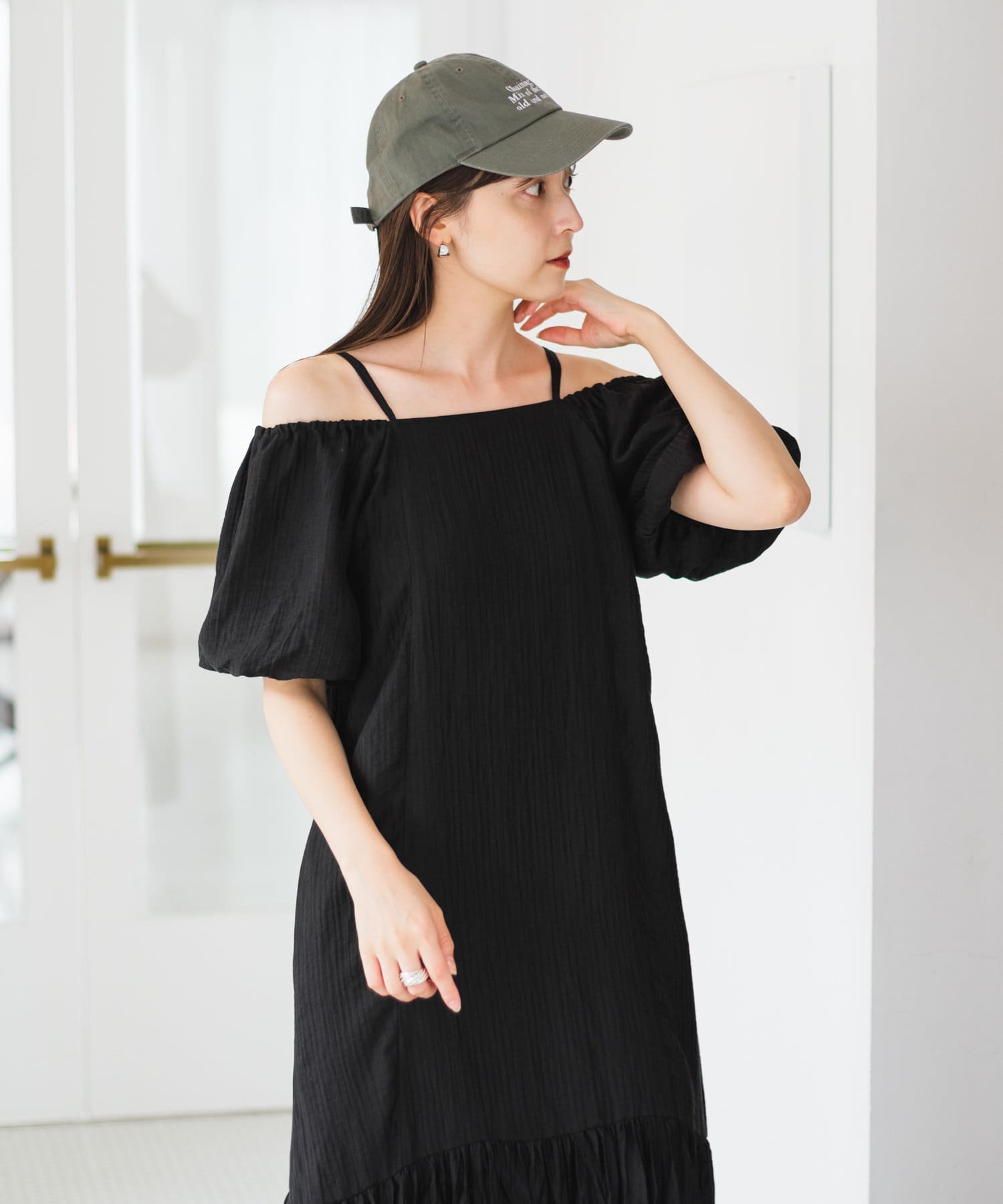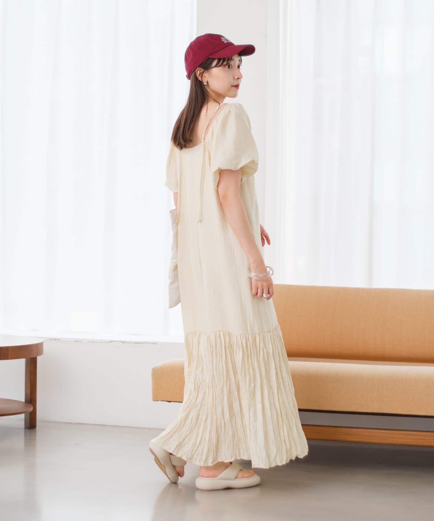【2サイズ展開/2WAY/裏地付き/着丈調節可】ギャザーバルーン袖付きワンピース