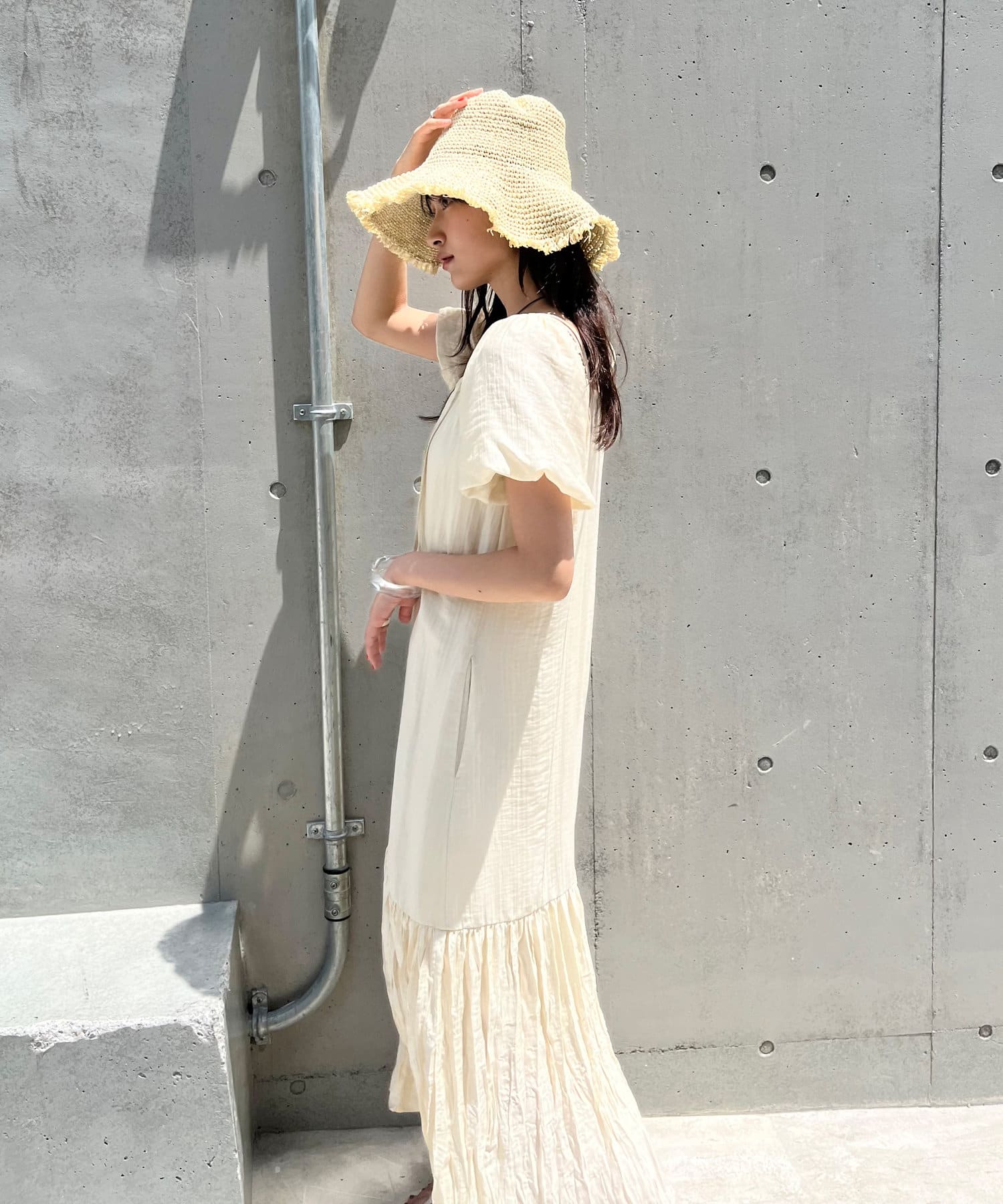 サンダルや麦わら帽子、カゴバッグなど夏らしい小物と相性抜群。