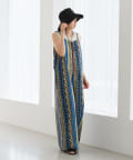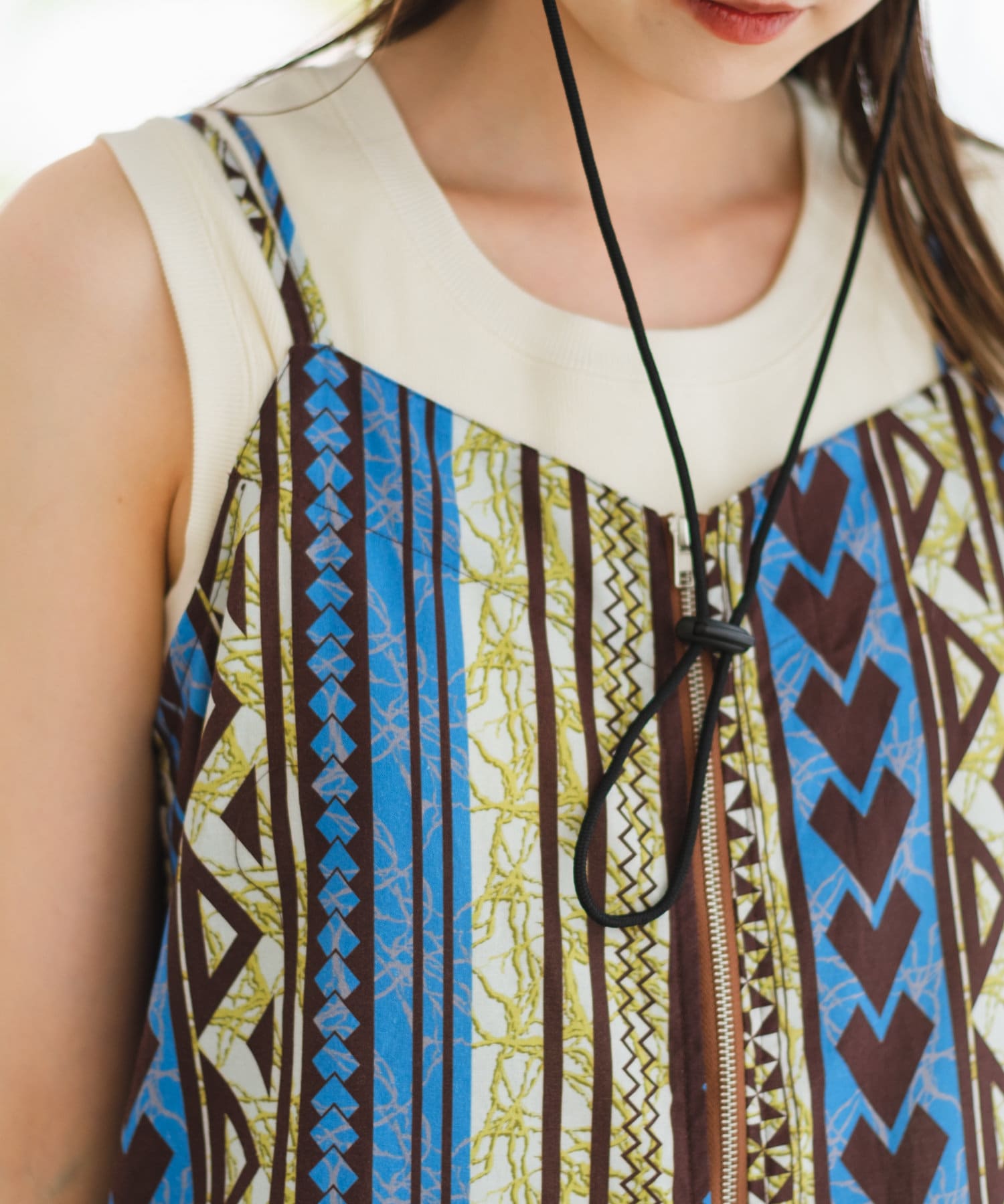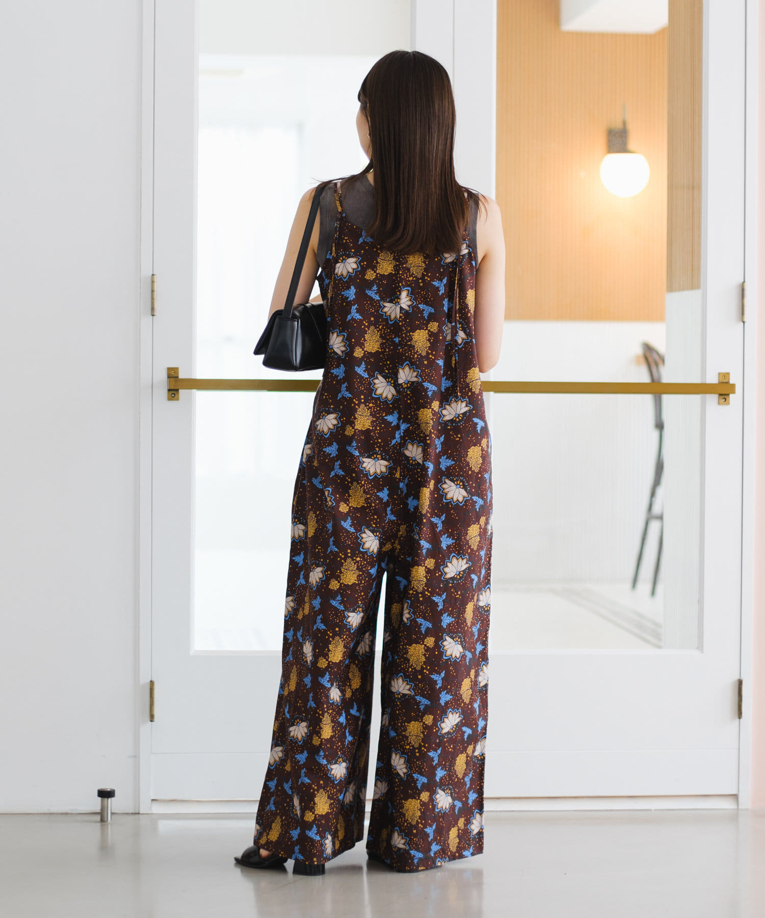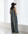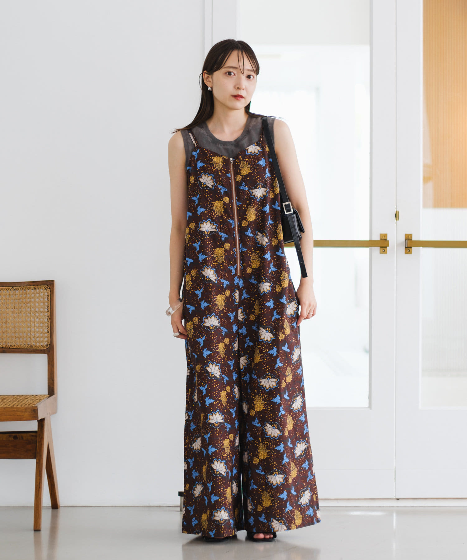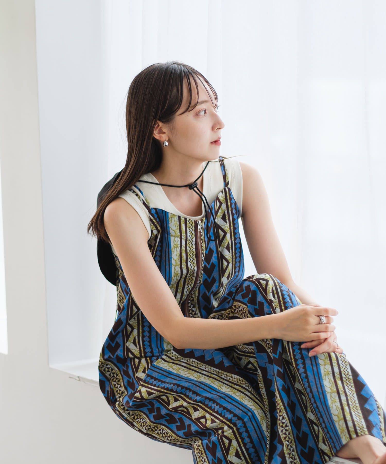 色鮮やかなアフリカンバティックの要素をふんだんに取り入れたバティック柄のサロペット。