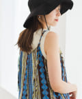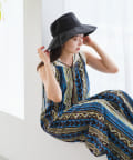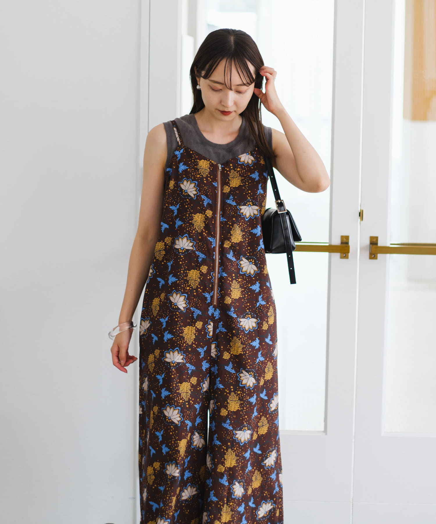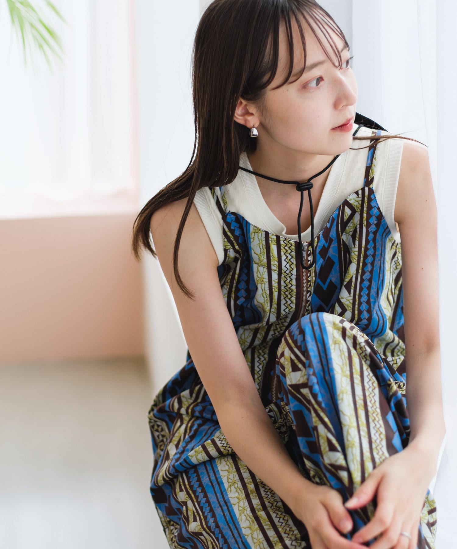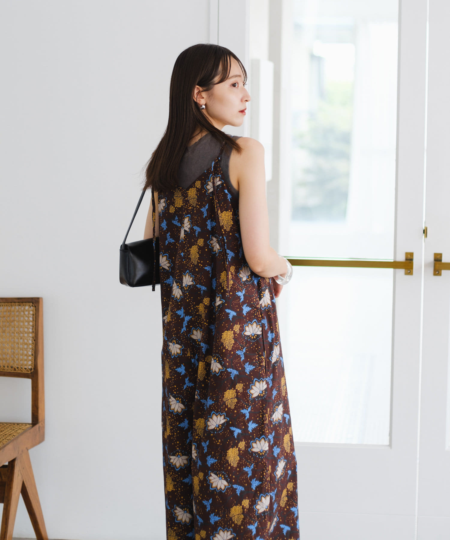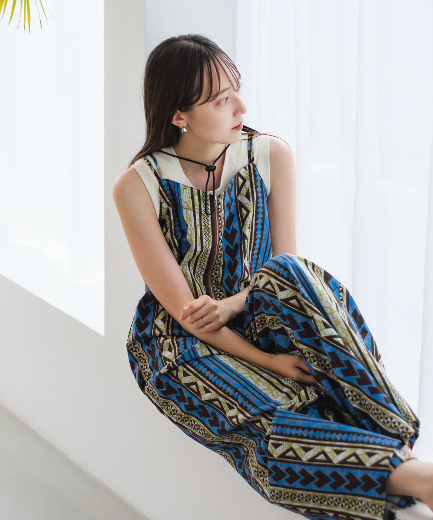 色鮮やかなアフリカンバティックの要素をふんだんに取り入れたバティック柄のサロペット。