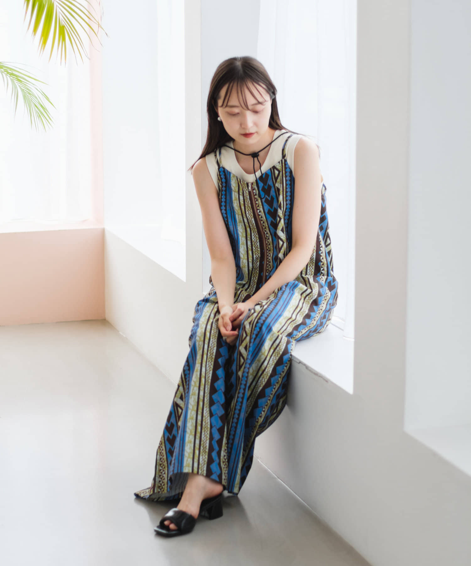 フリーサイズですが長めなので、肩紐以外にも厚底サンダル合わせやベルトで丈感を調節していただくと