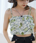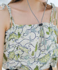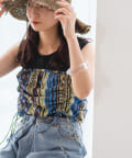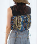 夏らしさ溢れるバティック柄のビスチェ。肩紐の結び具合で長さの調節が可能です。