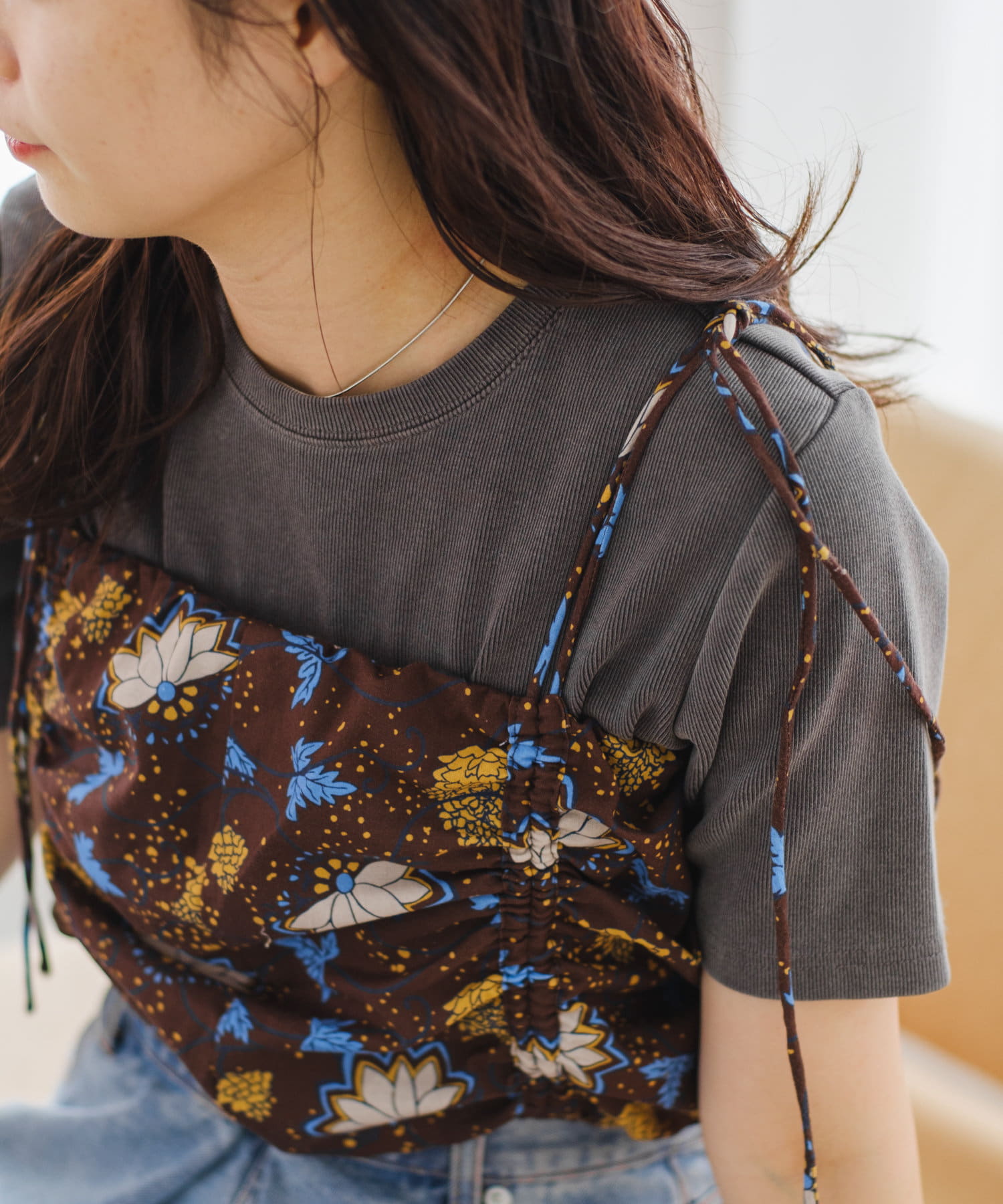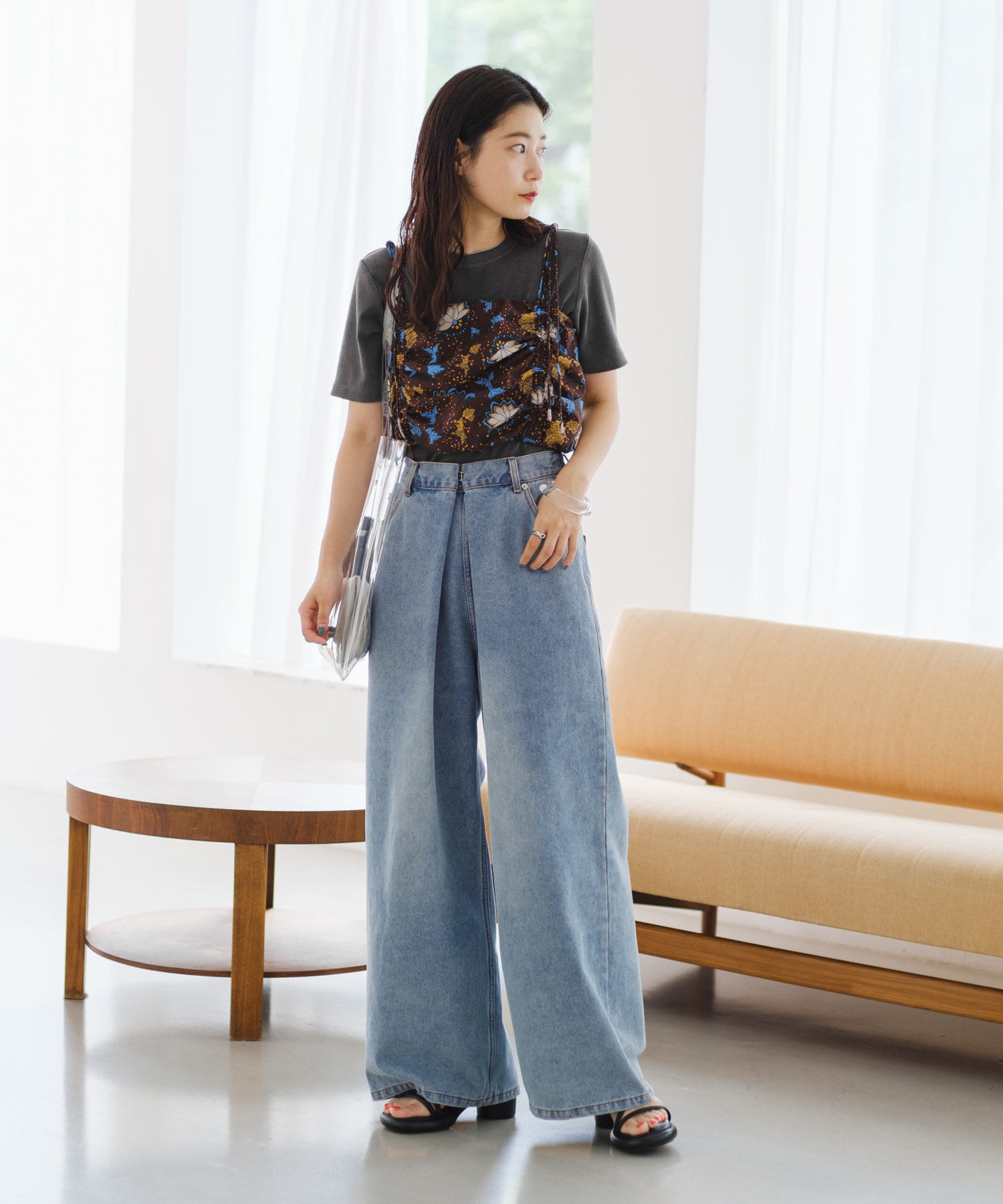 ベーシックなTシャツやタンクトップに合わせるだけで夏らしいスタイリングに仕上がります。
