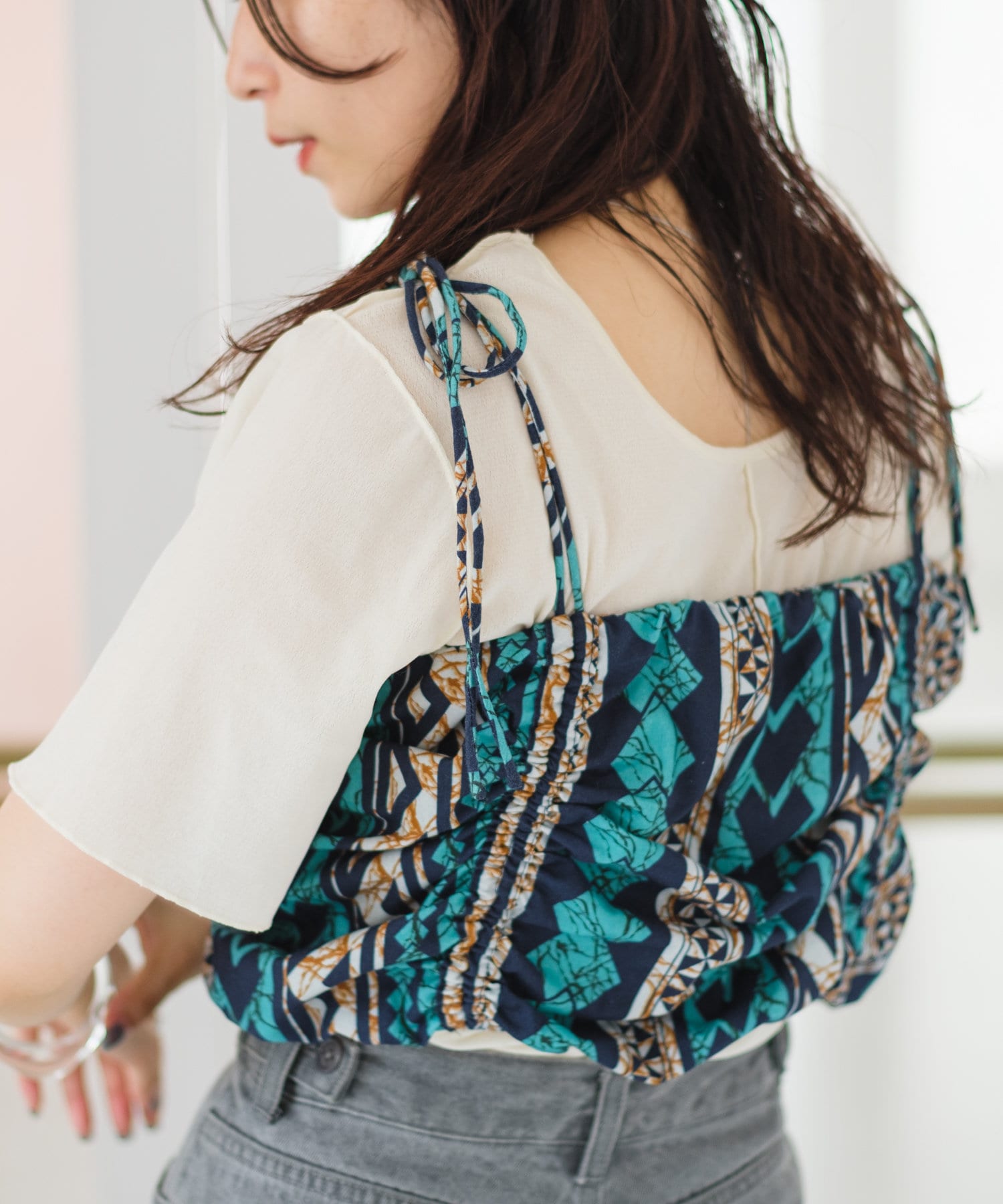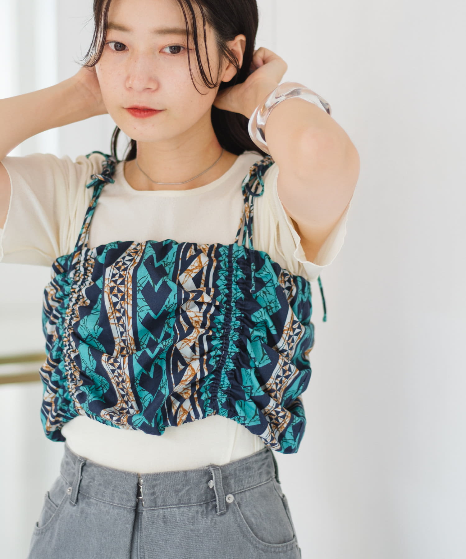 【Kastane】バティック柄ギャザービスチェ