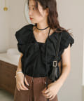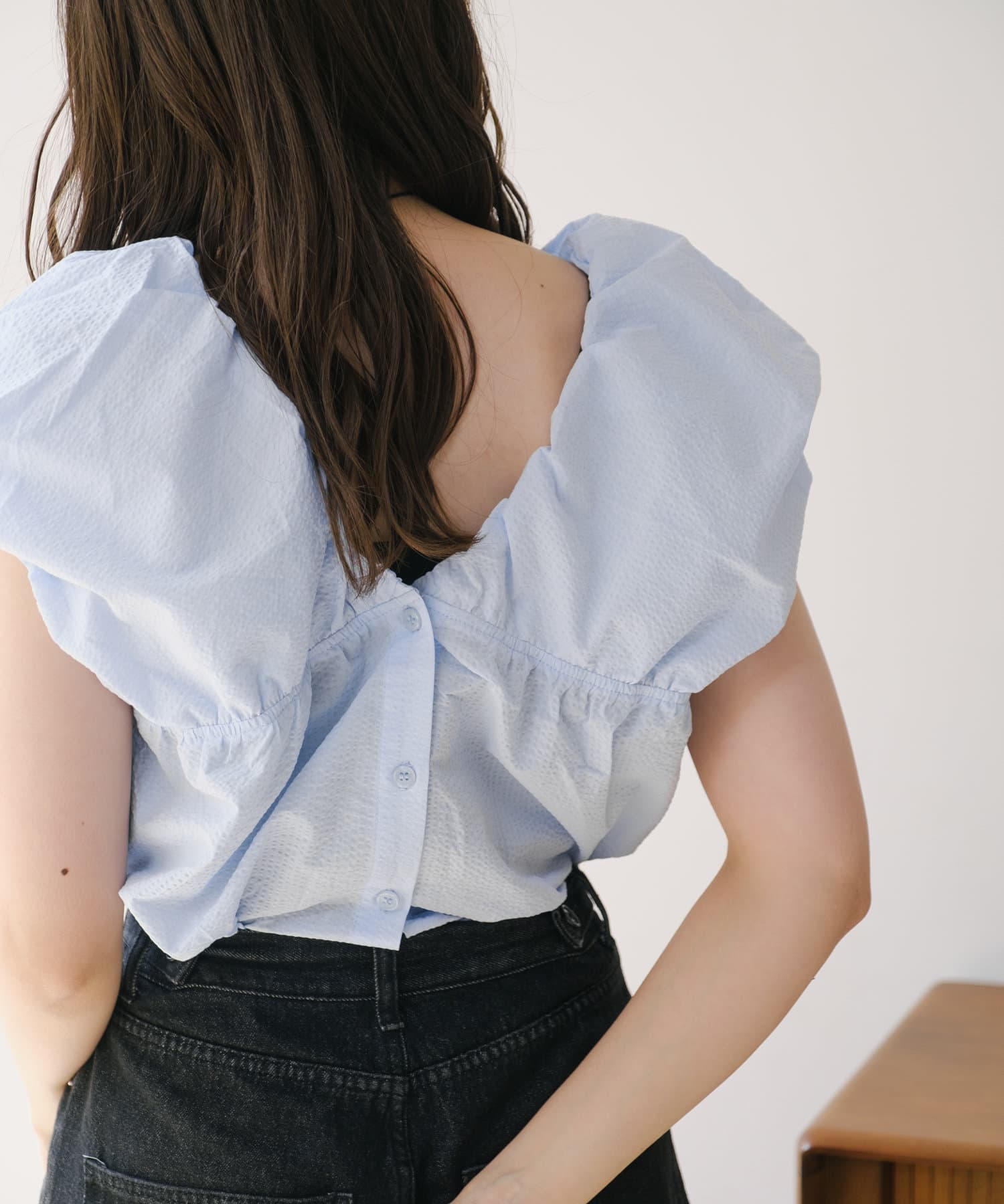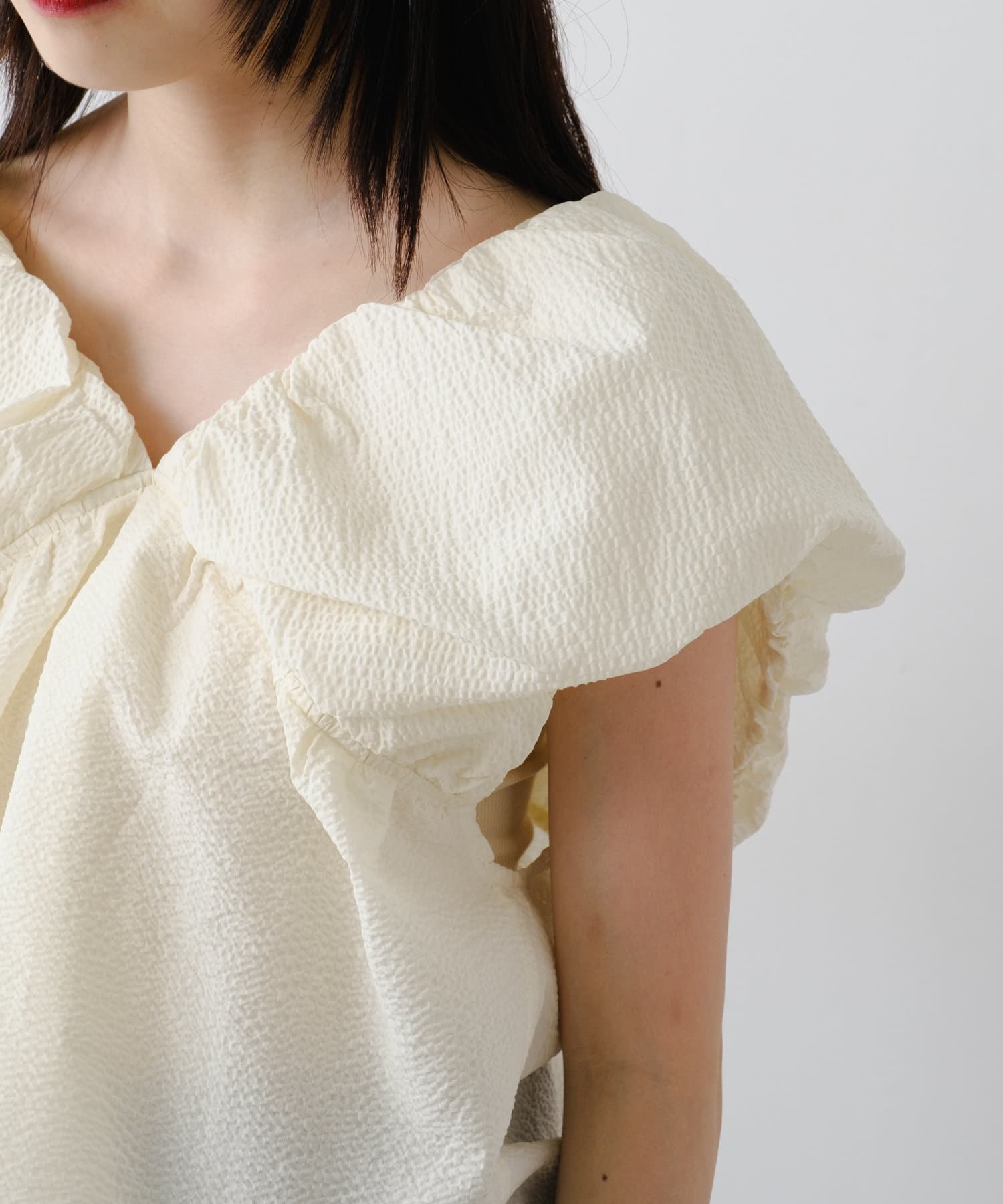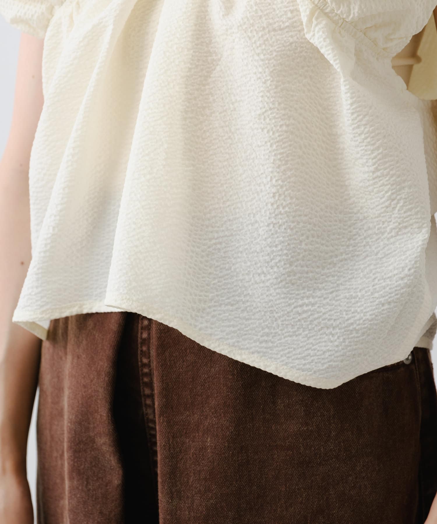 袖バルーンが可愛らしいジャガード素材のチュニック。
