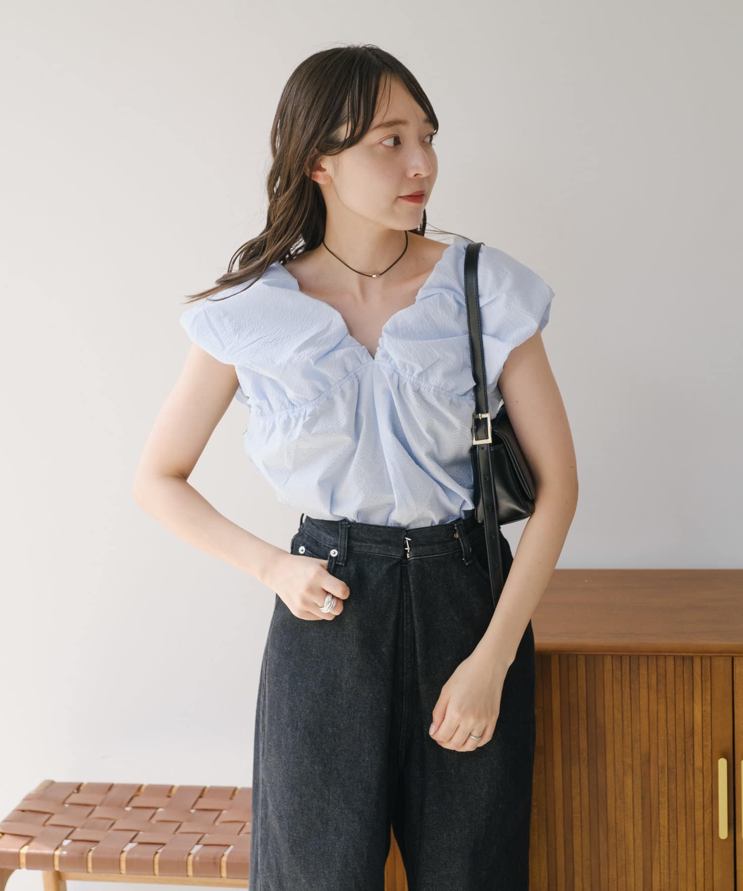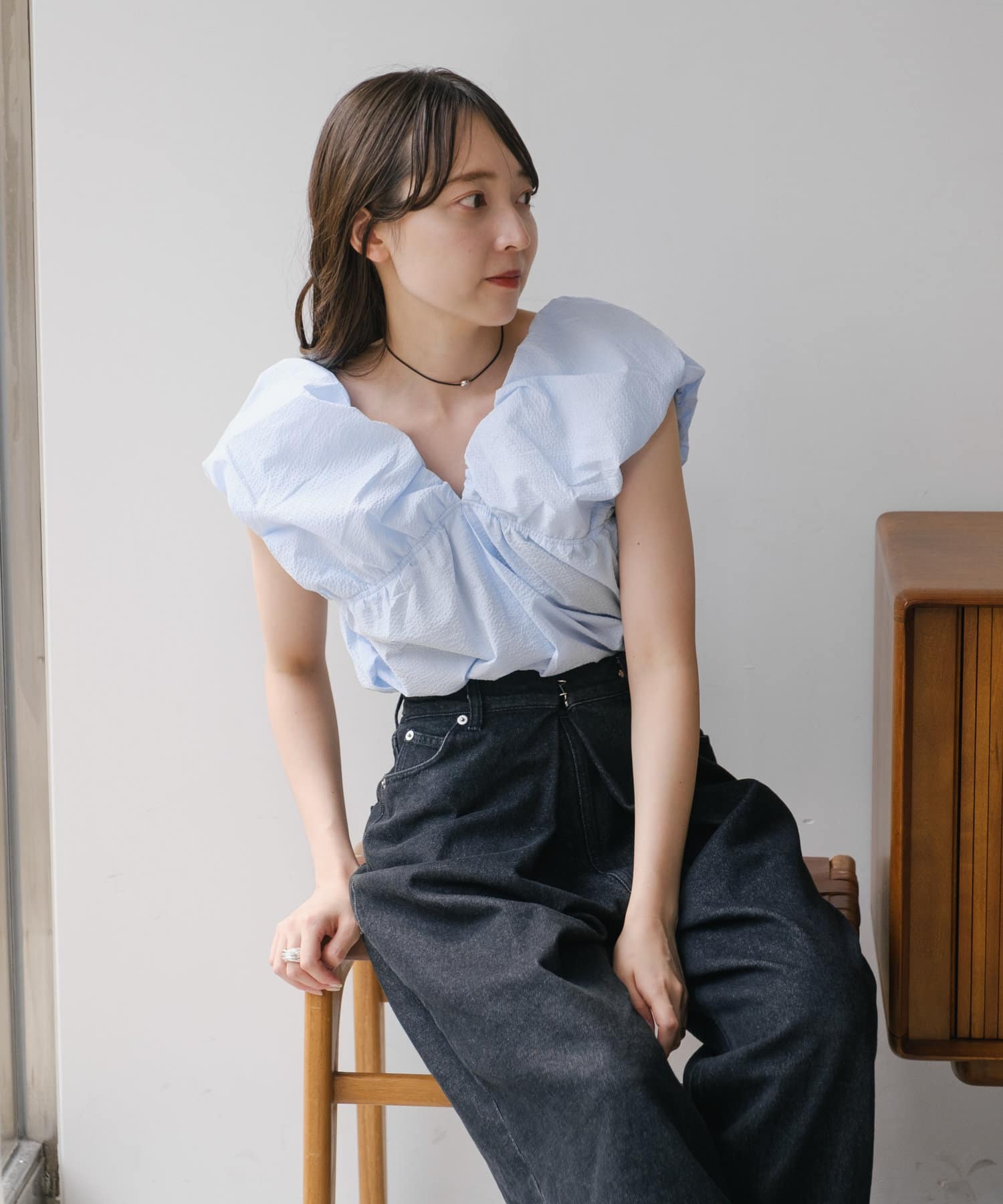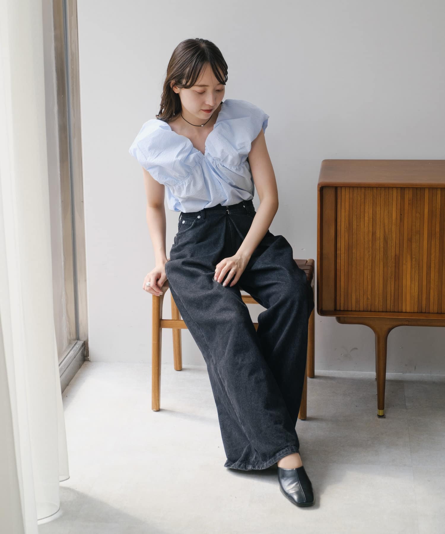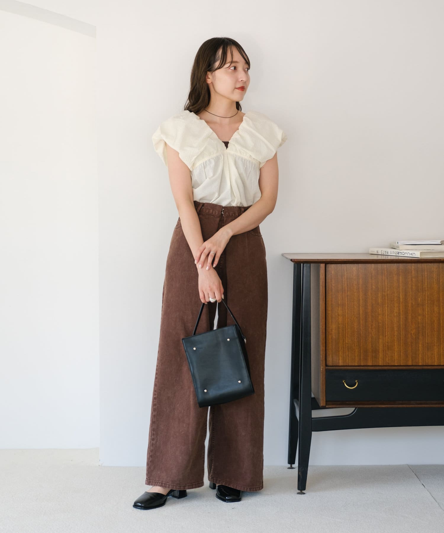 中にシアートップスを合わせて、雰囲気を変えても楽しんでいただけます。