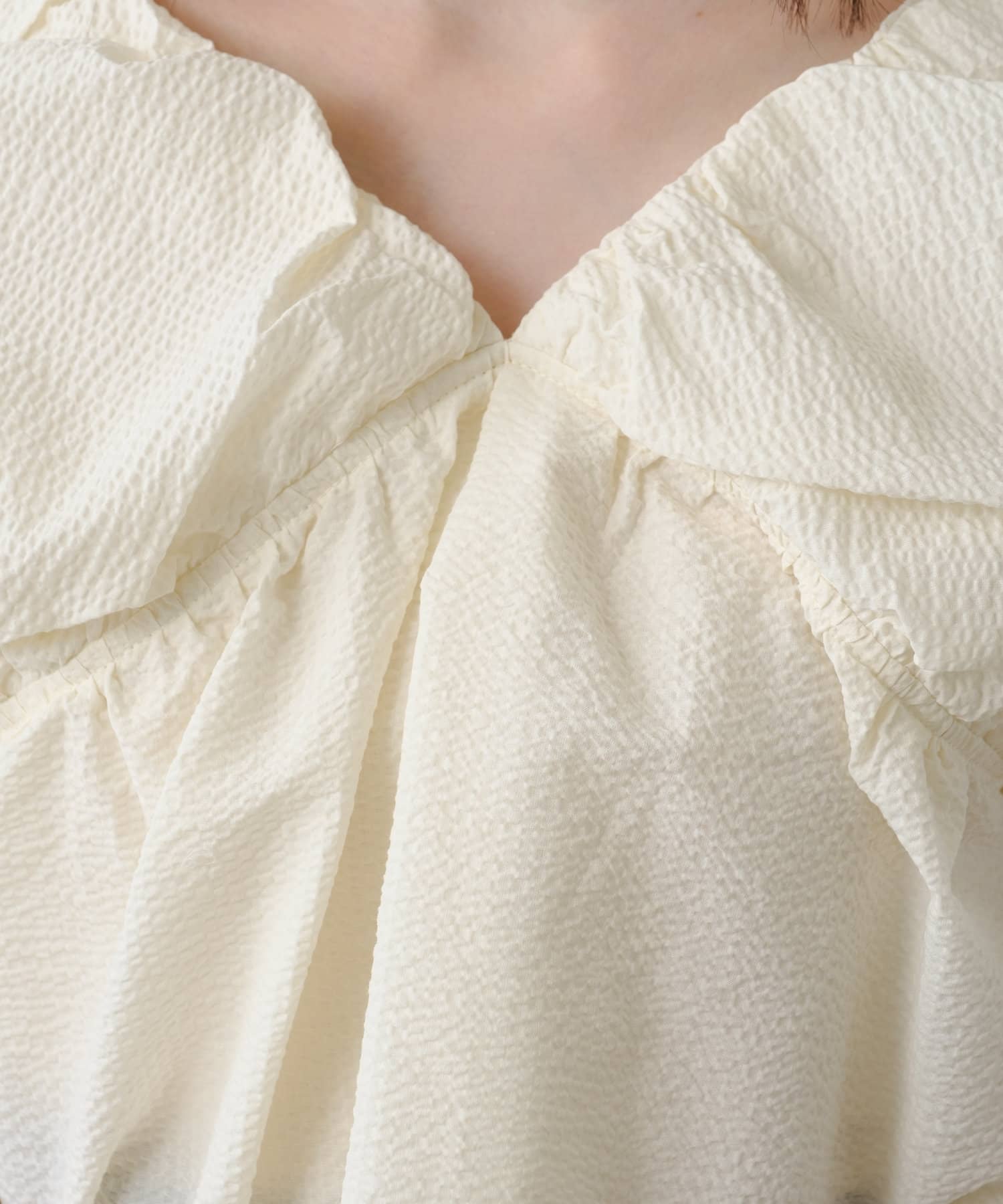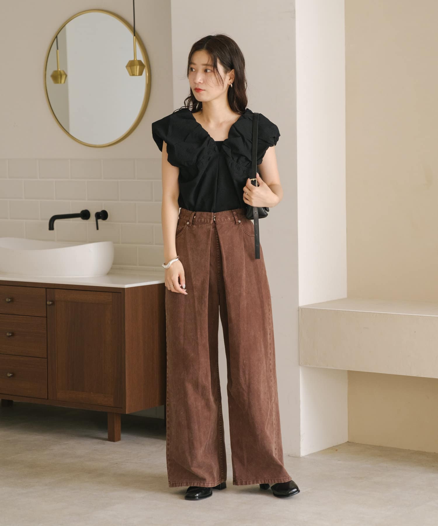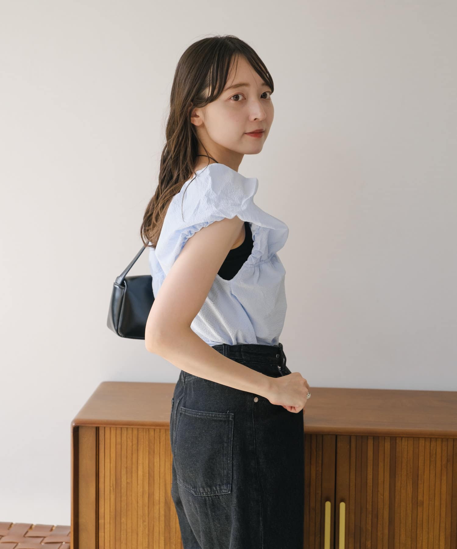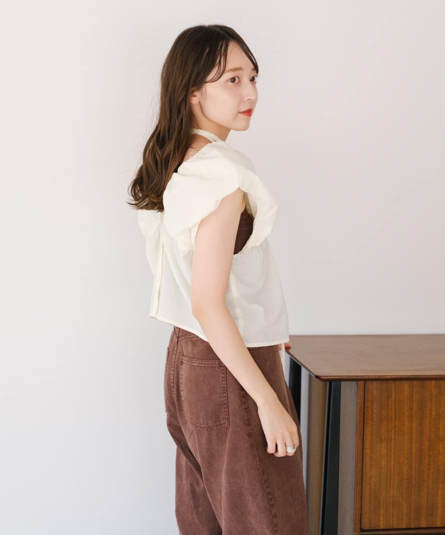 中にシアートップスを合わせて、雰囲気を変えても楽しんでいただけます。