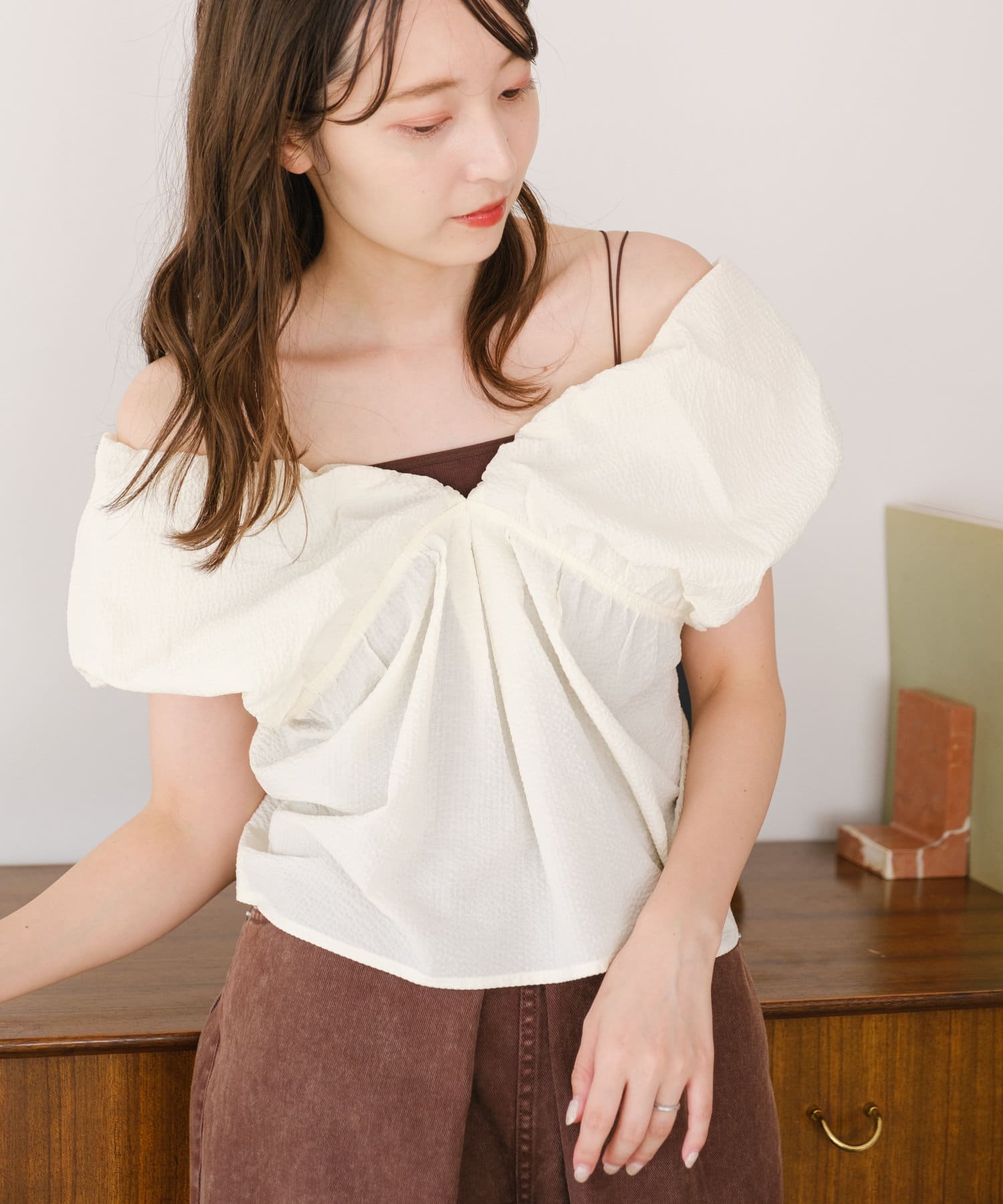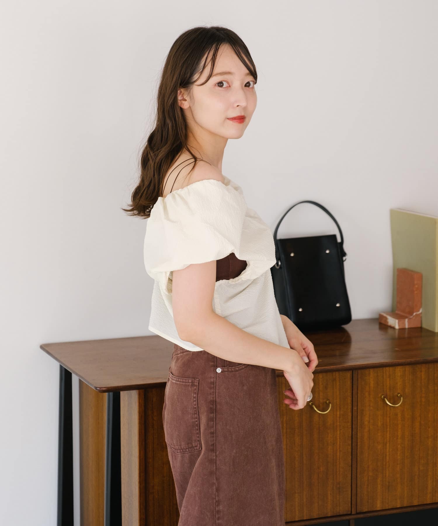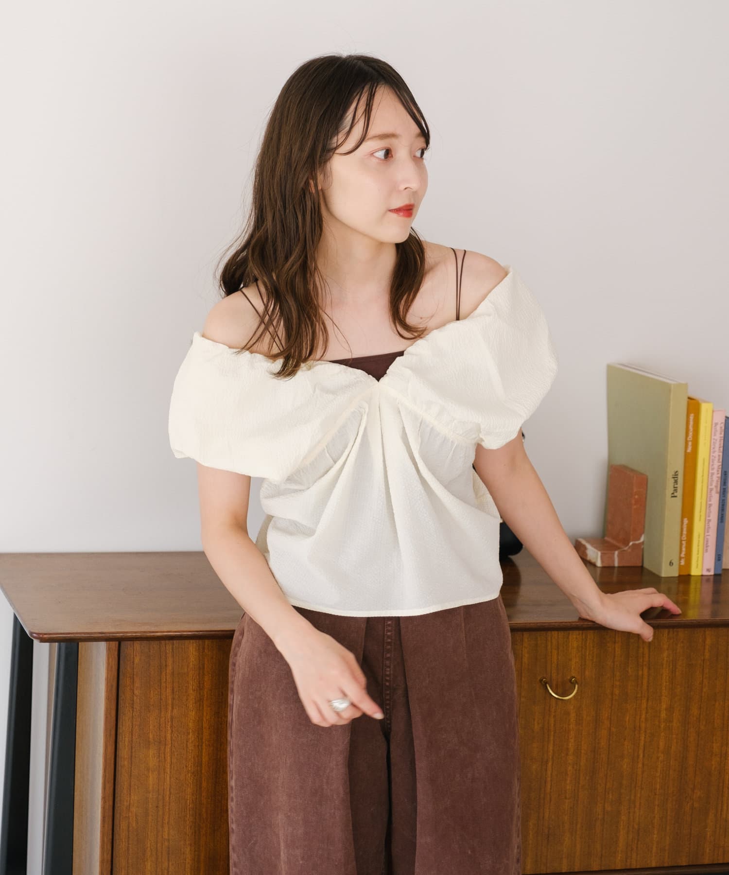 首元のゴムがしっかりしているのでオフショルダーにしても着用可能。