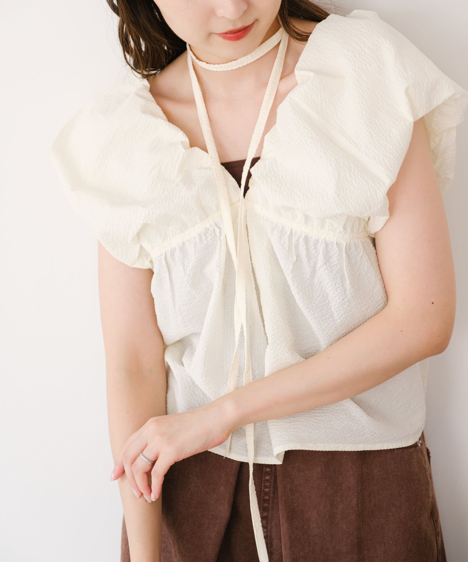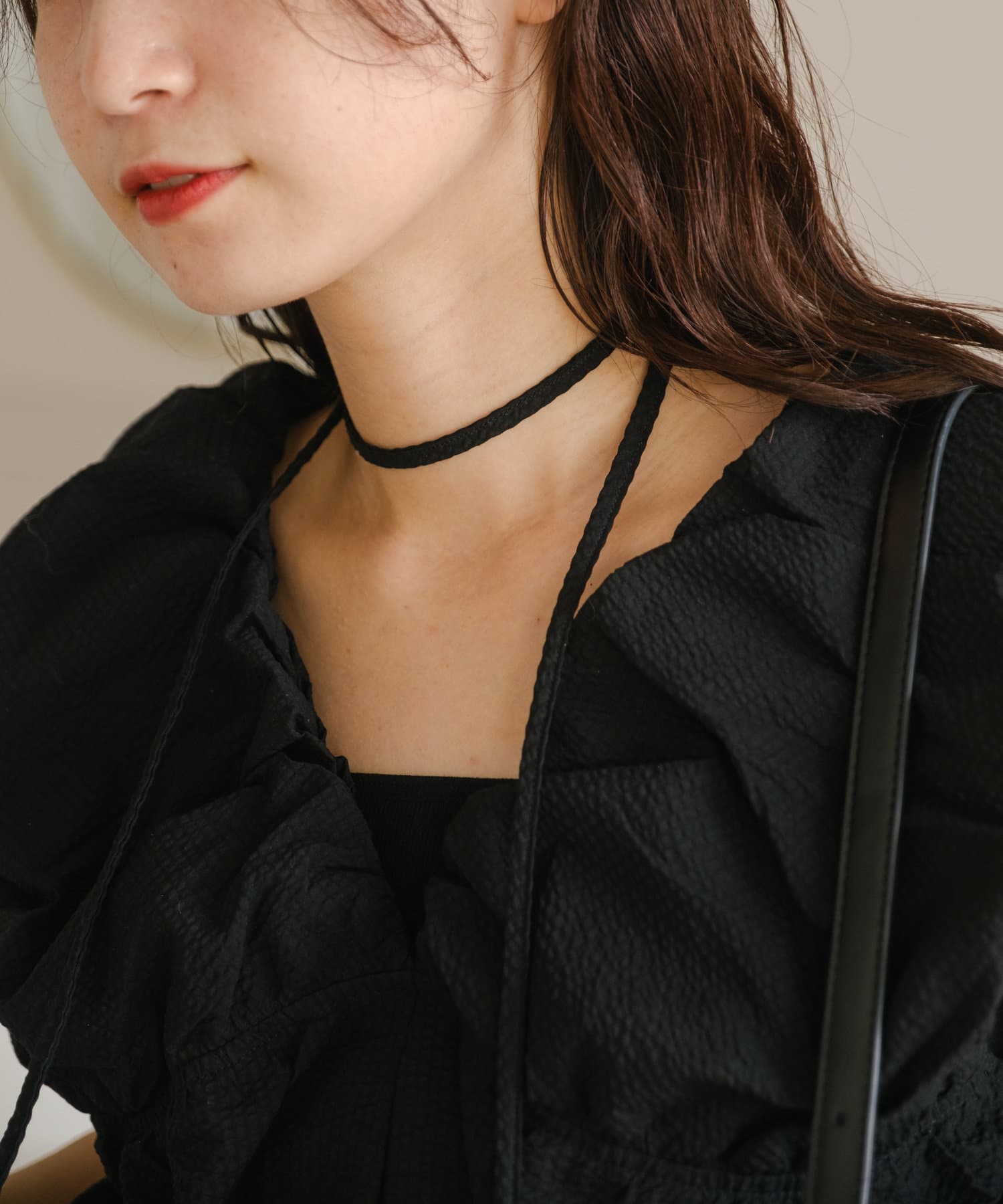 同生地の紐がついているのでチョーカー風にまいていただいても〇