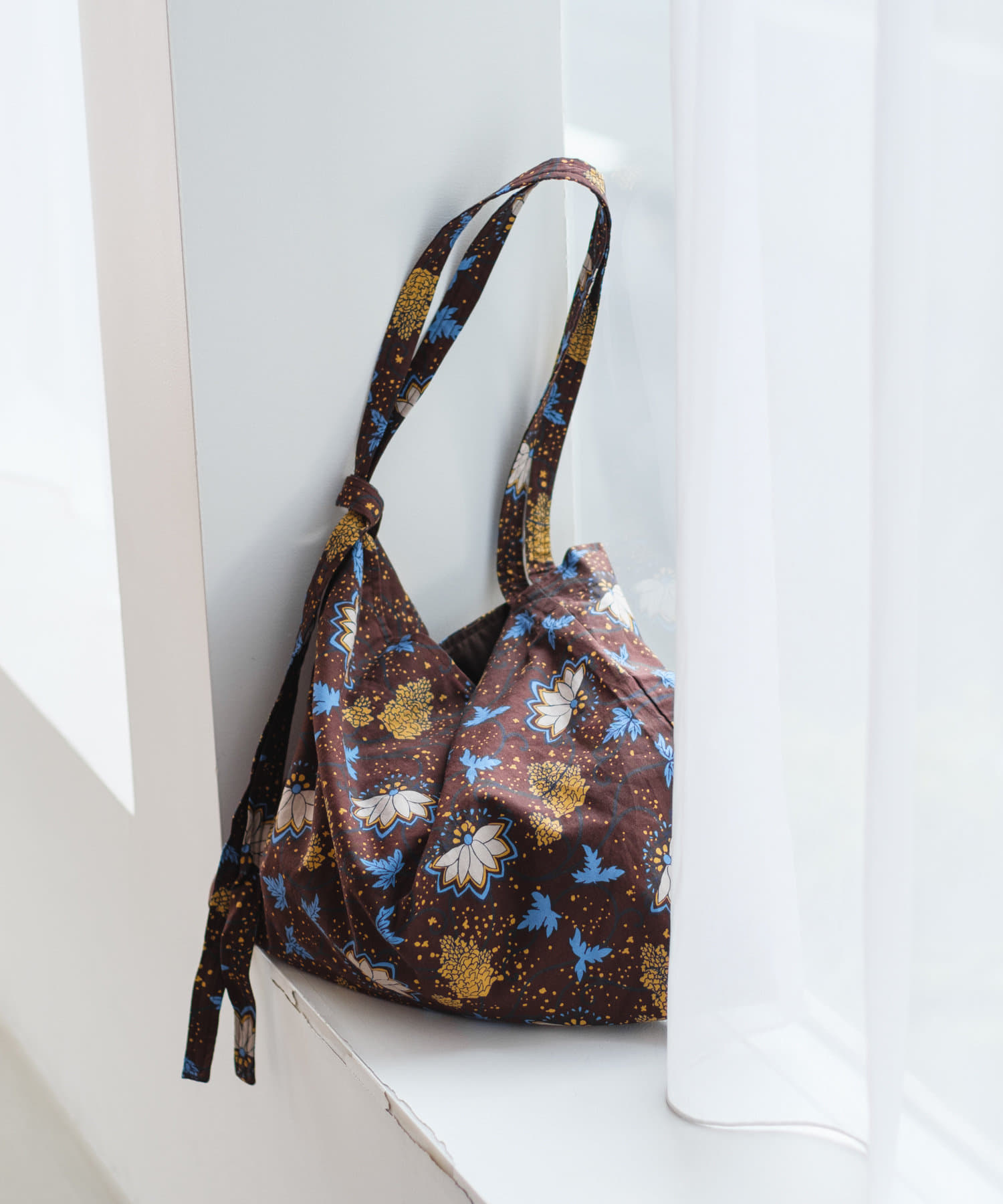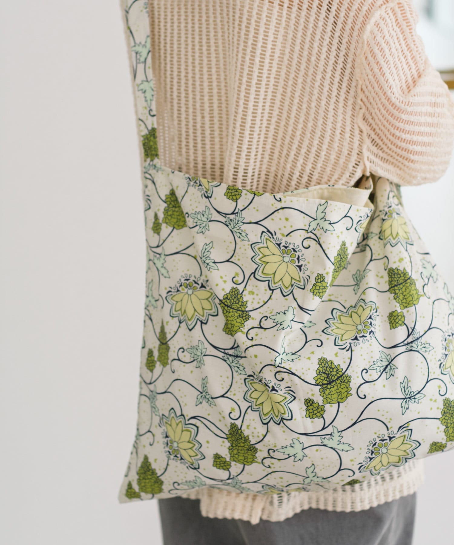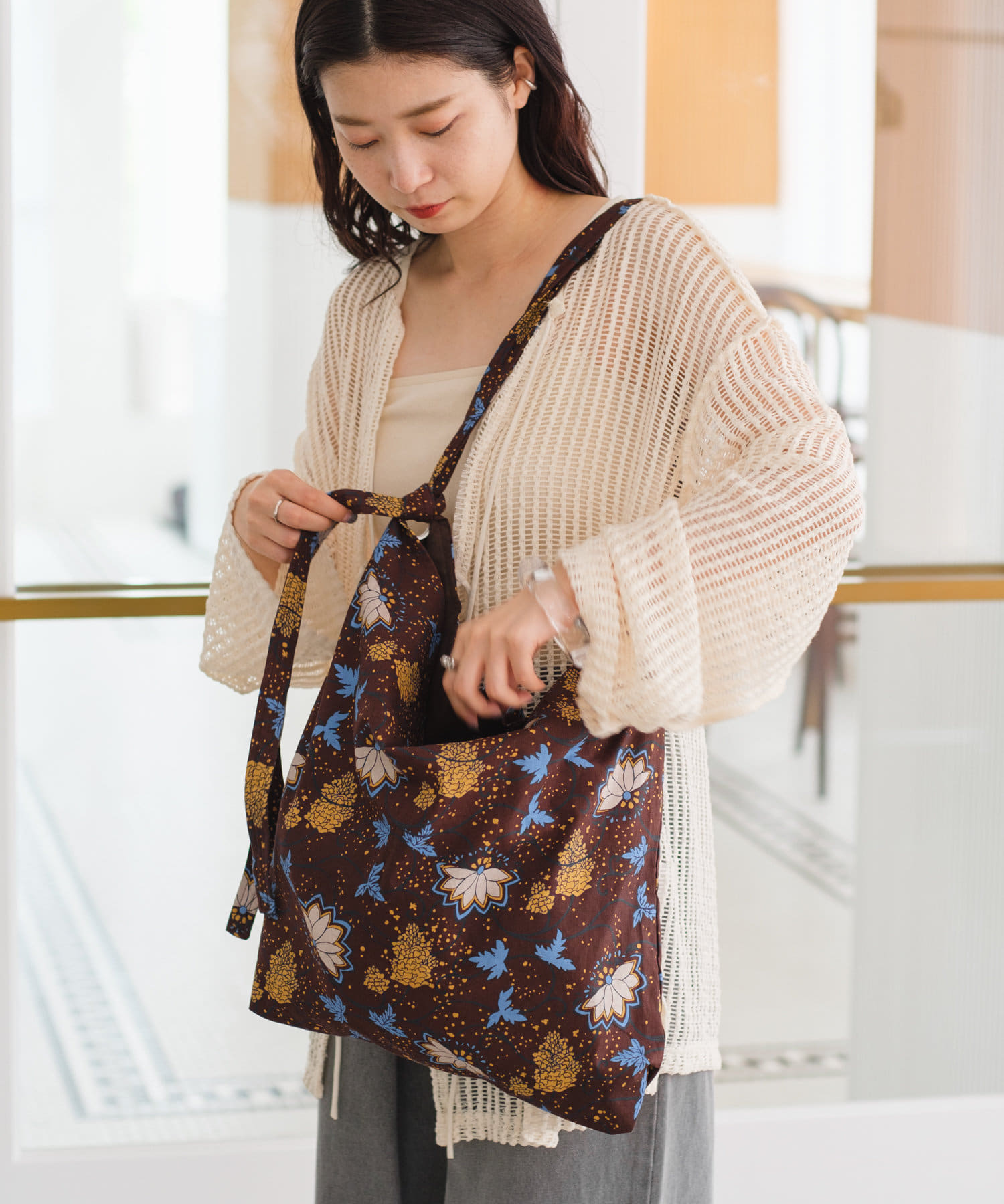 シンプルなスタイリングの際にも取り入れたくなるバティック柄トートバッグはA4サイズや500mlもすっぽり入る大容量さ。
