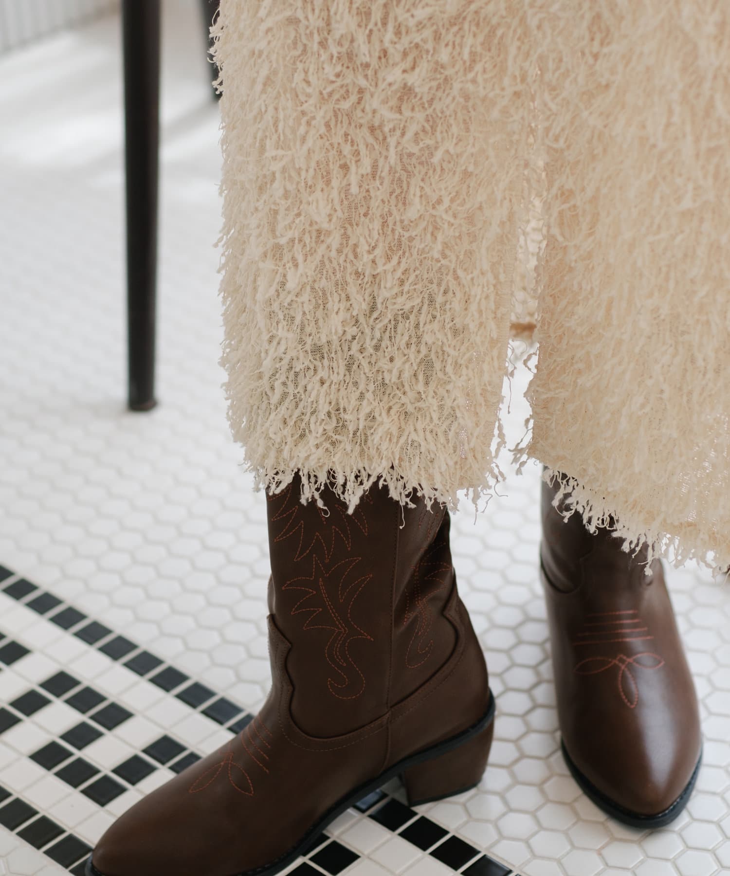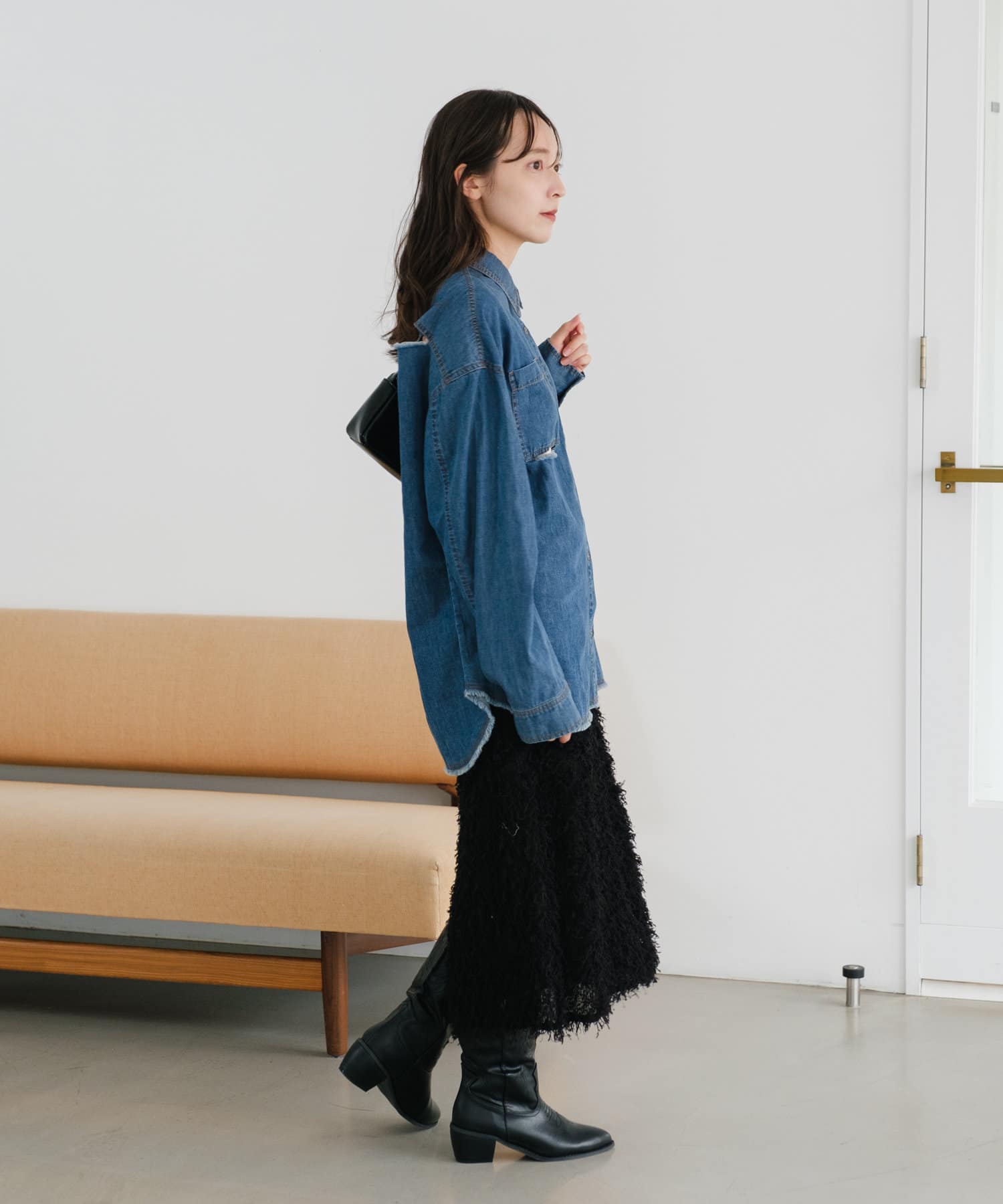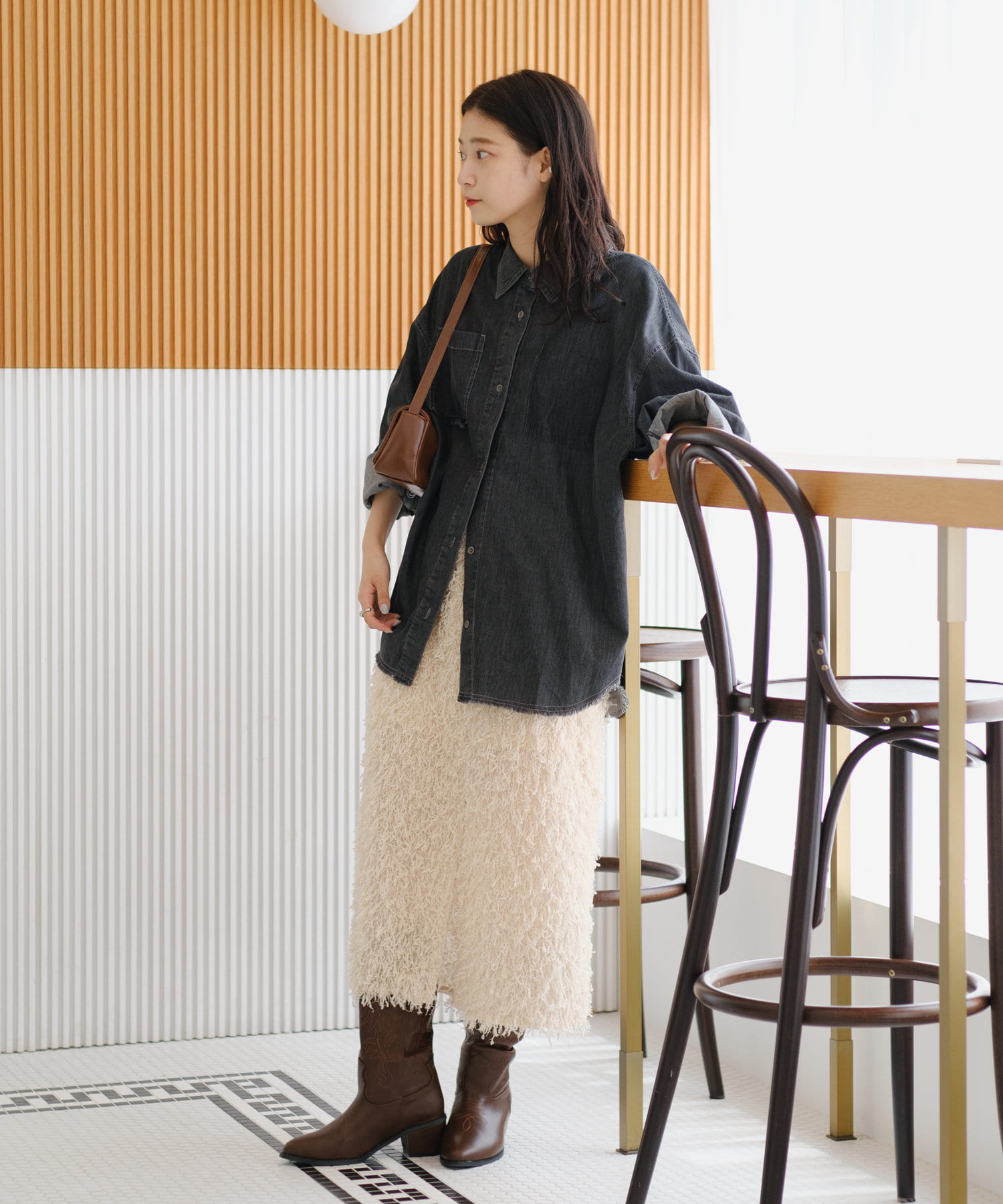 秋冬トレンドのミドル丈なのでロングブーツと合わせや、