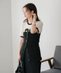フロントのボタンが存在感のあるマルチウェイビスチェ。