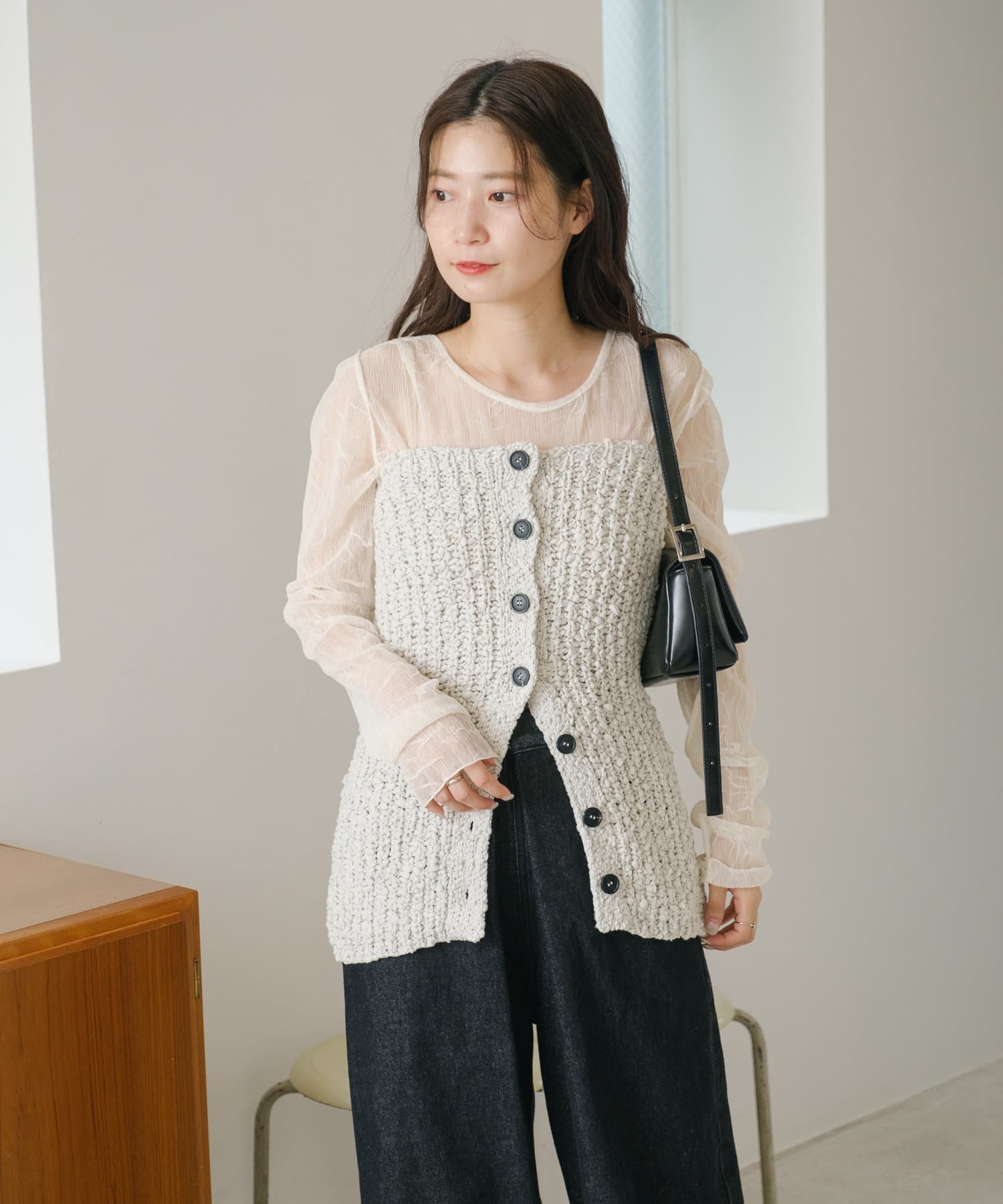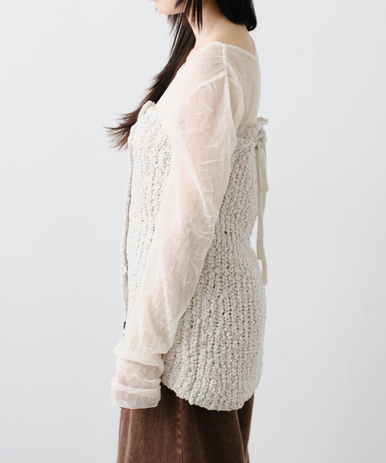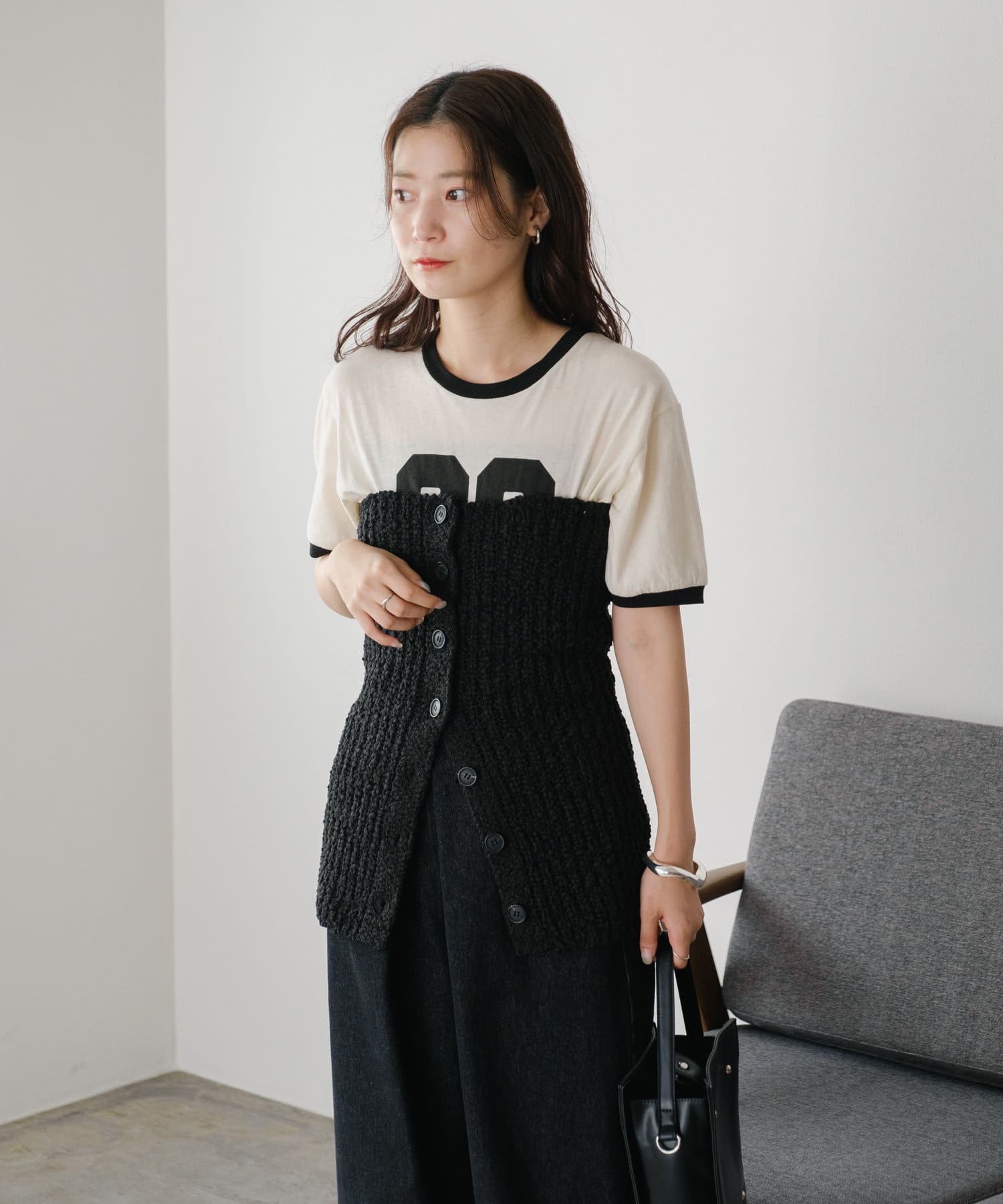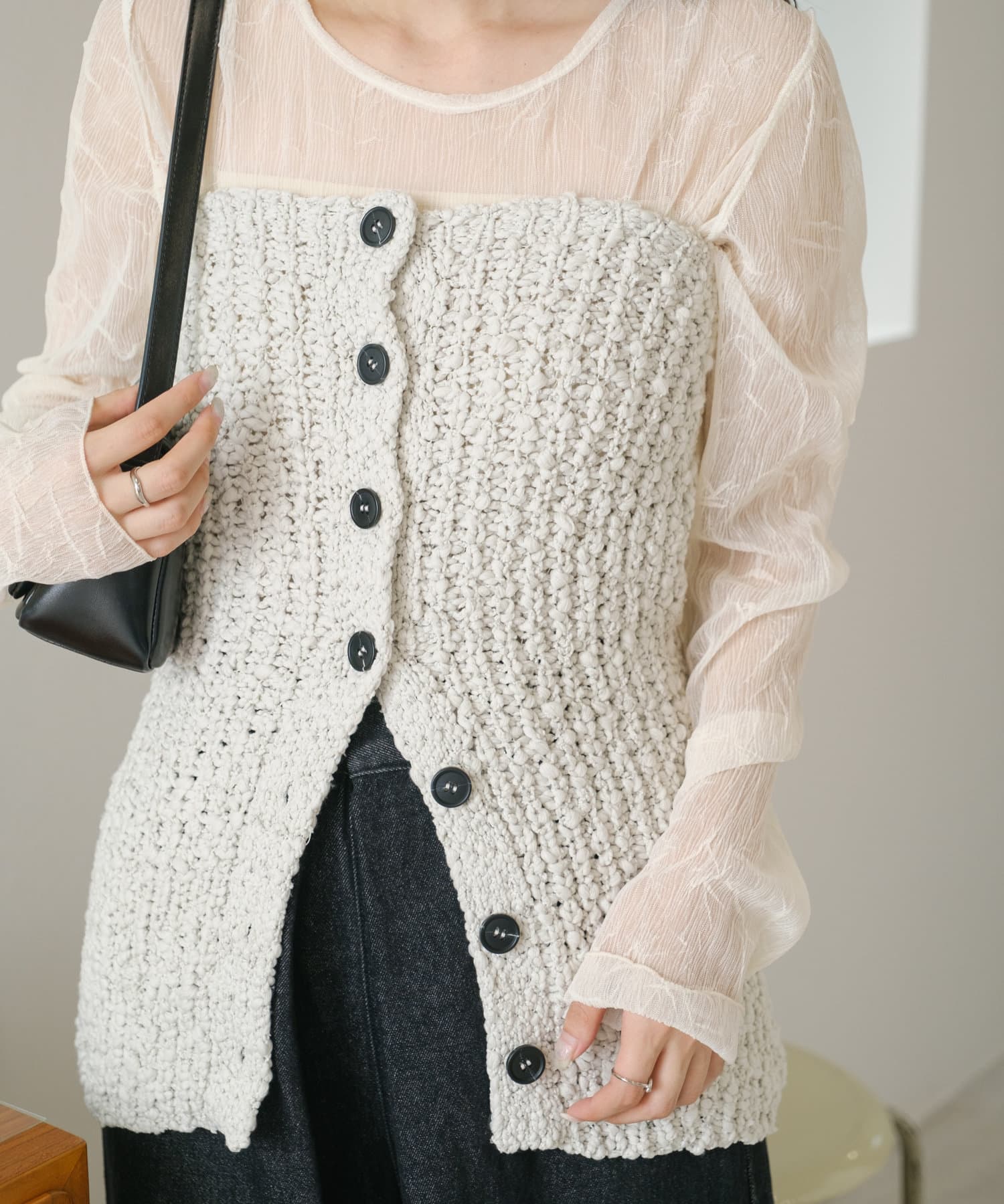 ベアビスチェ、ポンチョ風、ワンショルダーベストとアレンジ次第で着方が楽しめます。