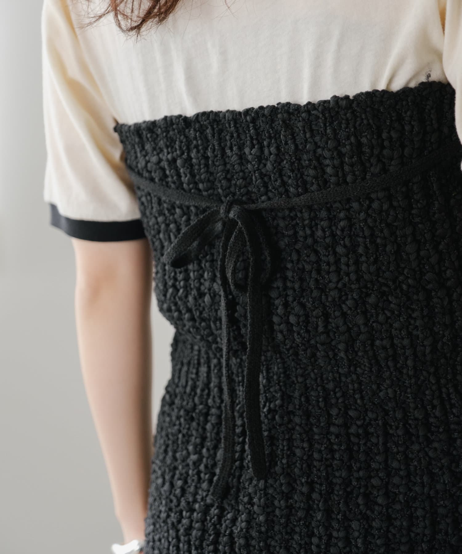 ニット素材で伸縮性が良いので、様々なトップスと相性抜群。