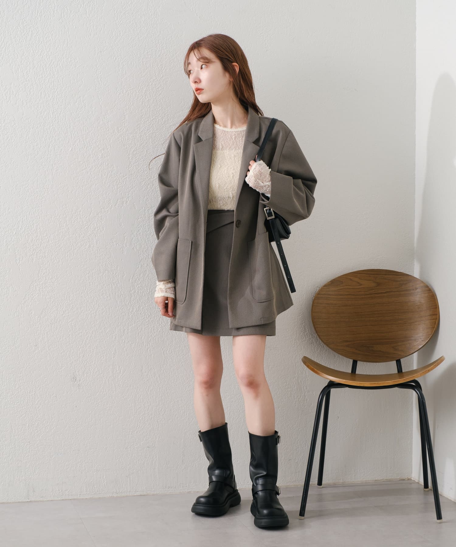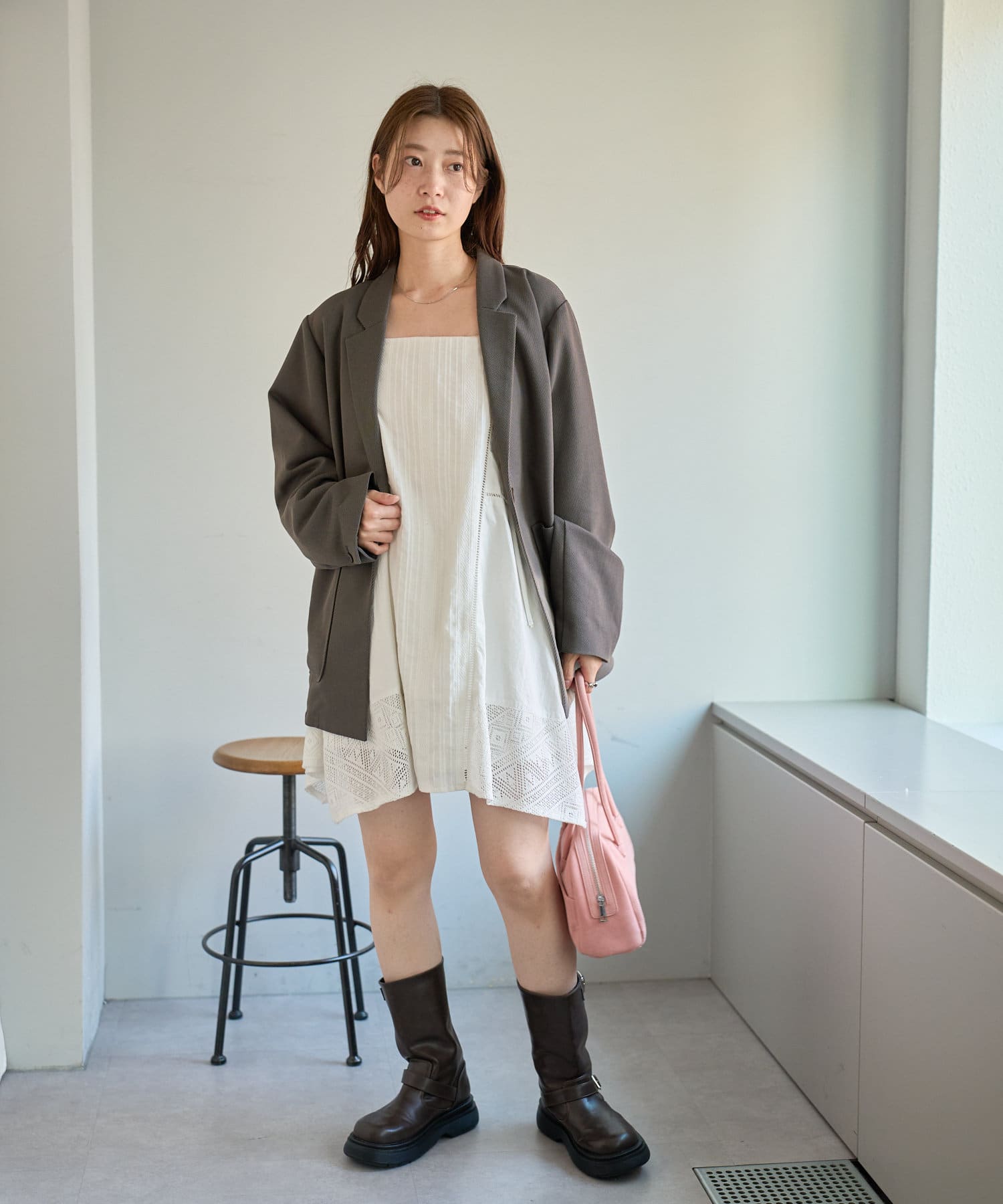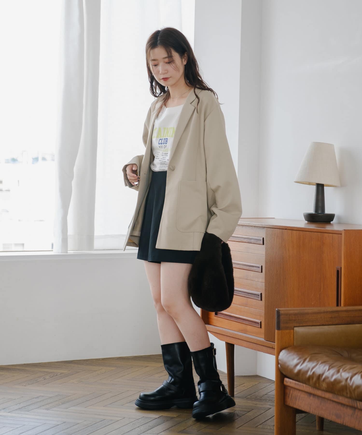 同素材のミニスカートやショートパンツとのセットアップがおススメ。