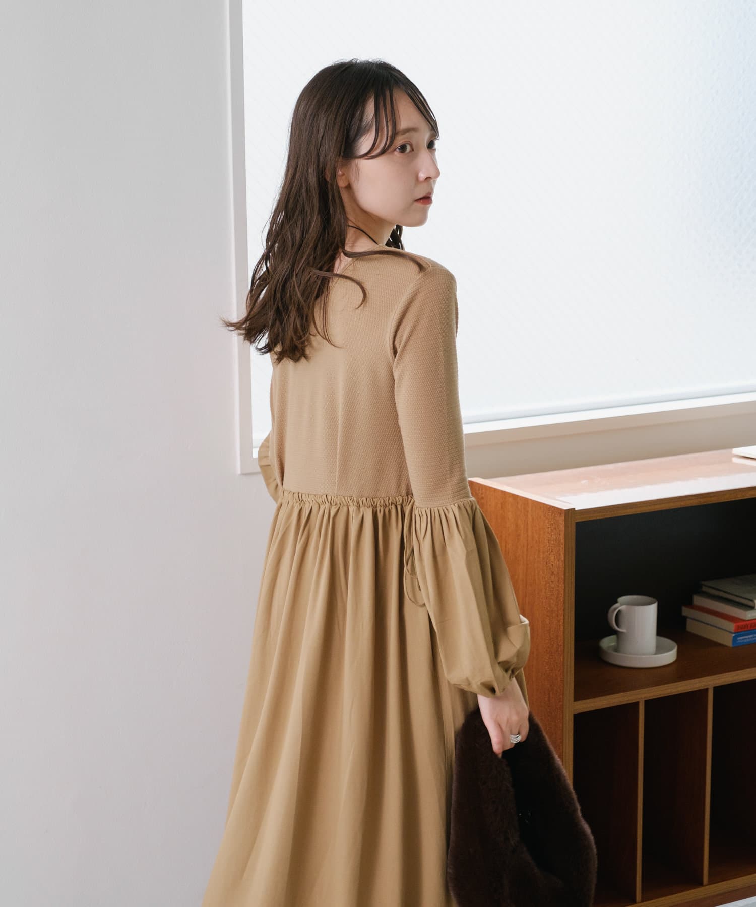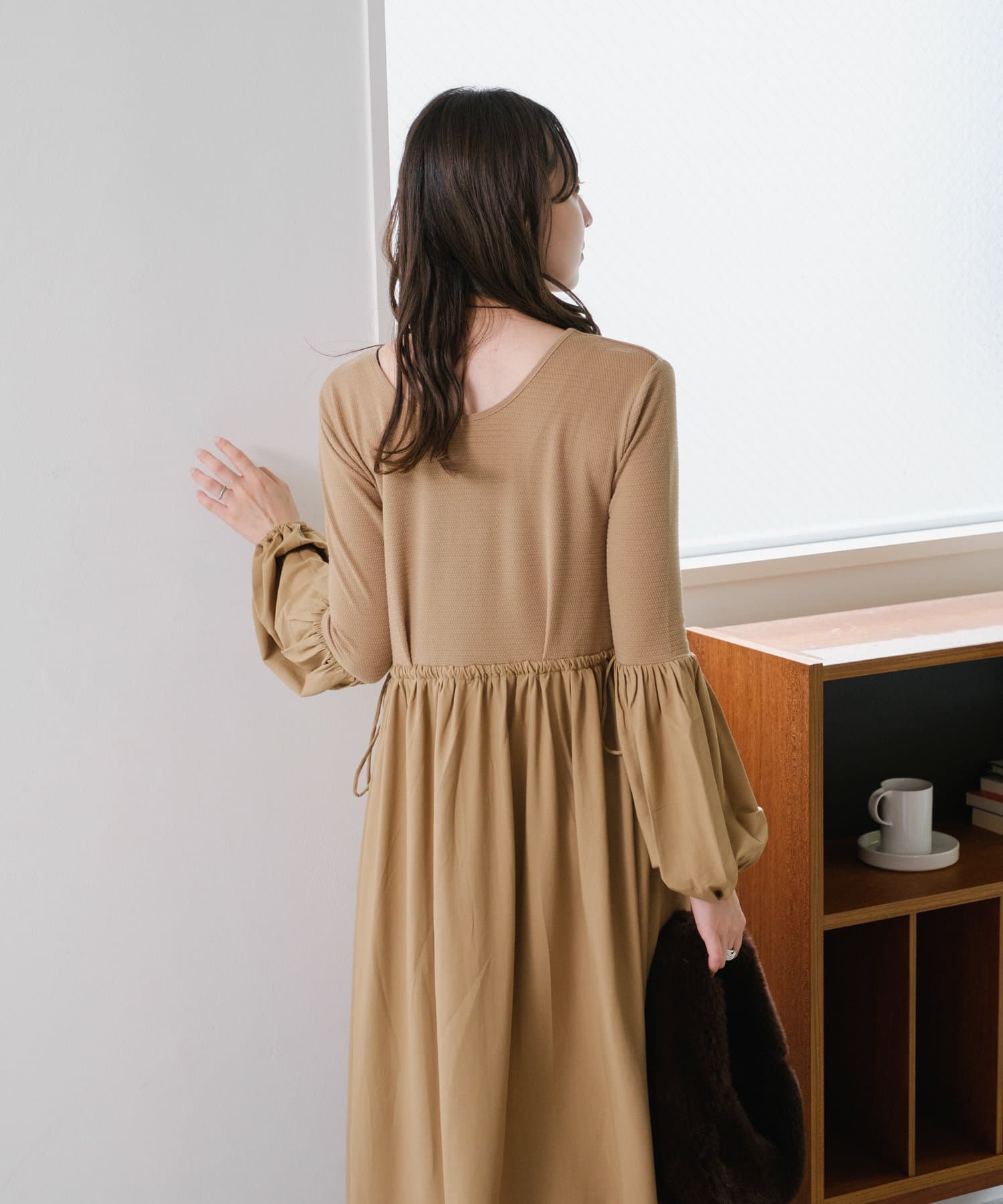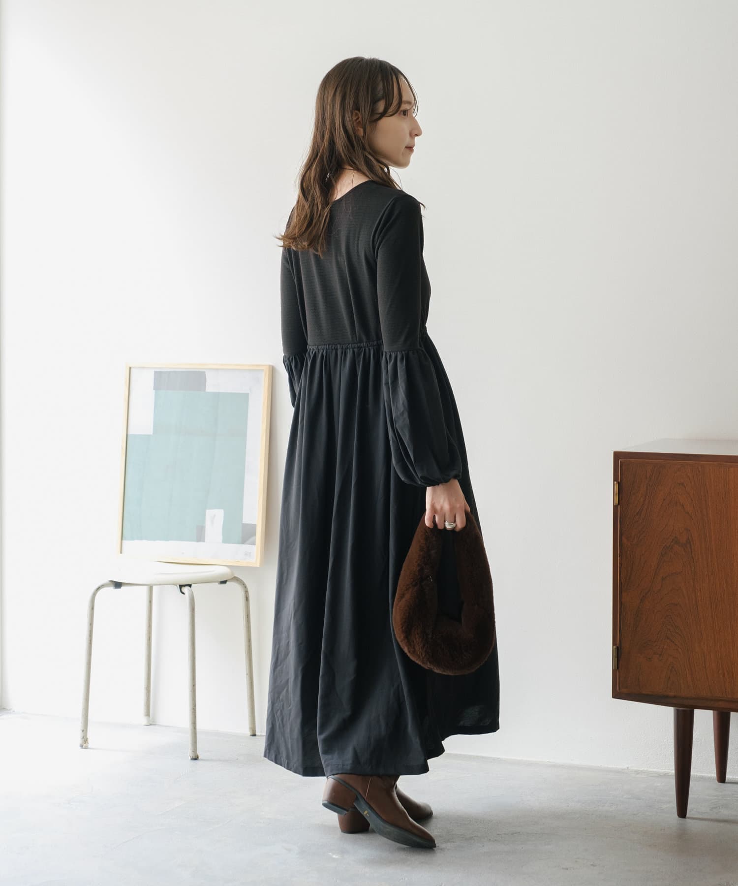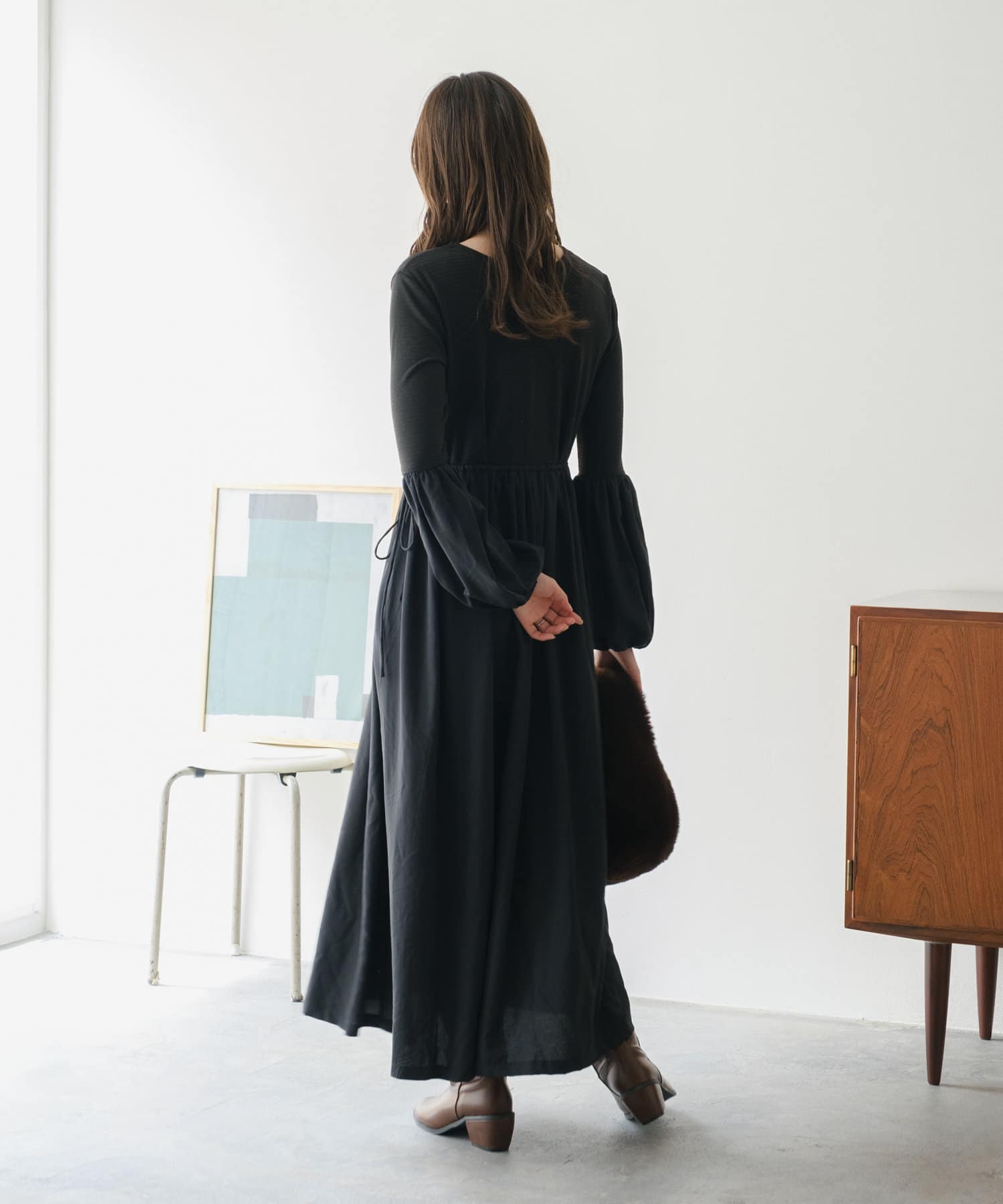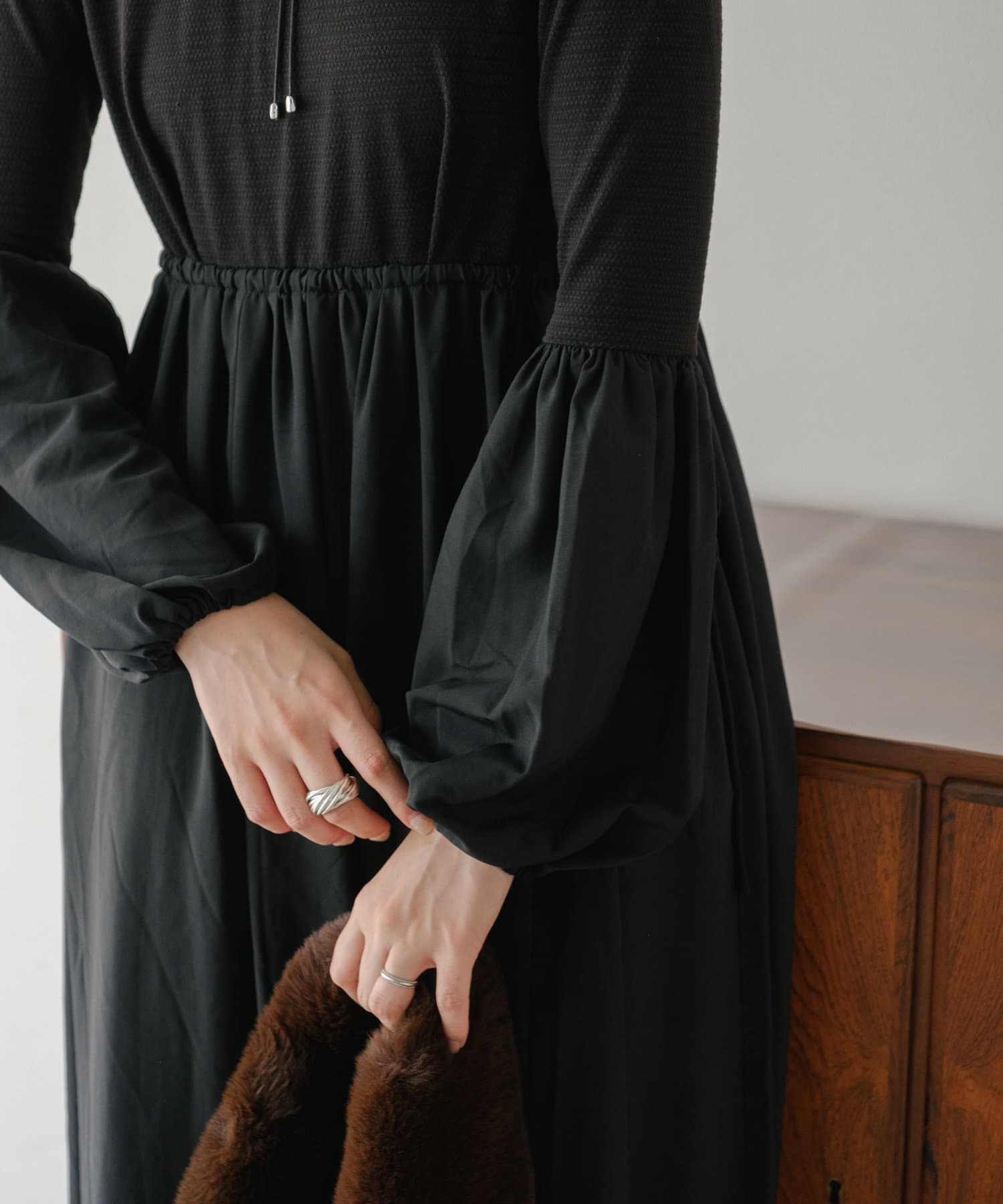 肘からの切り替えで袖がバルーンになっており、華奢見えと女性らしさが叶います。