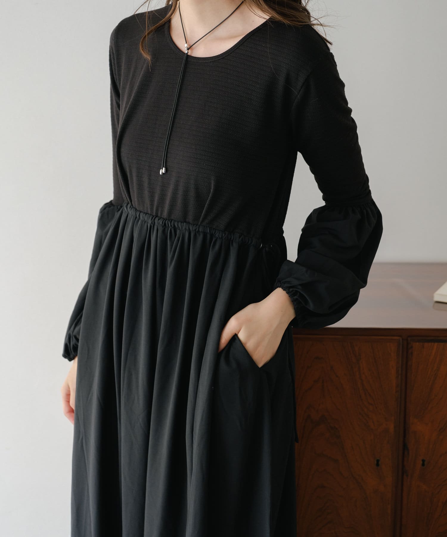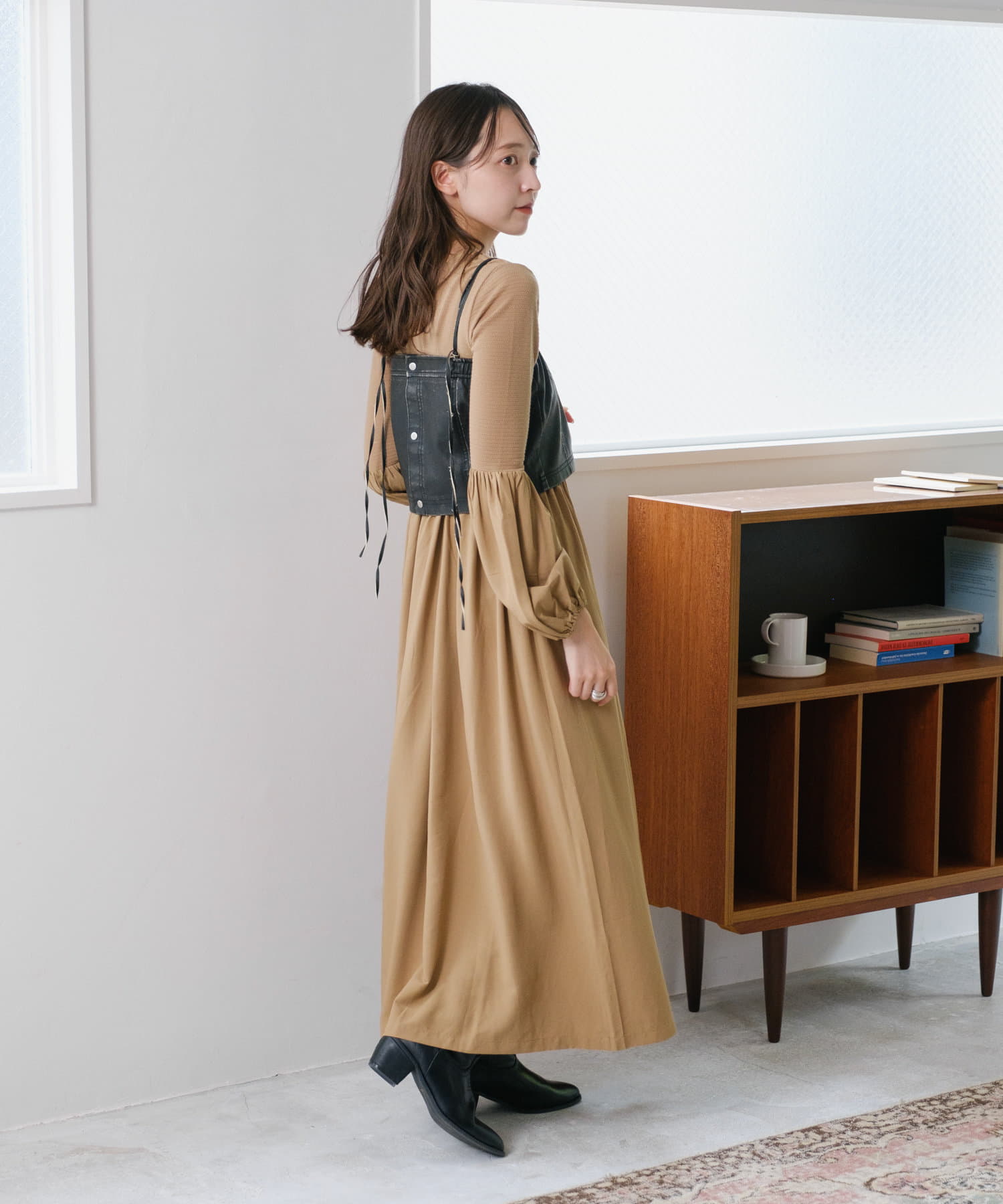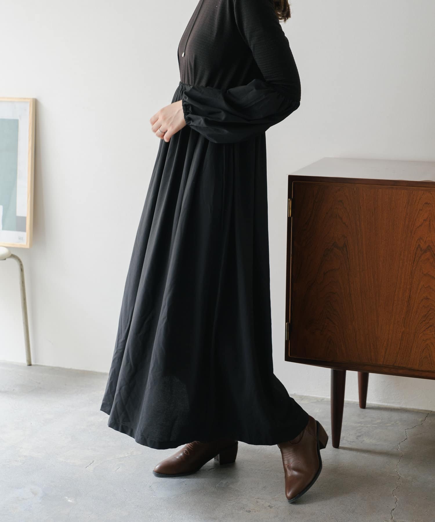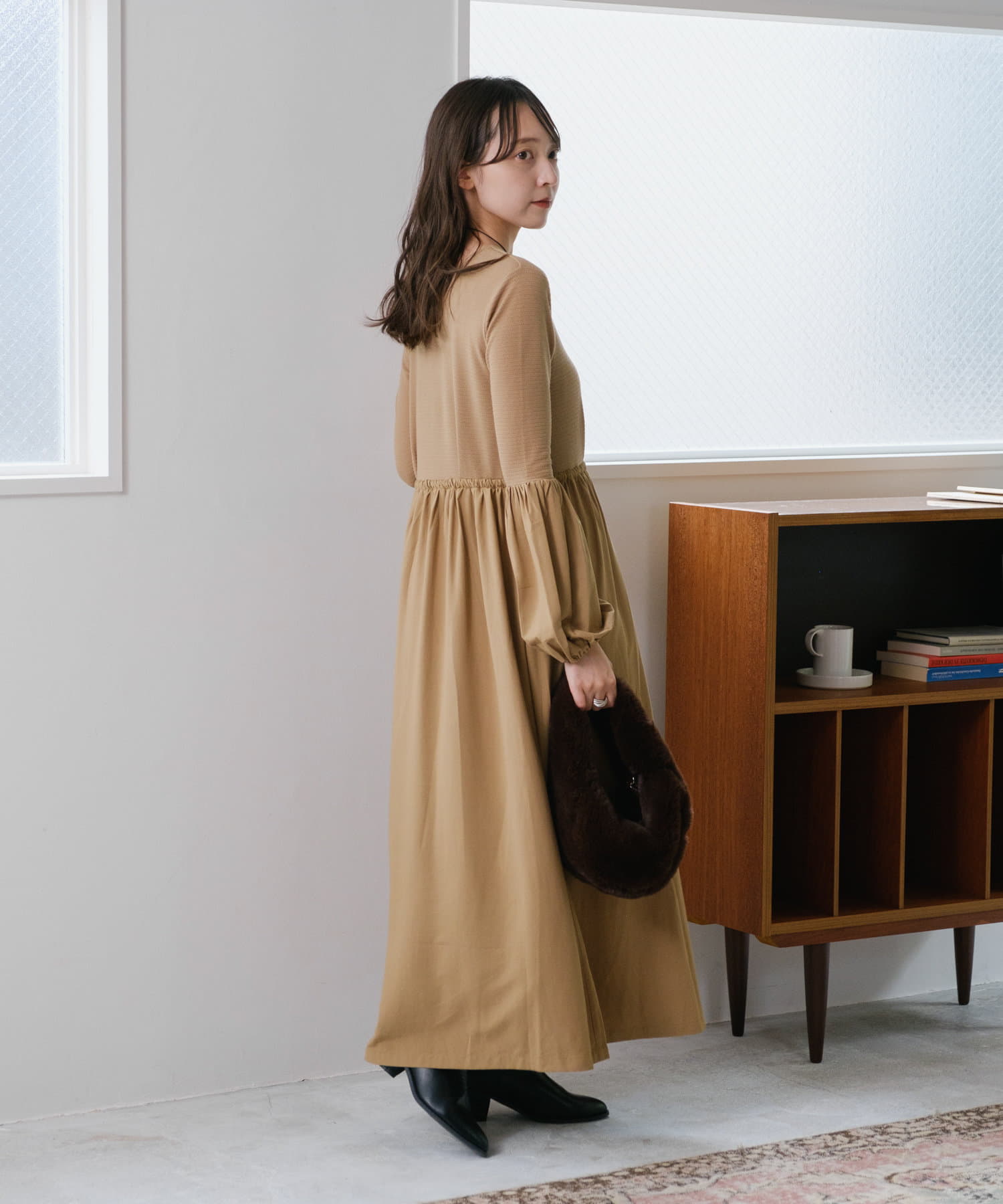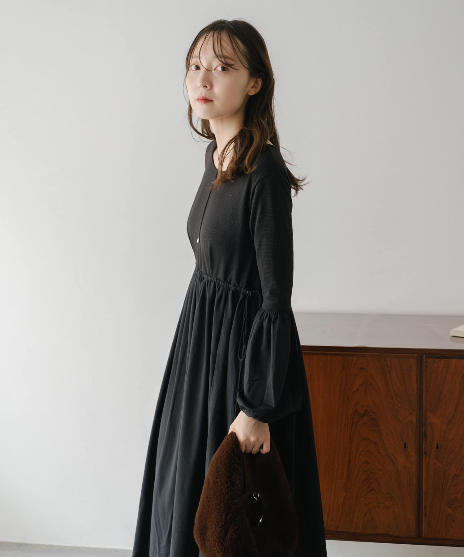 肘からの切り替えで袖がバルーンになっており、華奢見えと女性らしさが叶います。