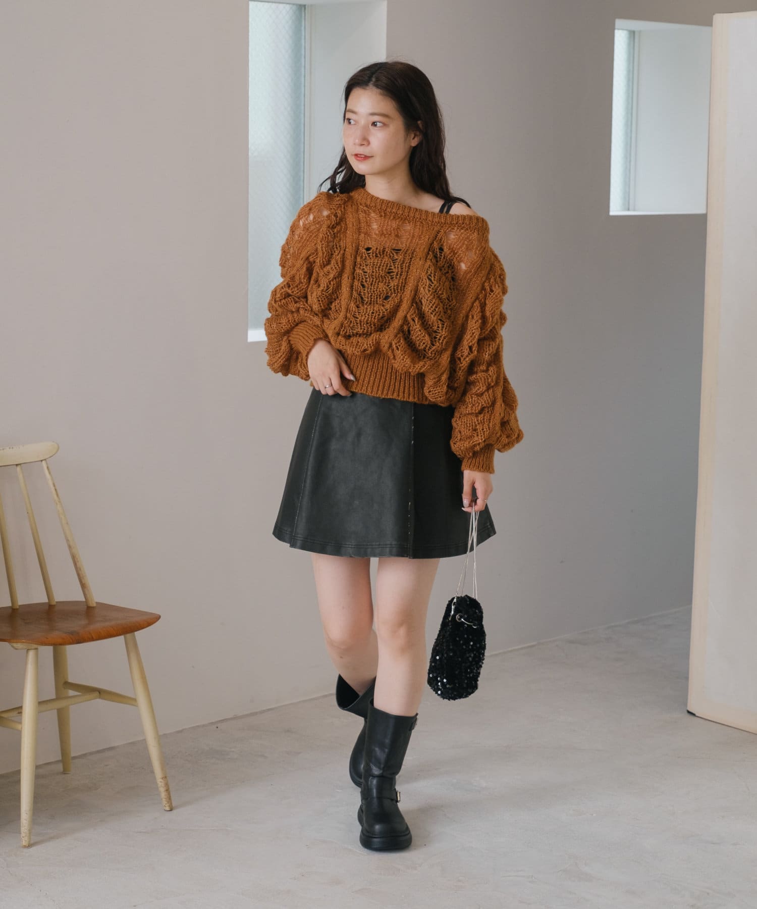ゆったりめシルエットで、厚すぎなければパンツインスタイルも◎