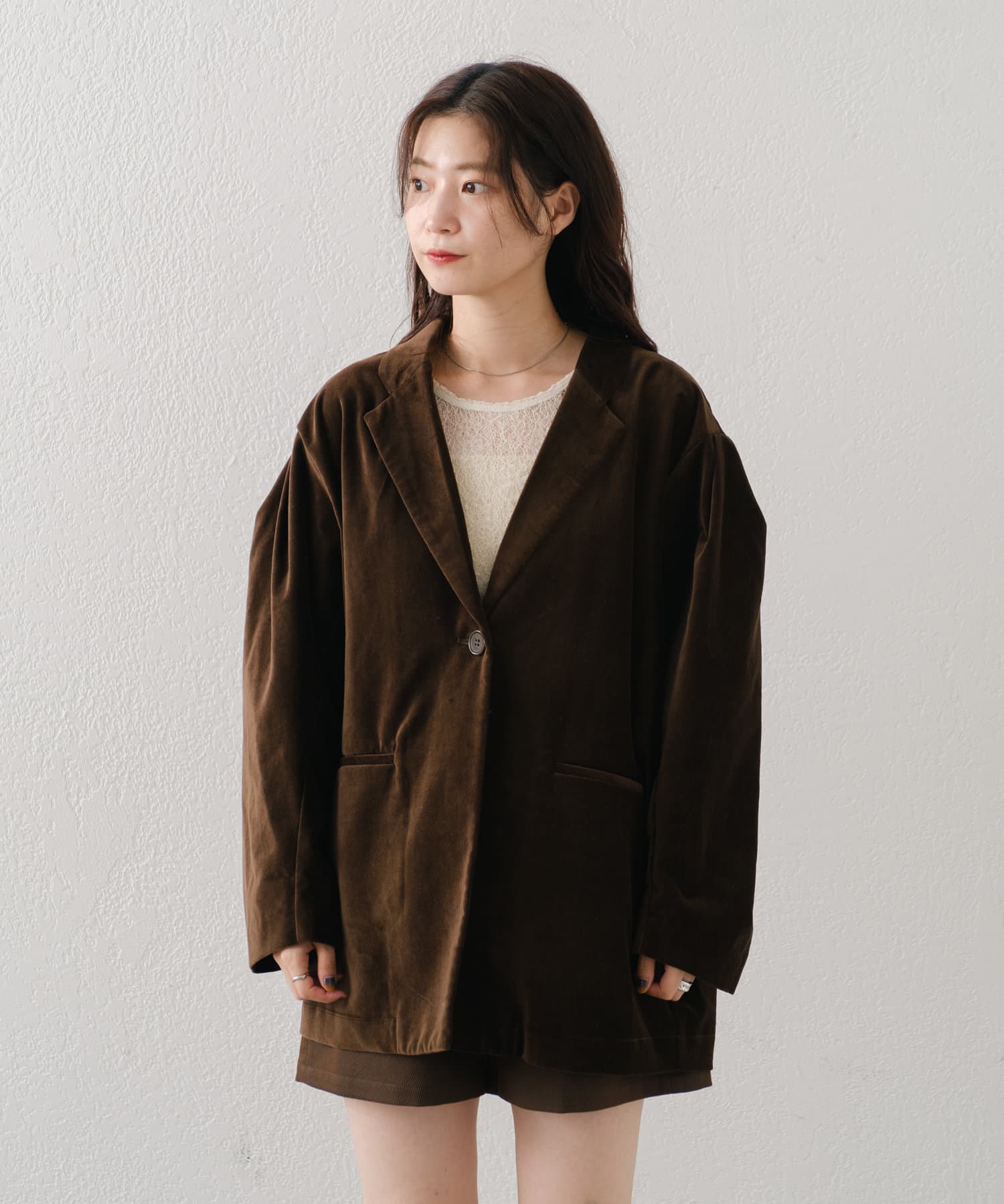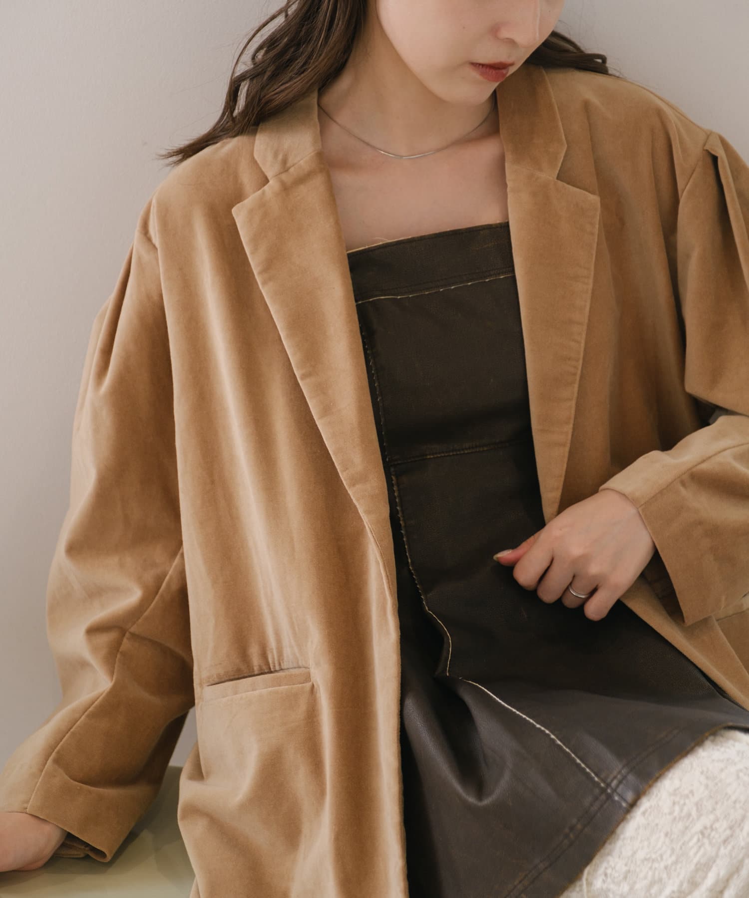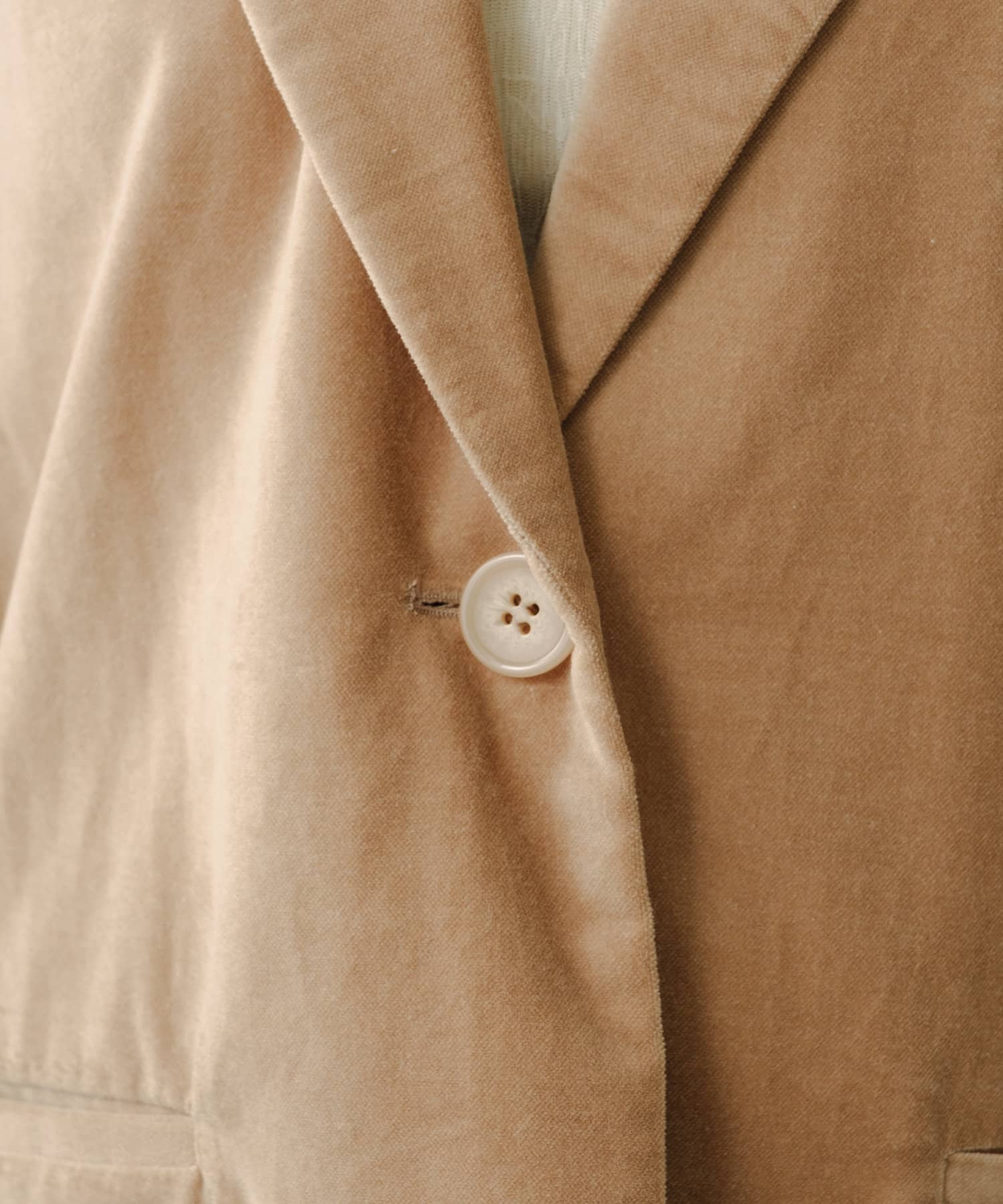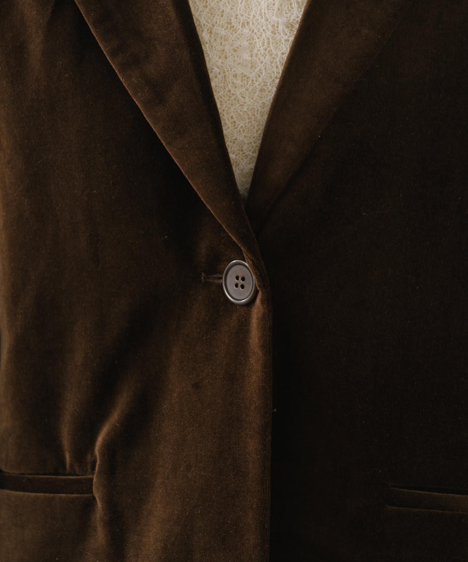 落ち着いた光沢感が上品なベルベット素材のジャケット。