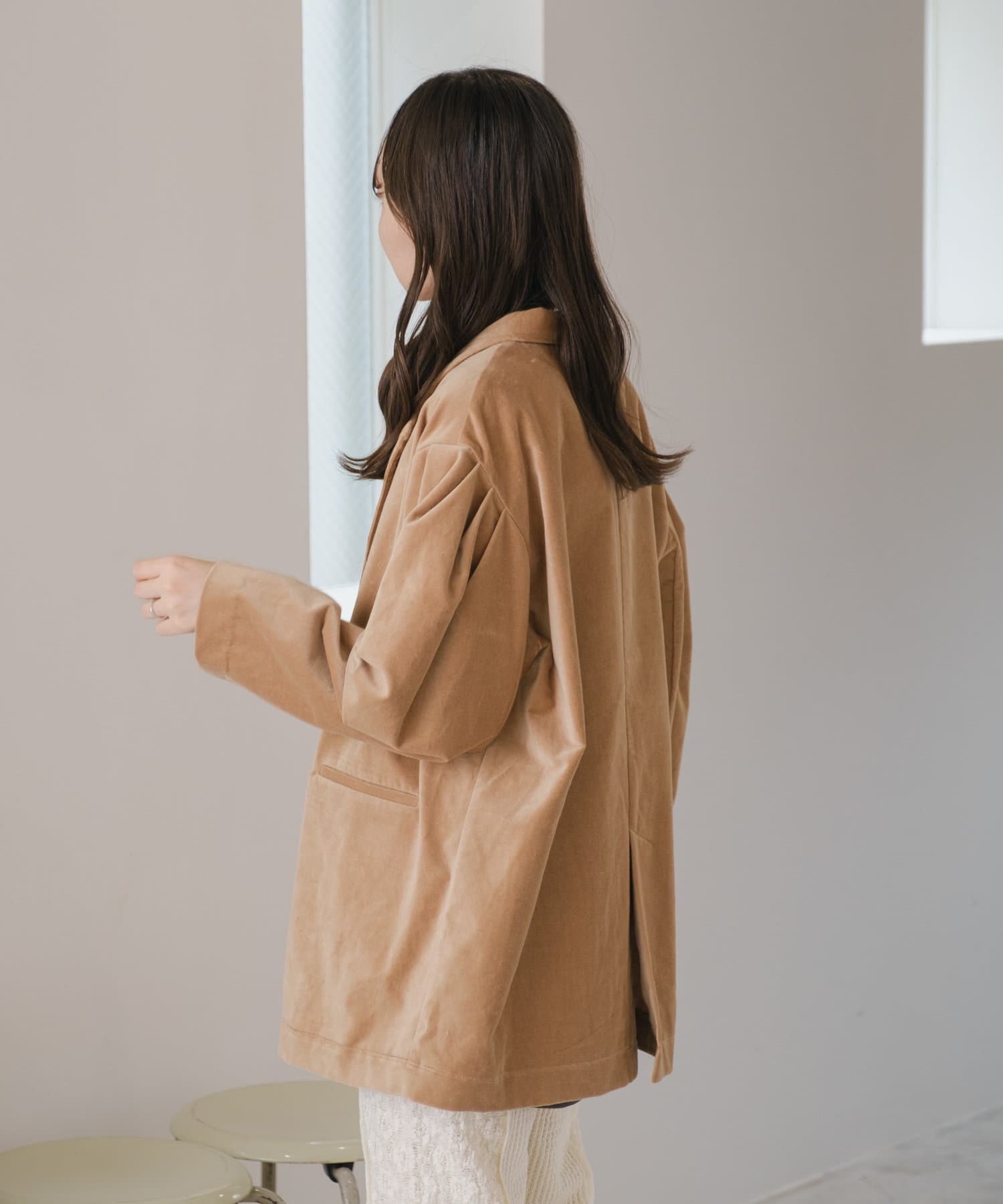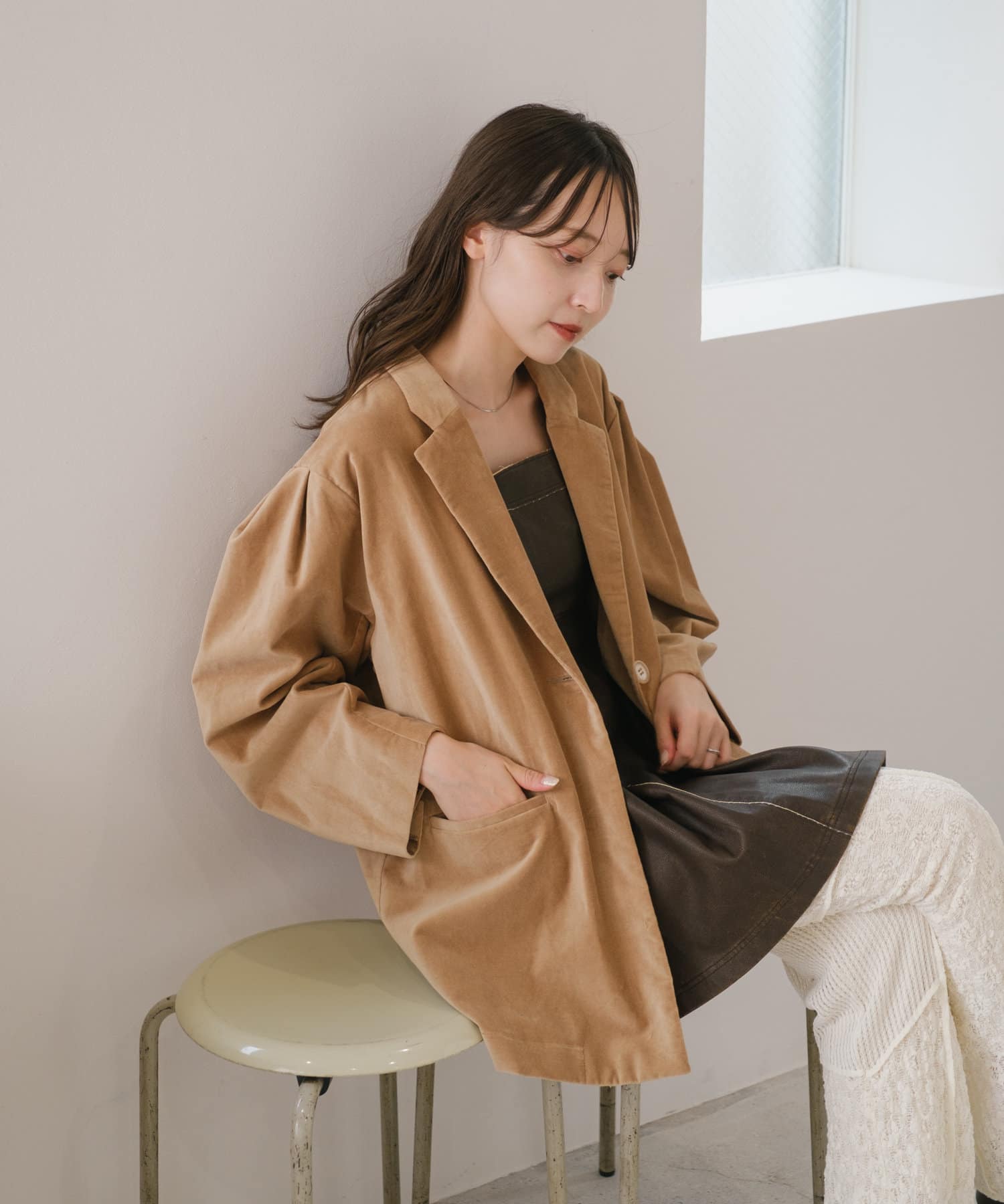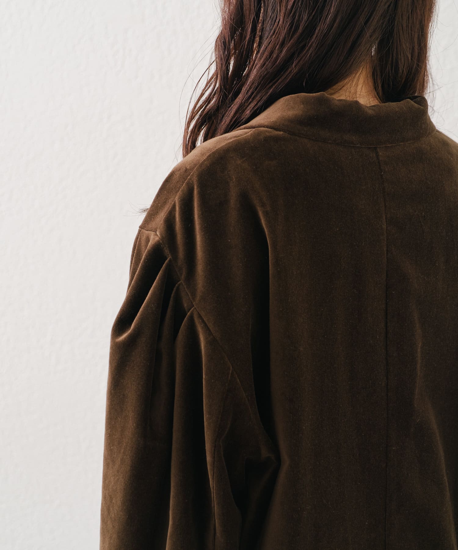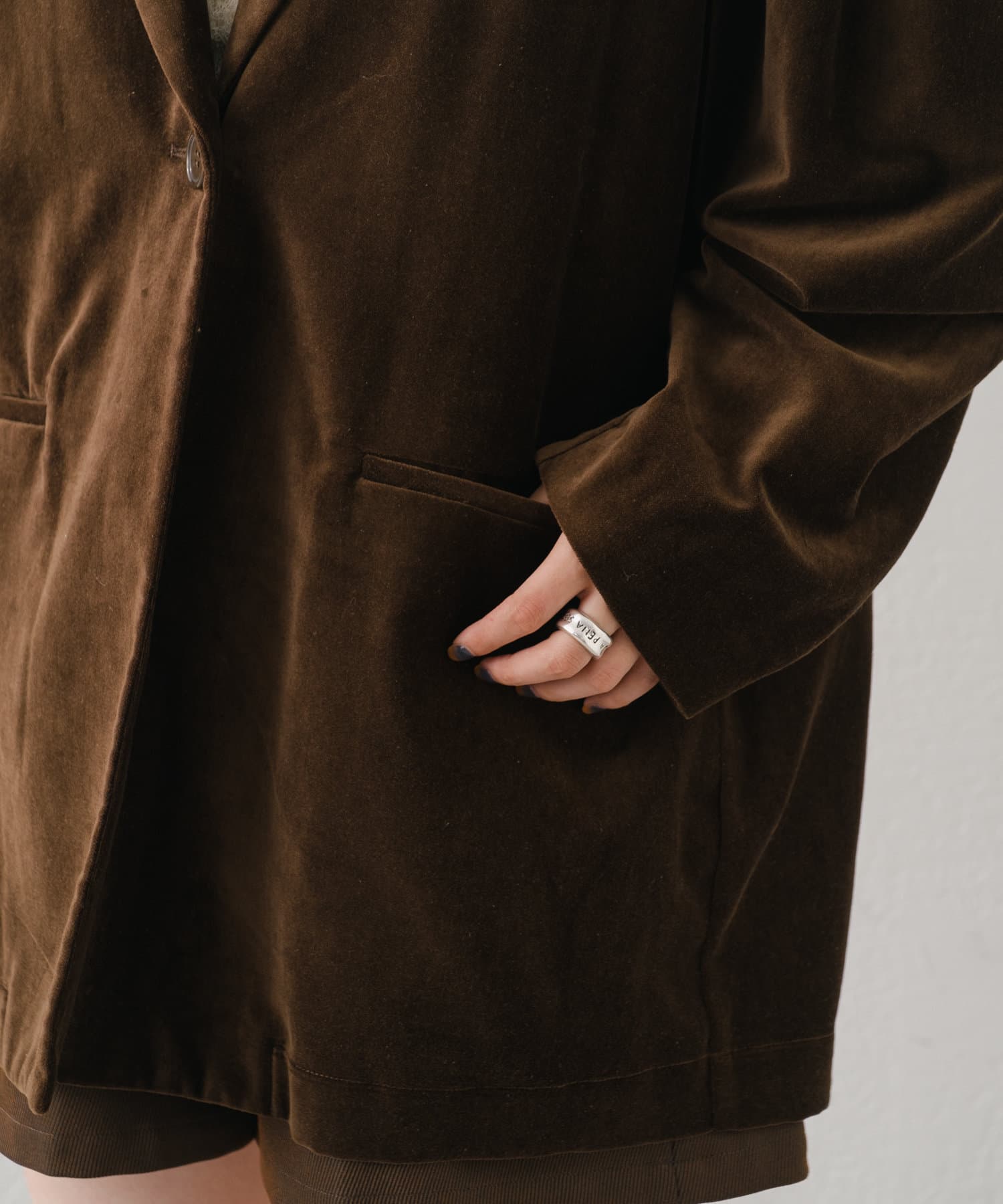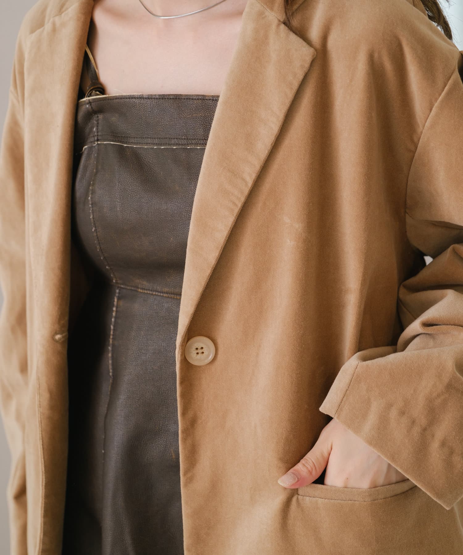 落ち着いた光沢感が上品なベルベット素材のジャケット。