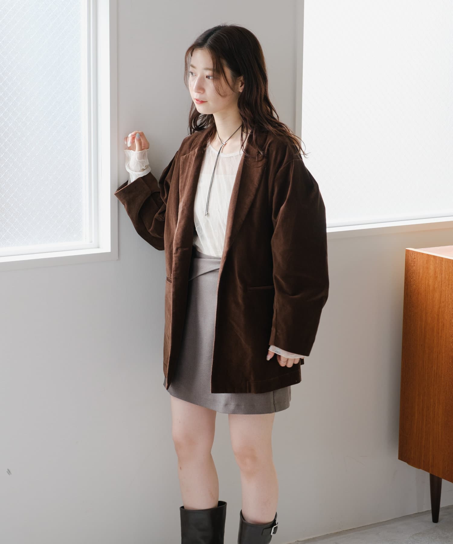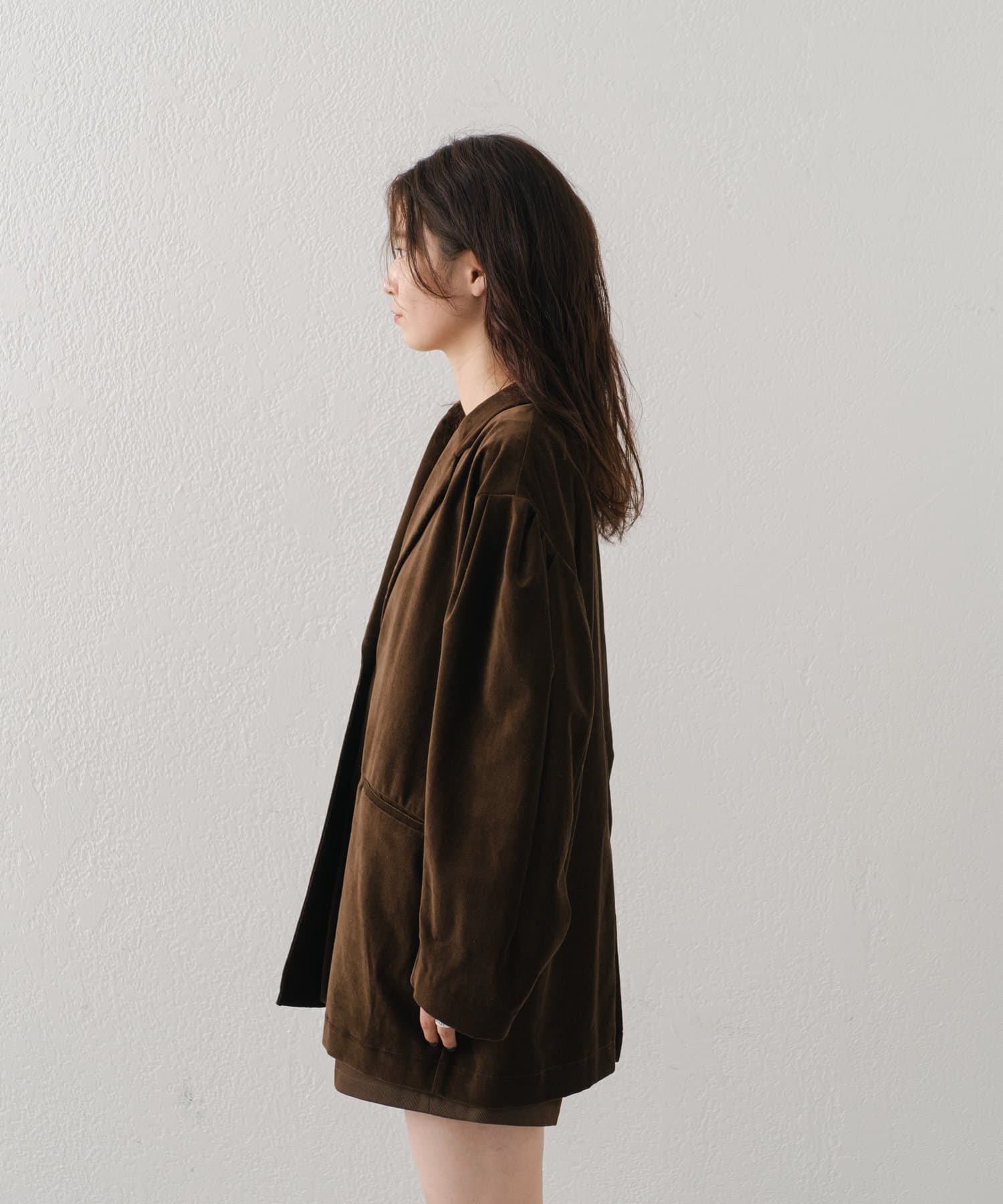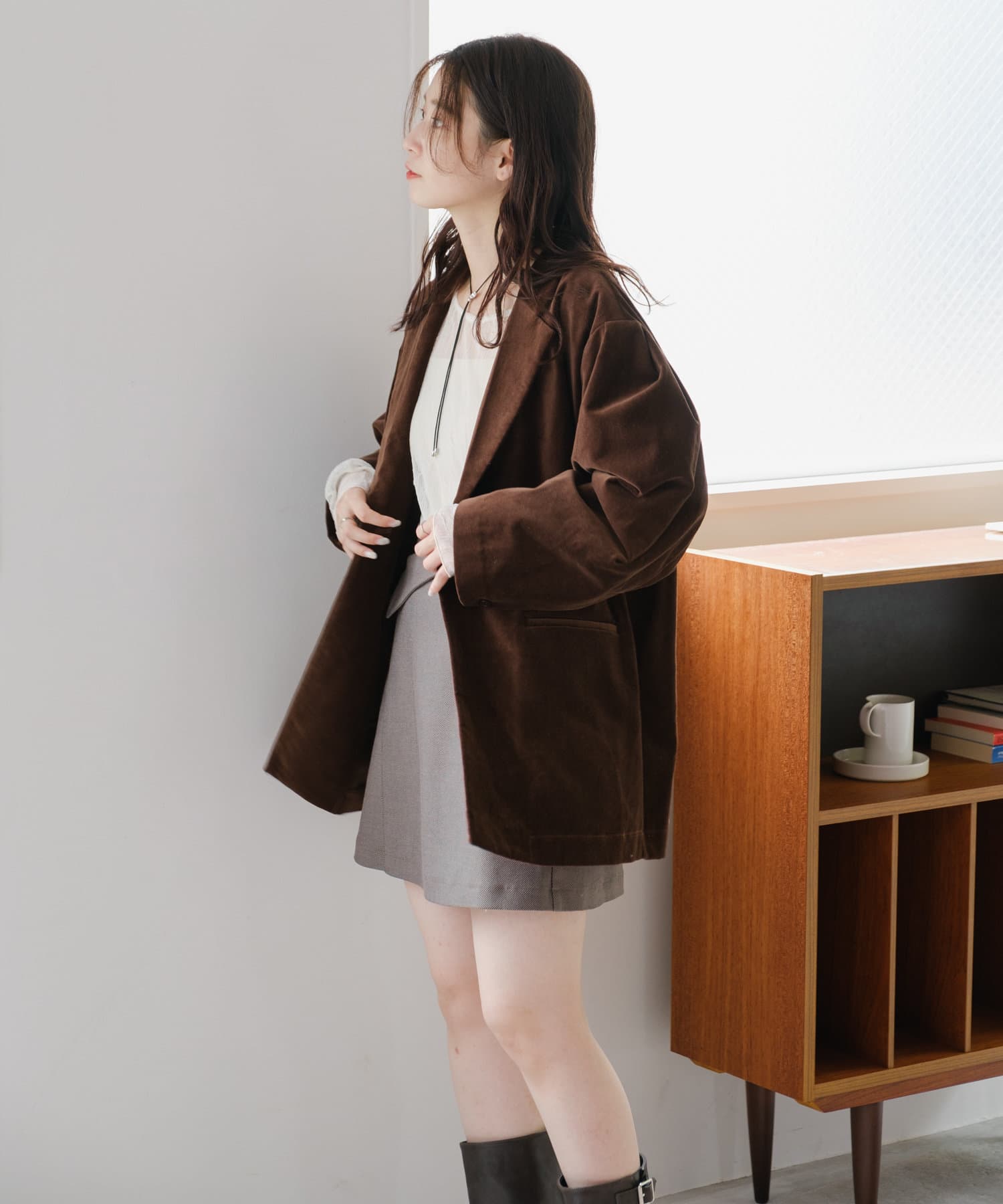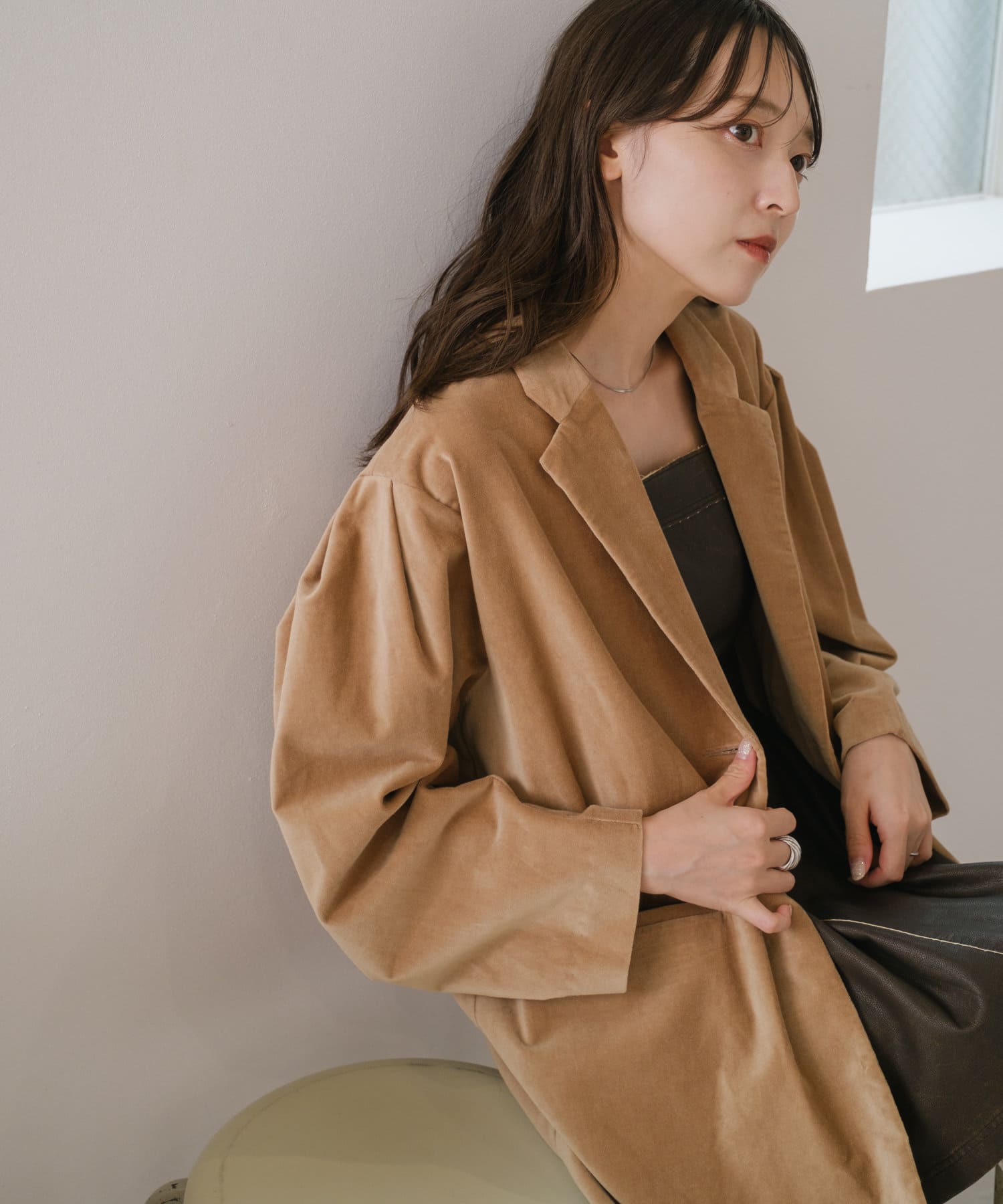 落ち着いた光沢感が上品なベルベット素材のジャケット。