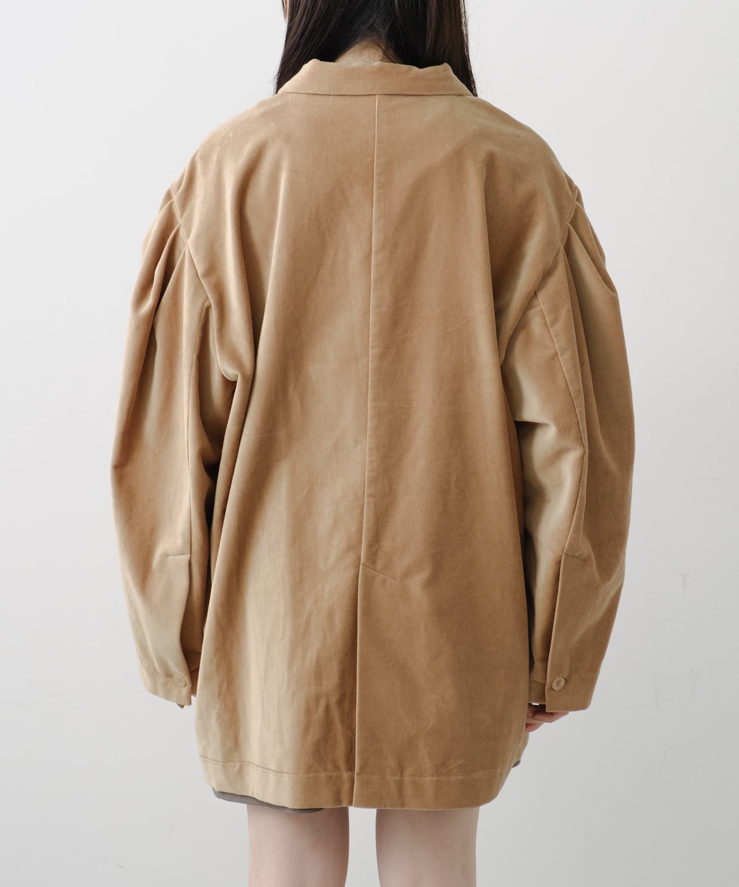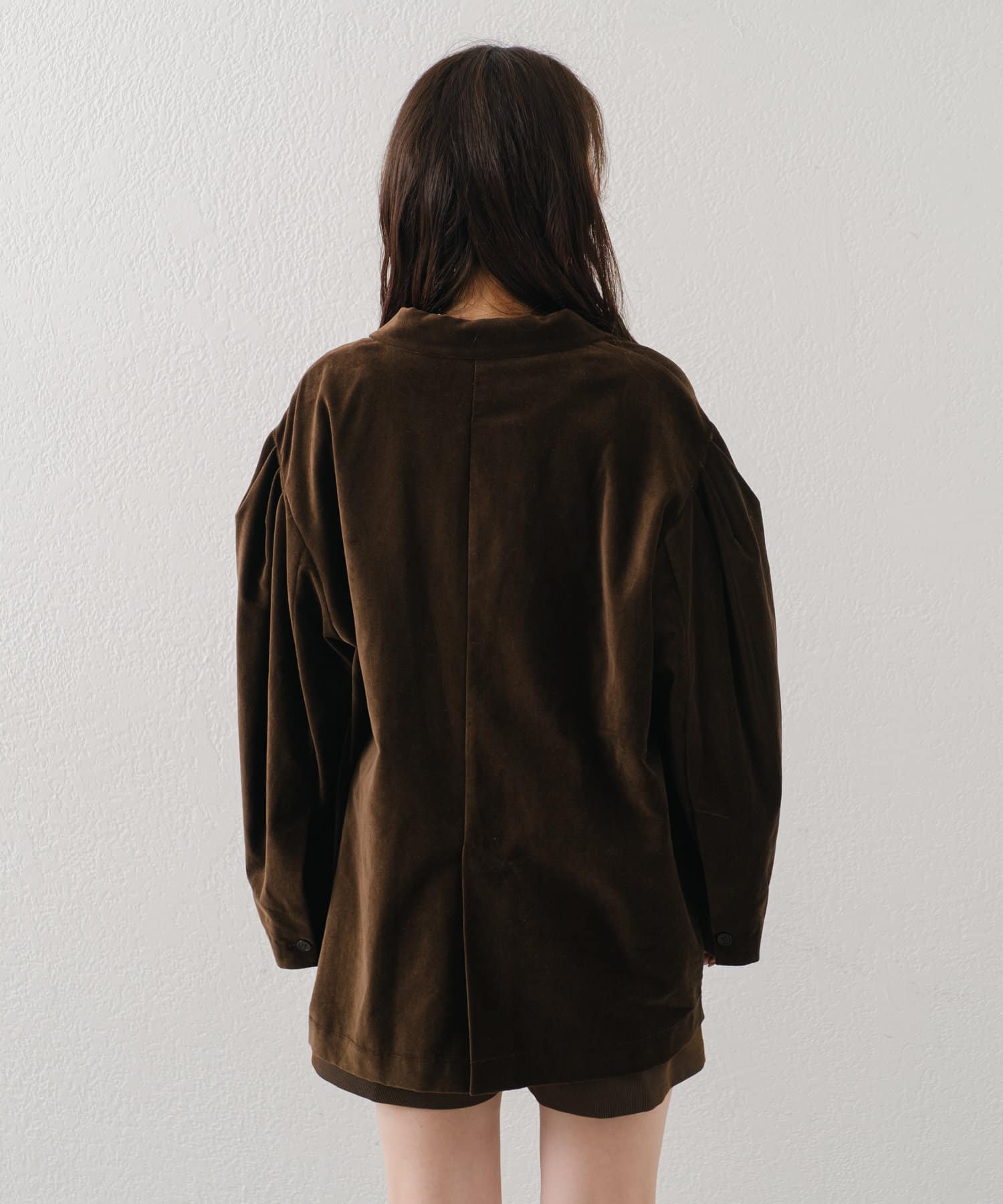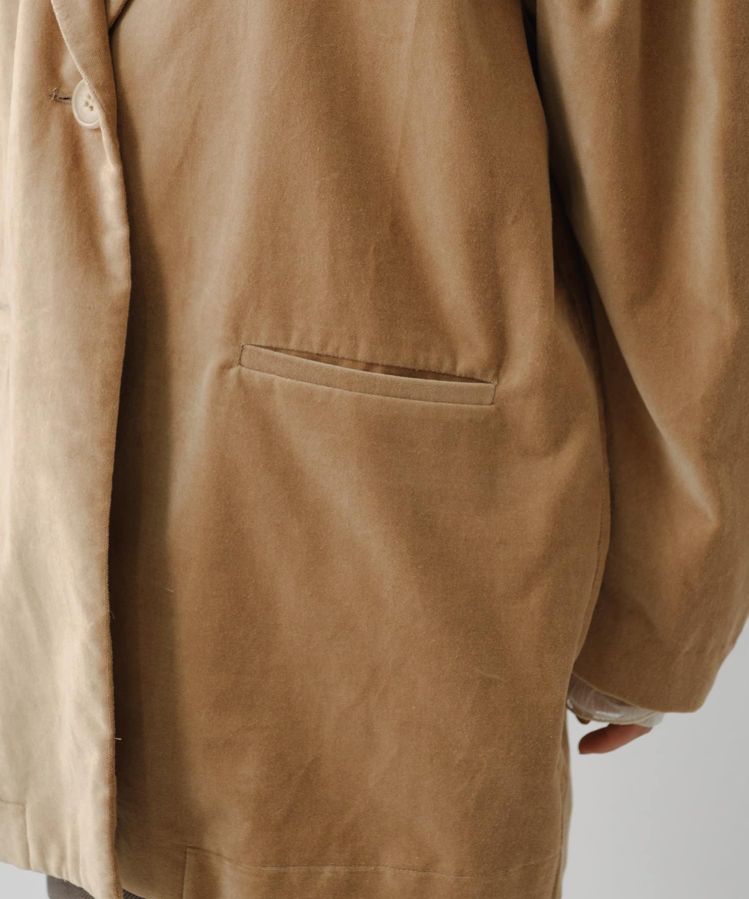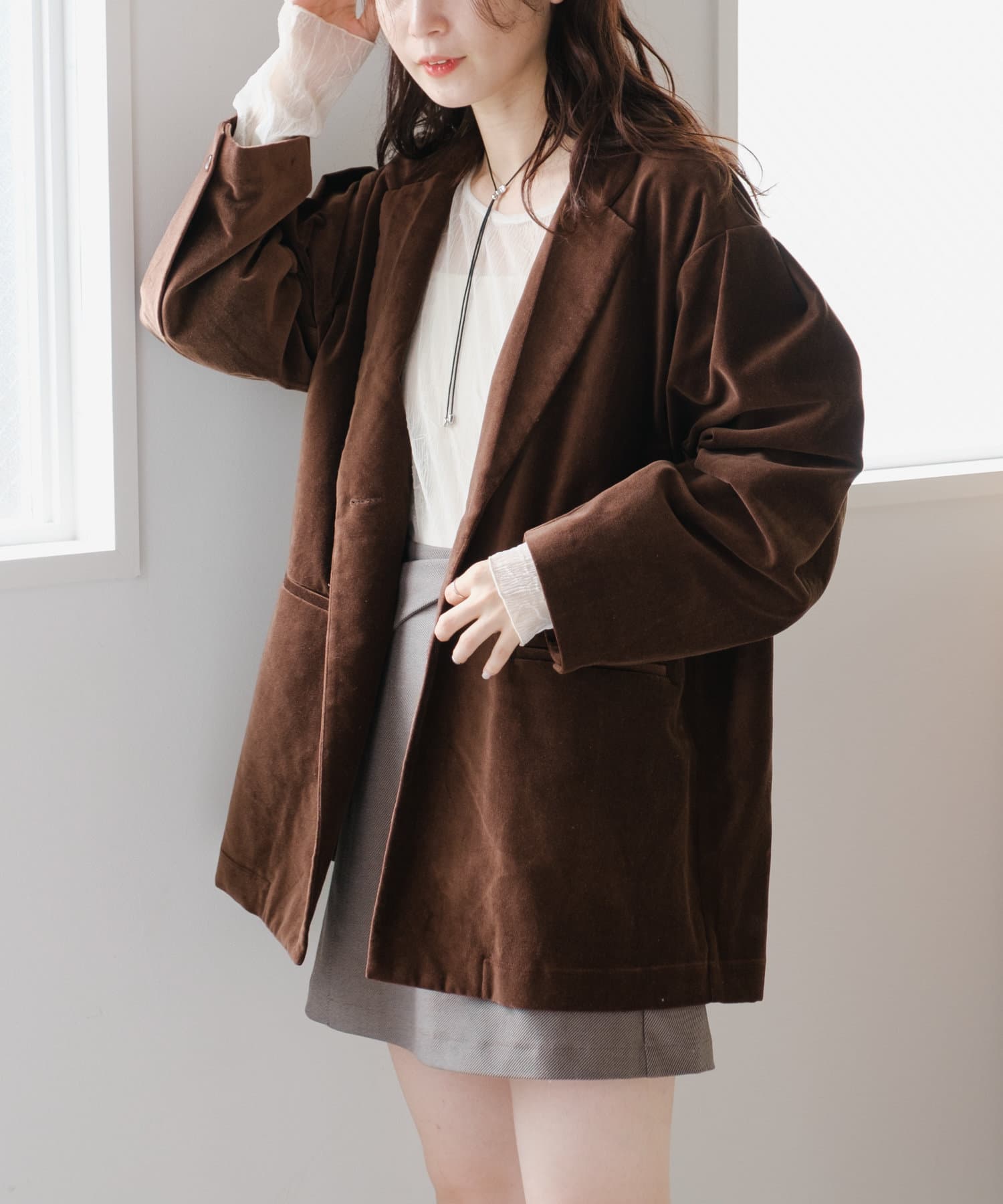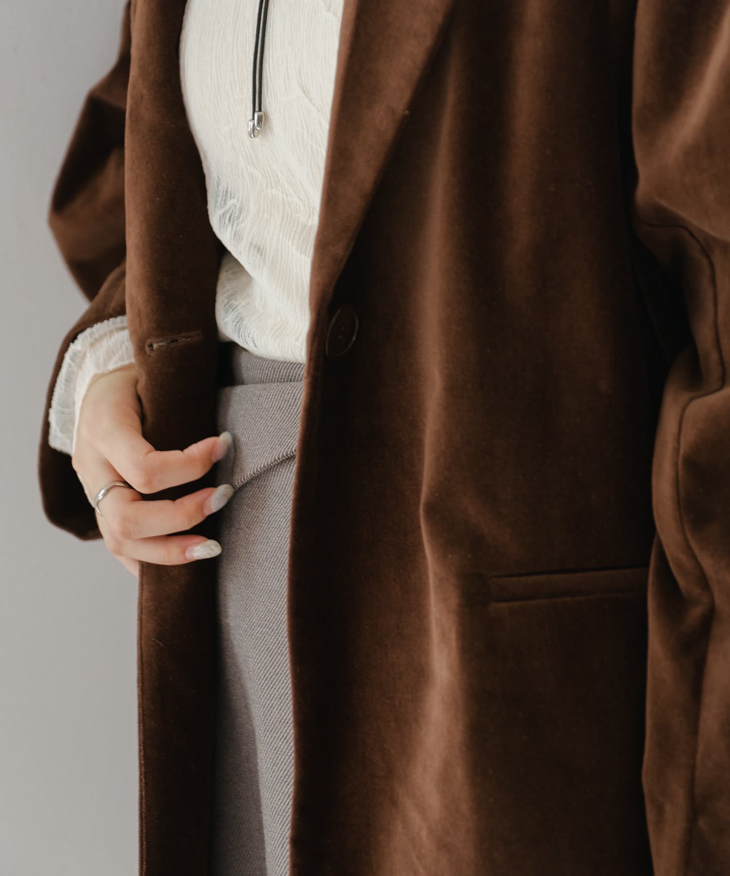 落ち着いた光沢感が上品なベルベット素材のジャケット。