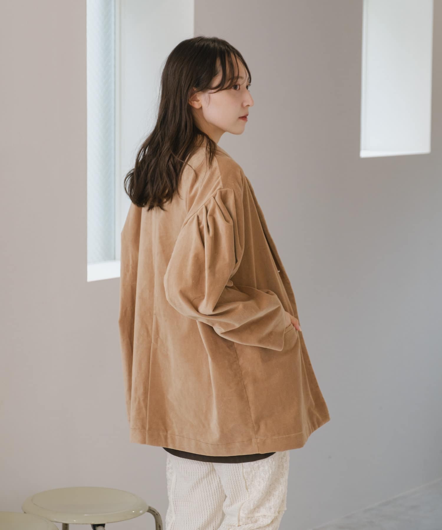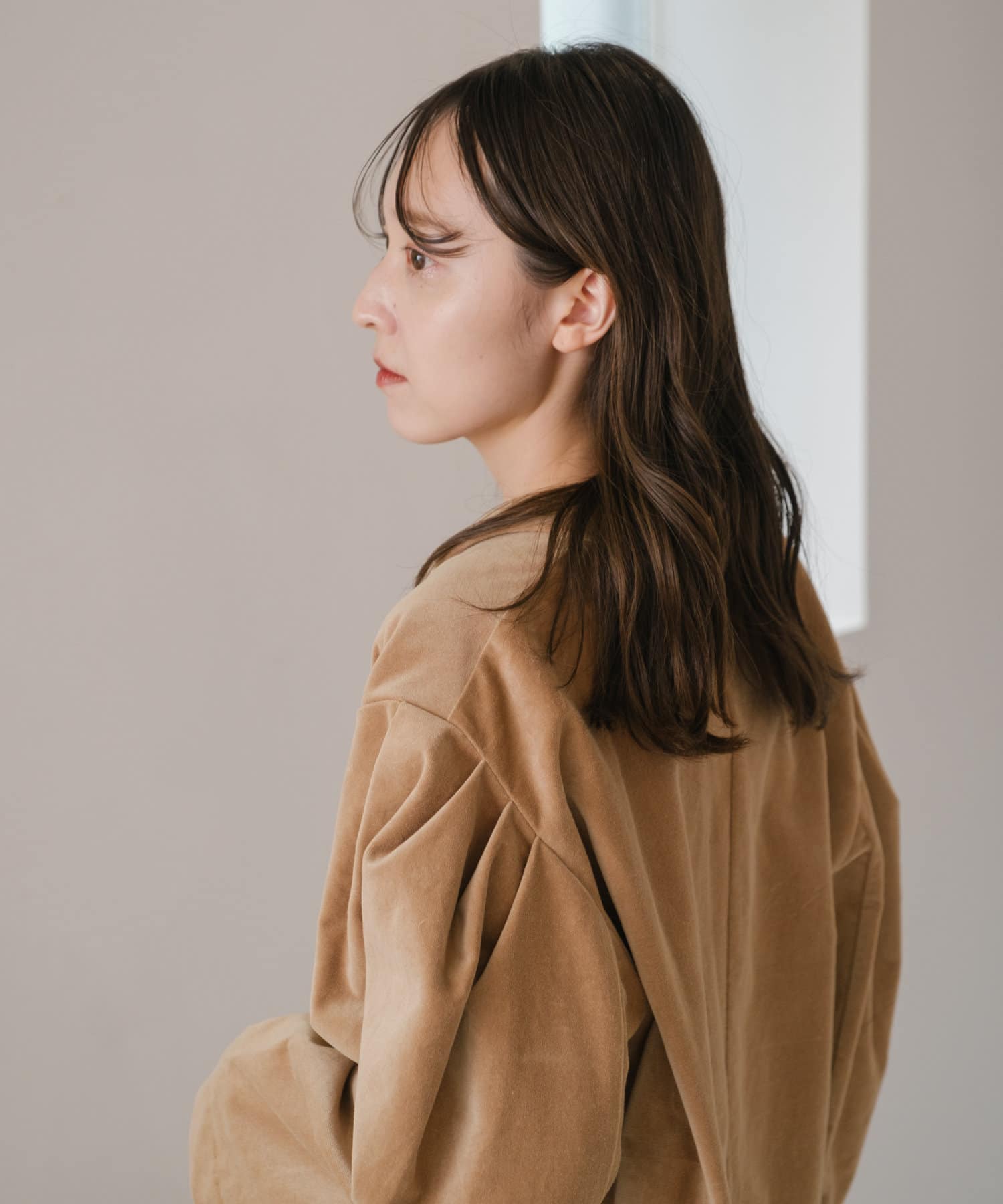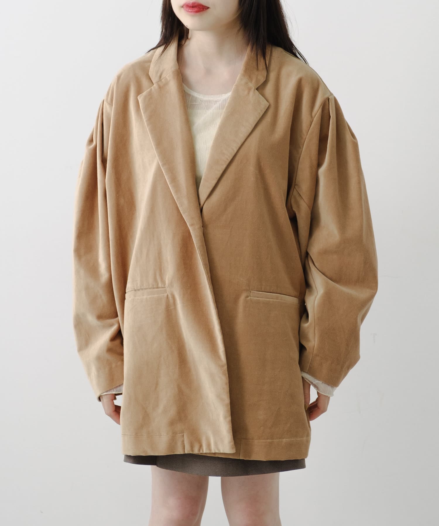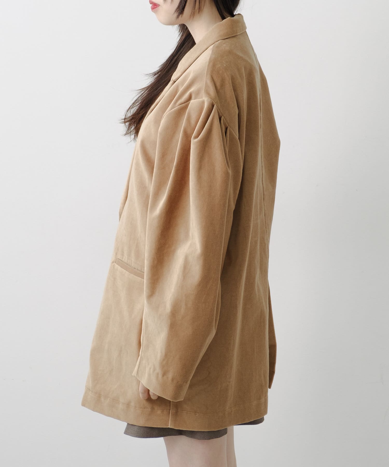 落ち着いた光沢感が上品なベルベット素材のジャケット。