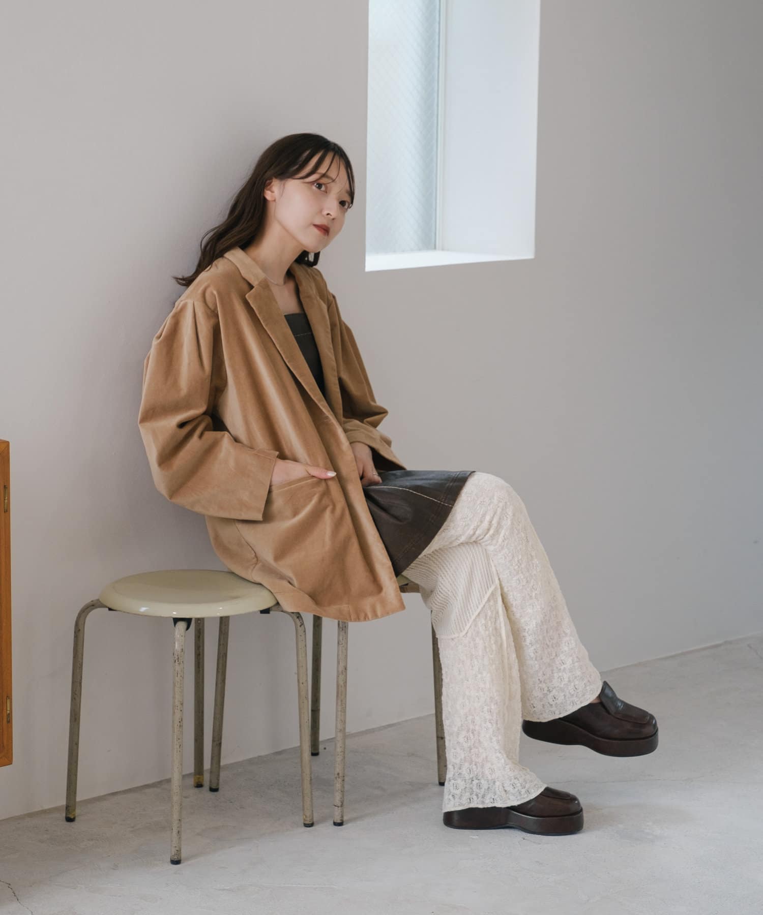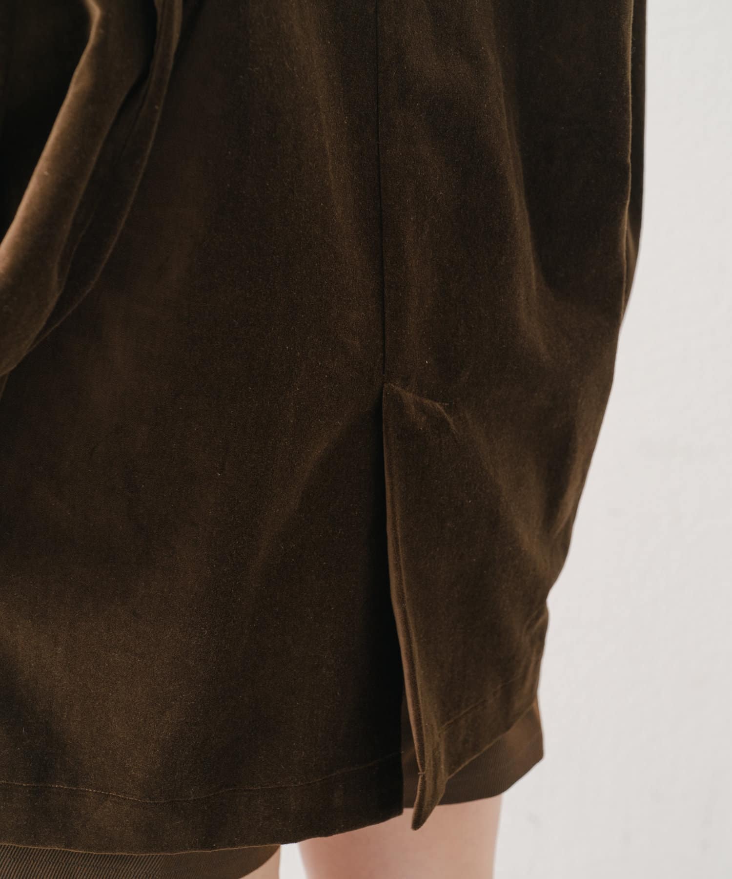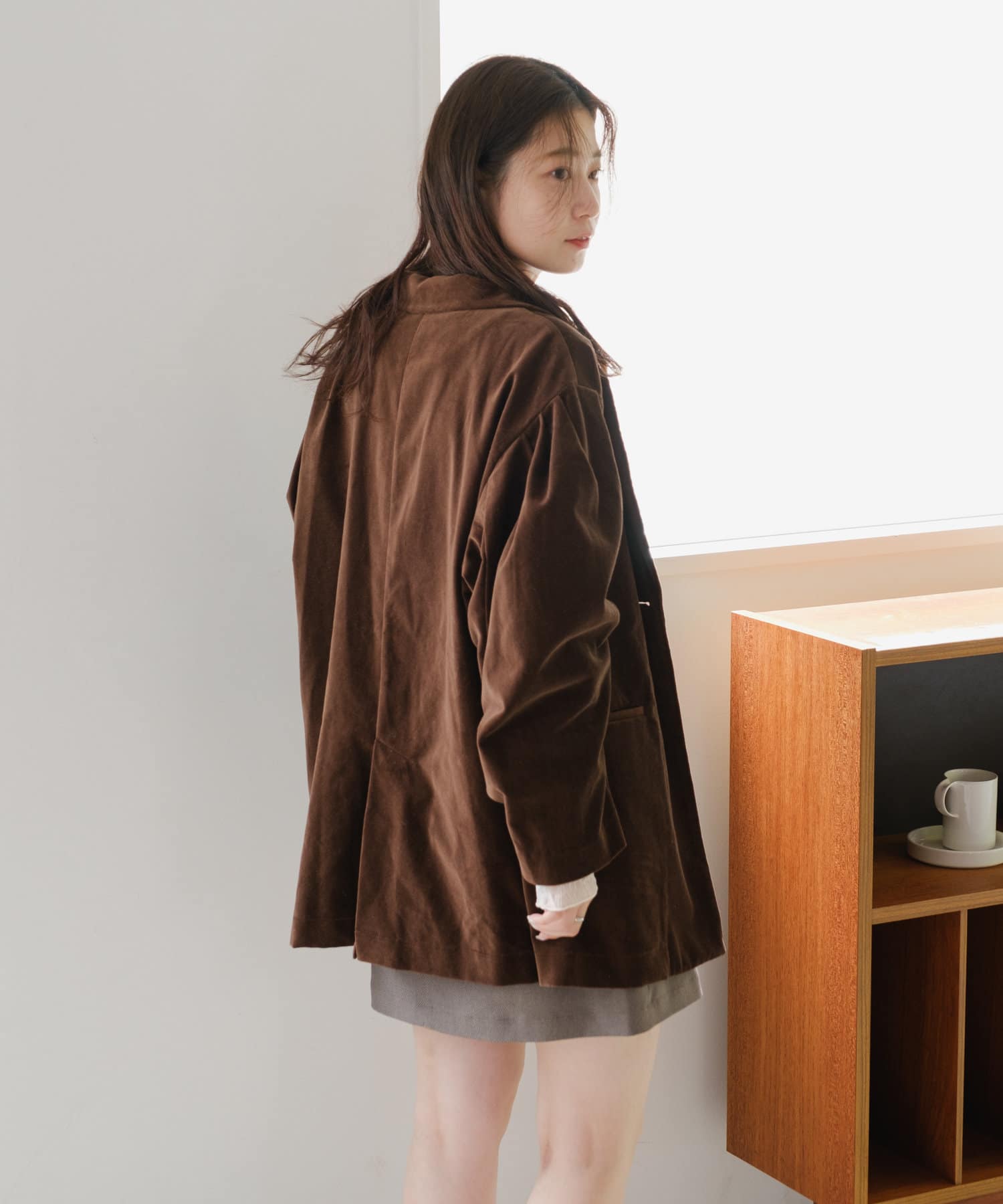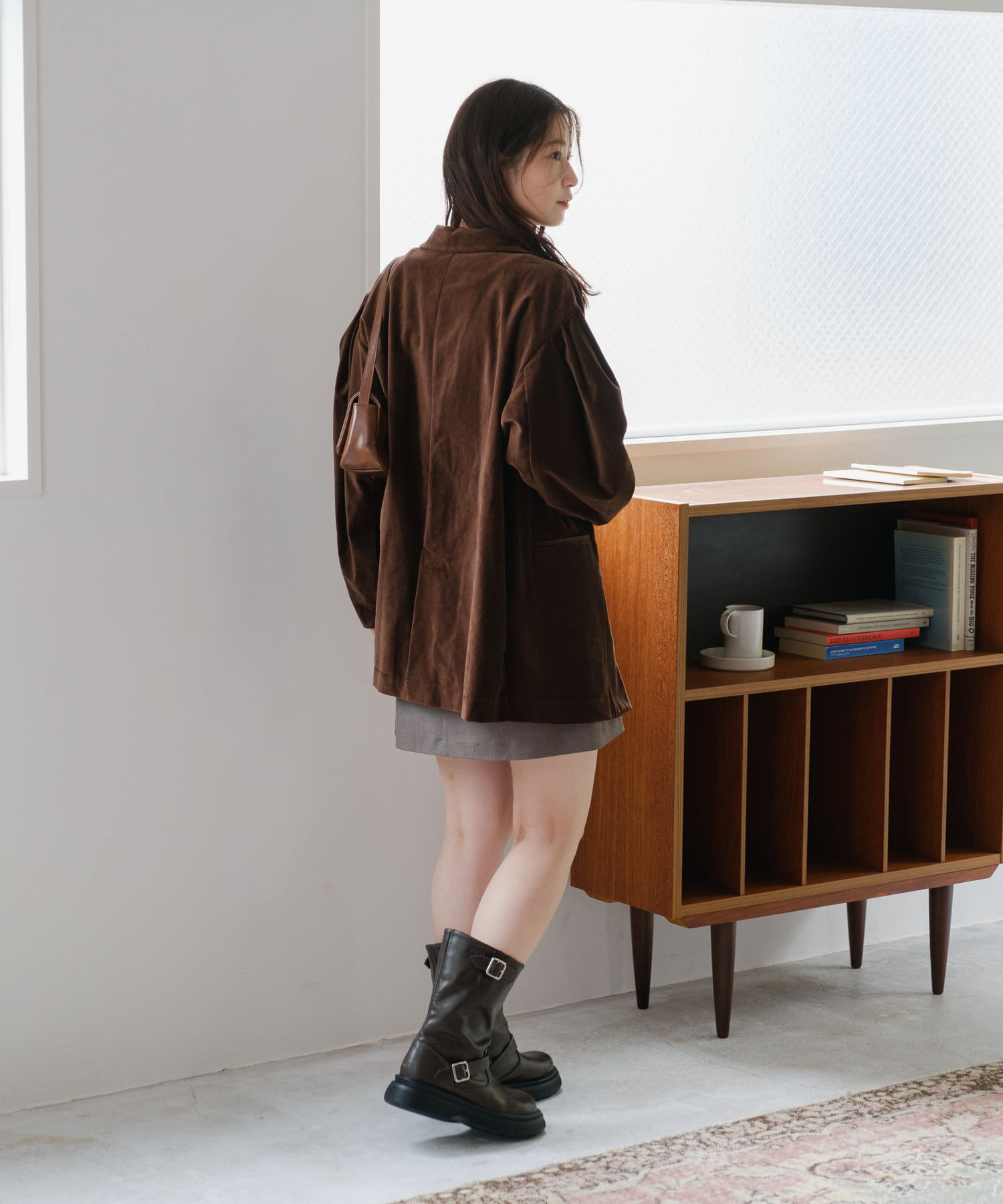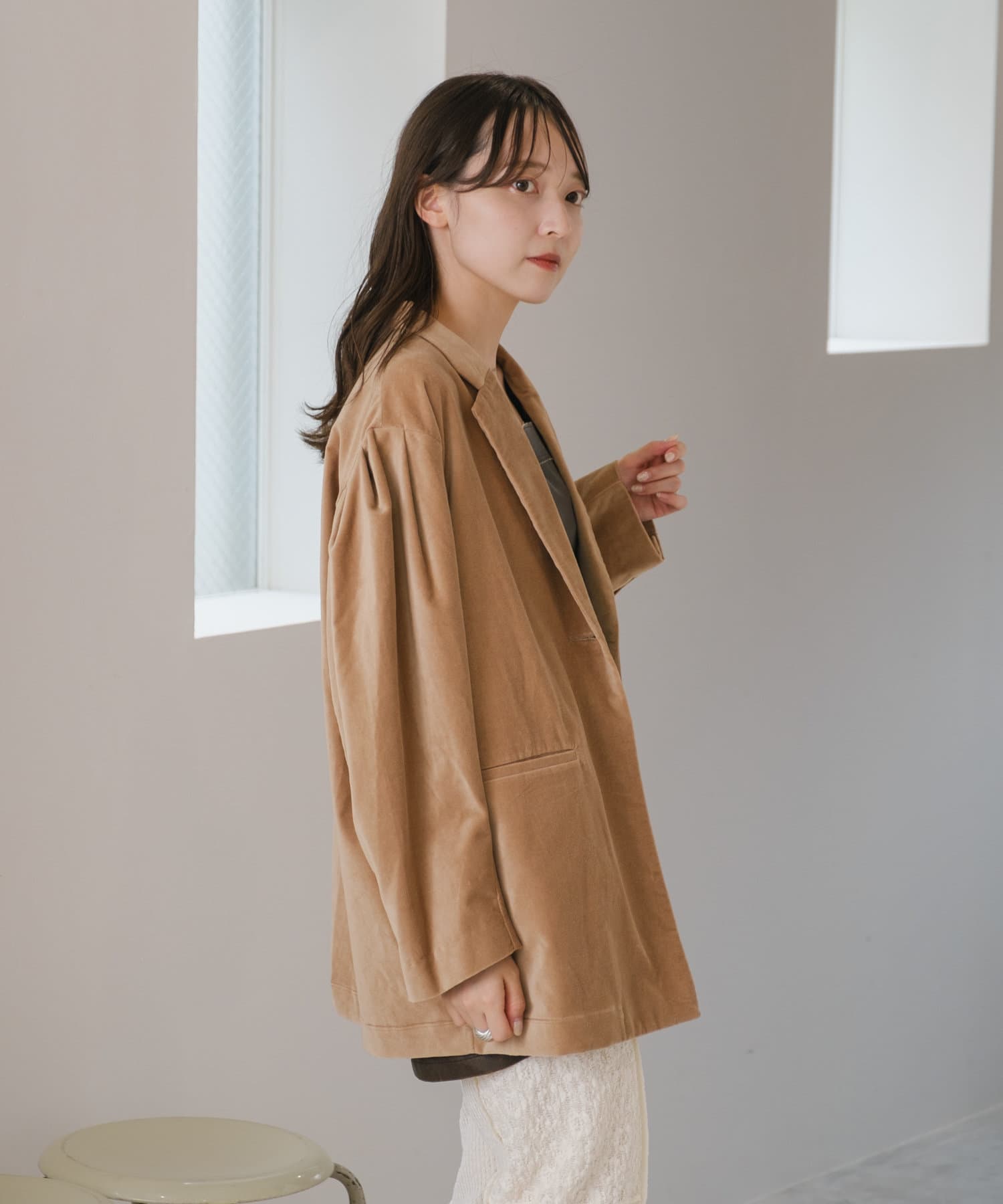 落ち着いた光沢感が上品なベルベット素材のジャケット。