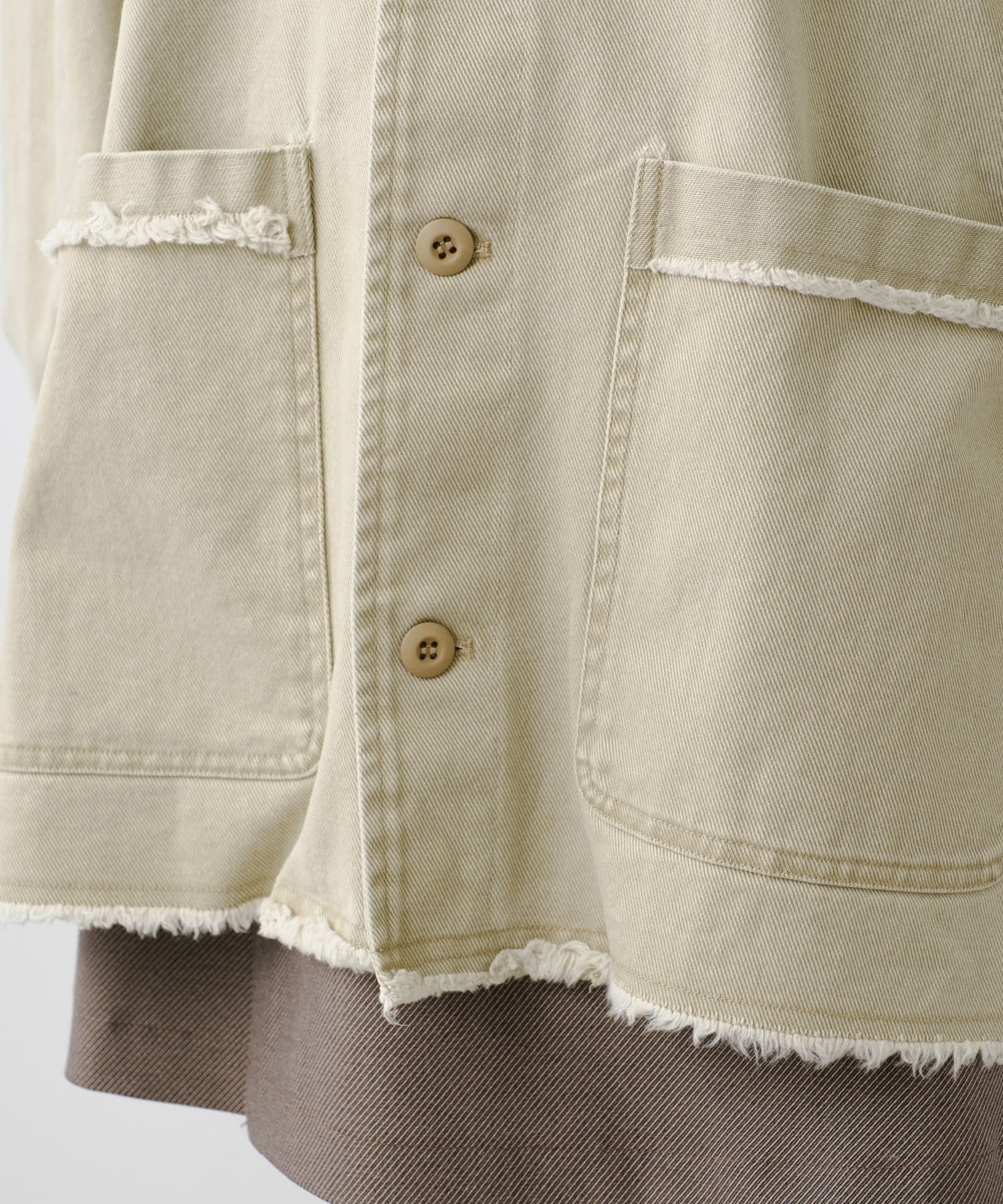 ポケットや裾が断ち切りになっているデザイン性のあるジャケットが登場。