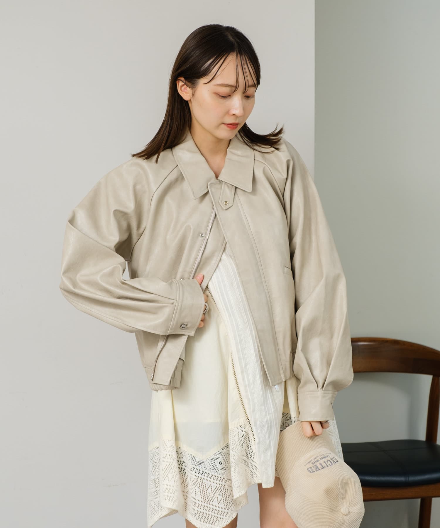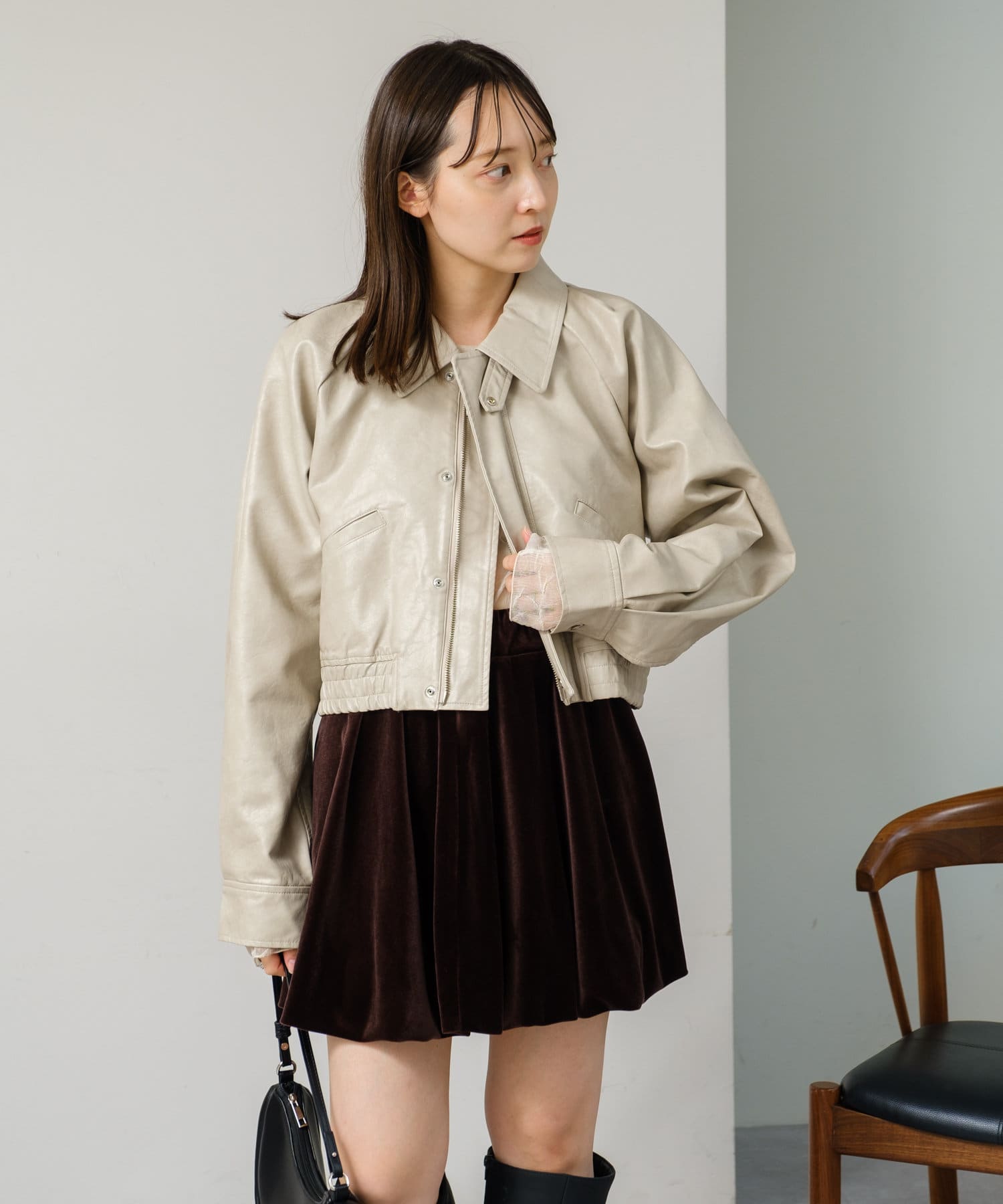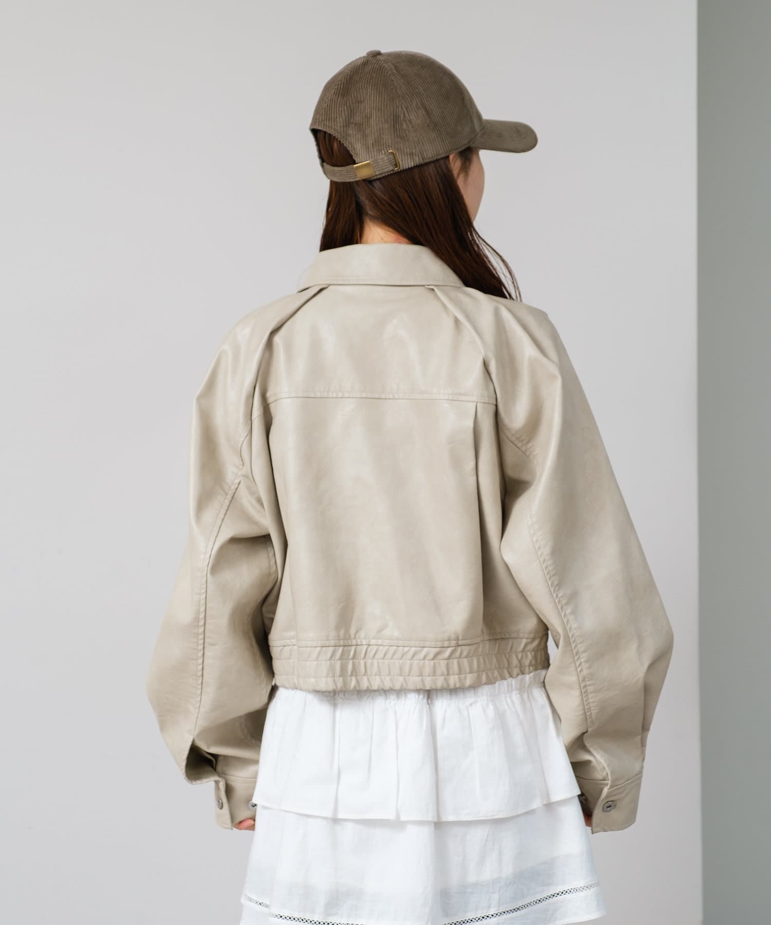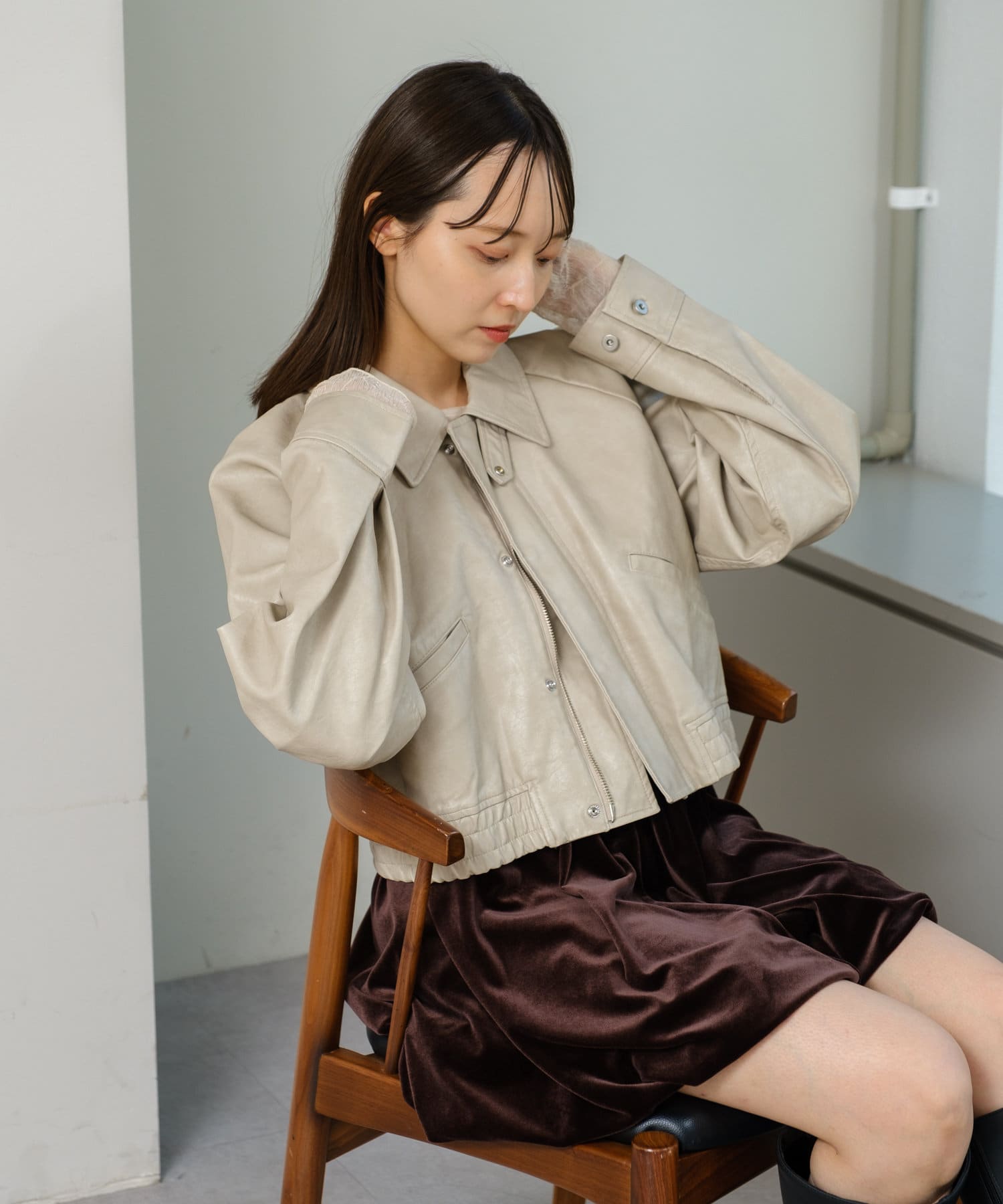 コンパクトなサイズ感ながら袖にはボリューム感のあるデザインが女性らしいレザージャケット。