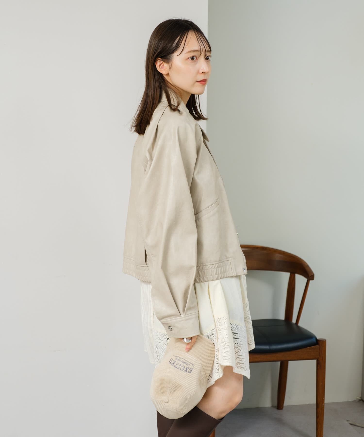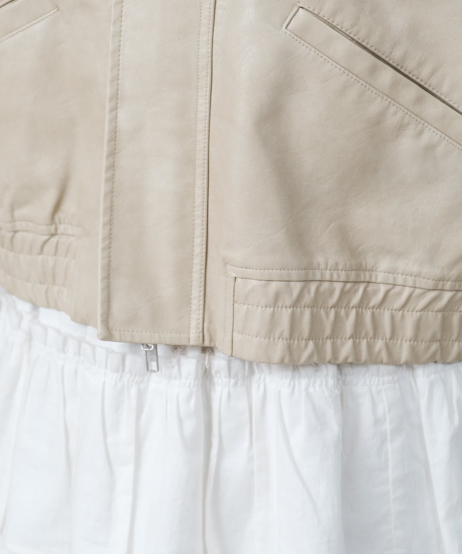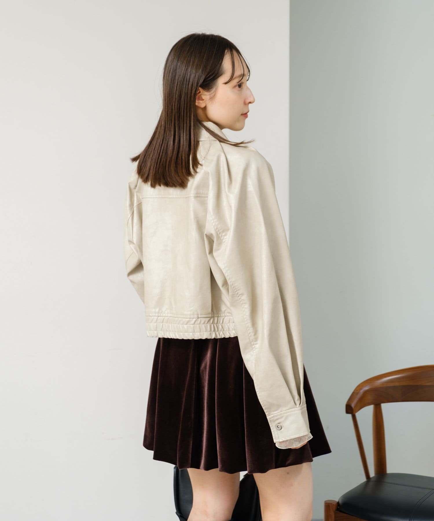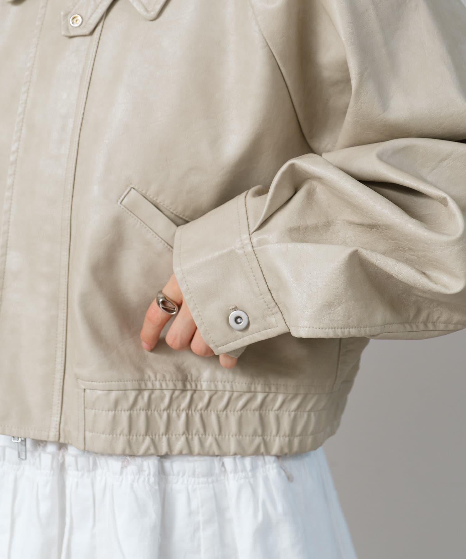コンパクトなサイズ感ながら袖にはボリューム感のあるデザインが女性らしいレザージャケット。