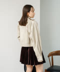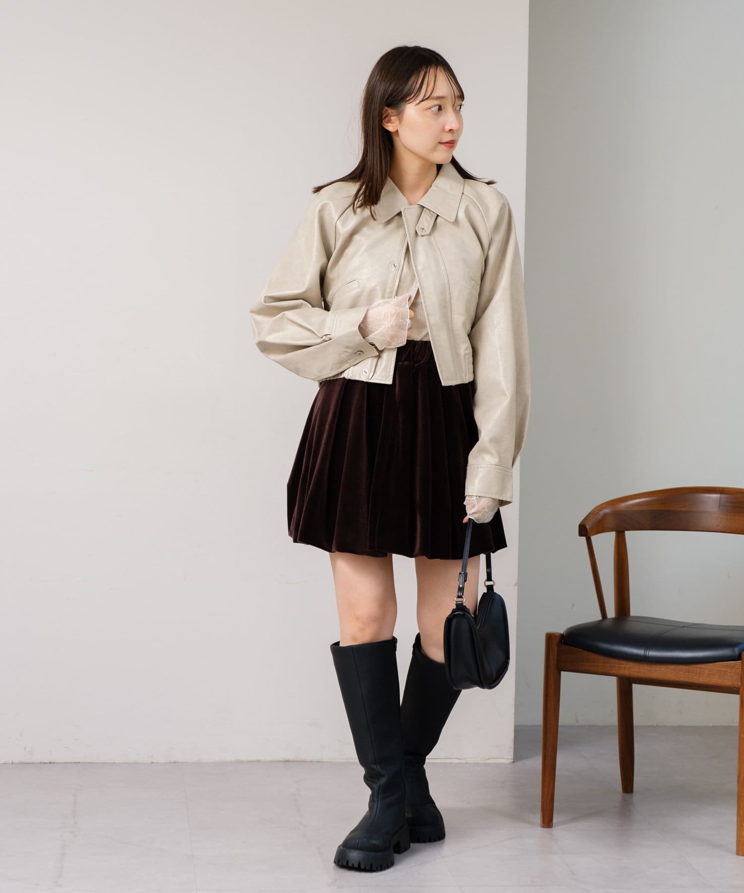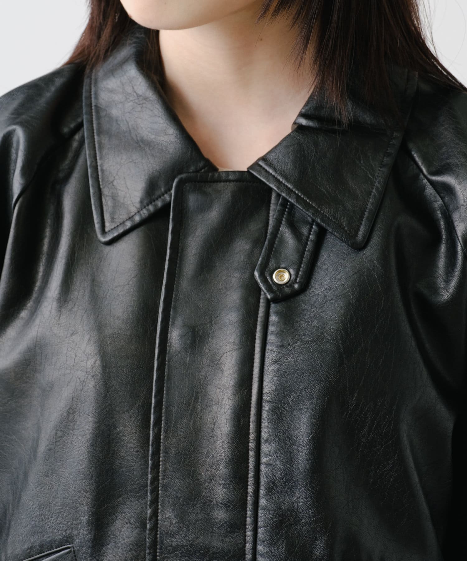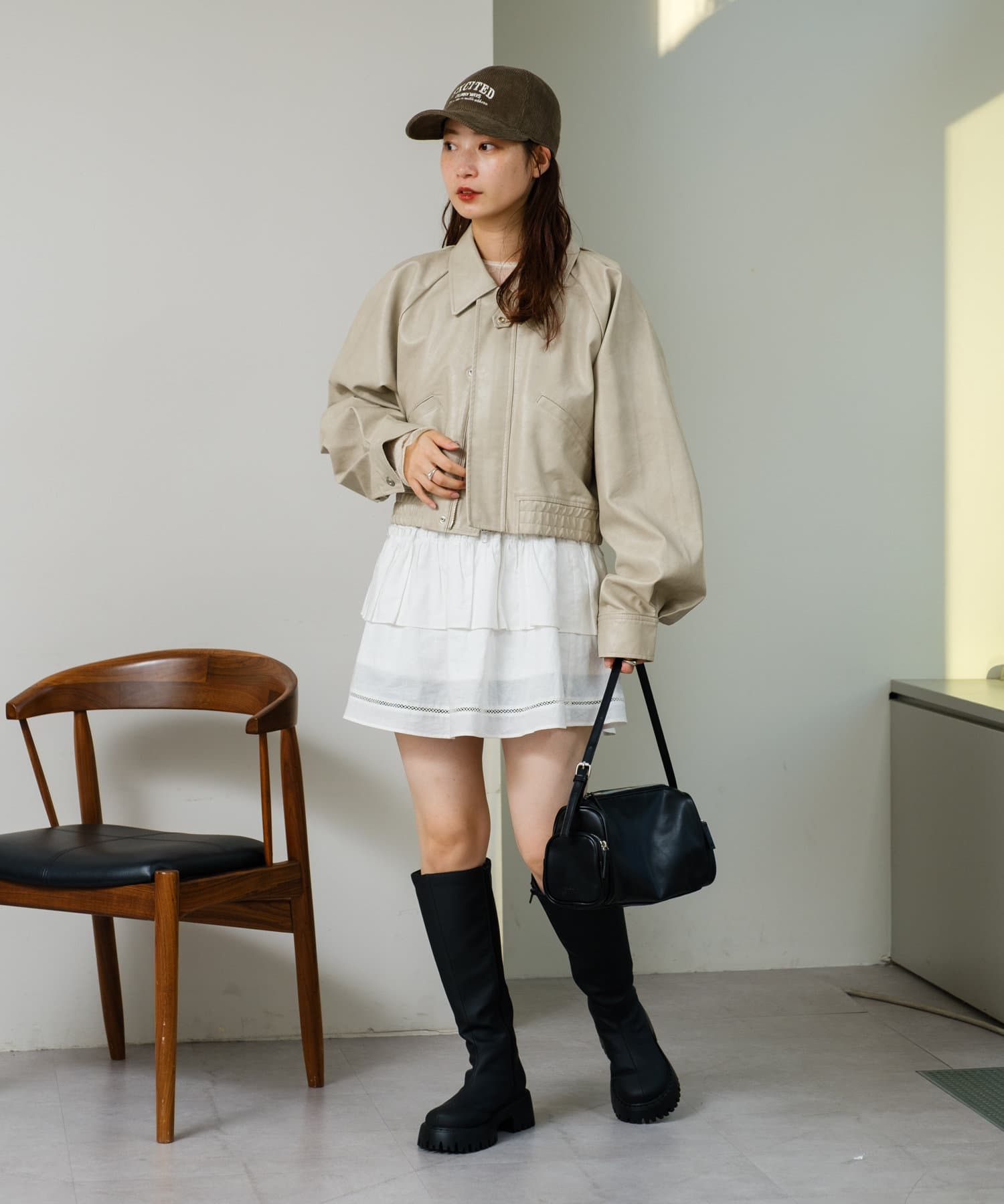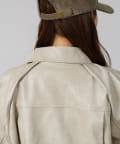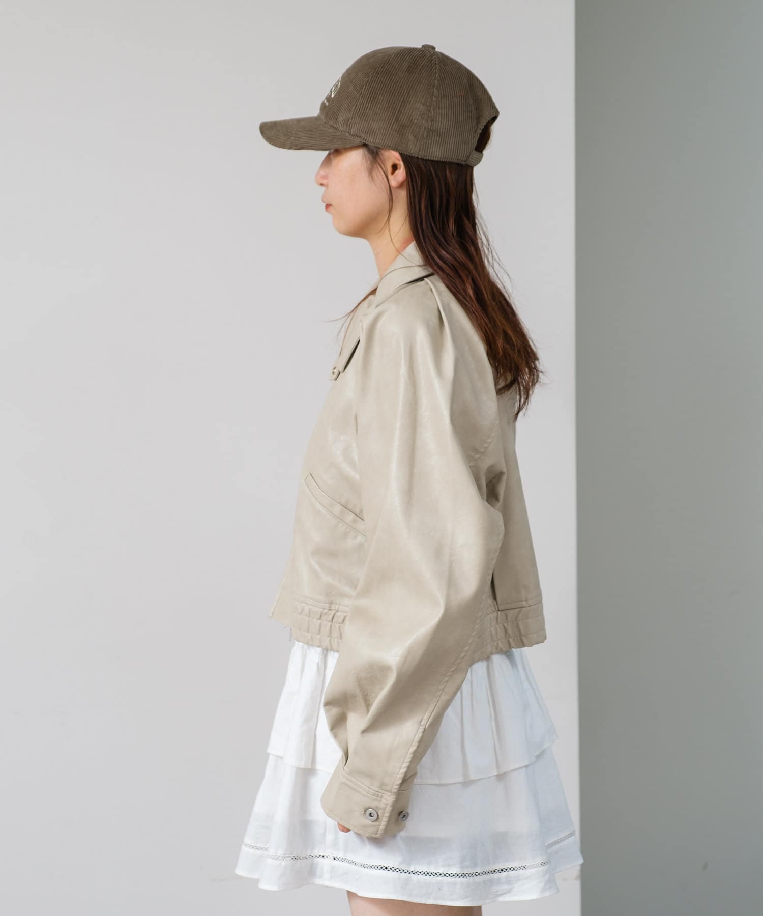 コンパクトなサイズ感ながら袖にはボリューム感のあるデザインが女性らしいレザージャケット。