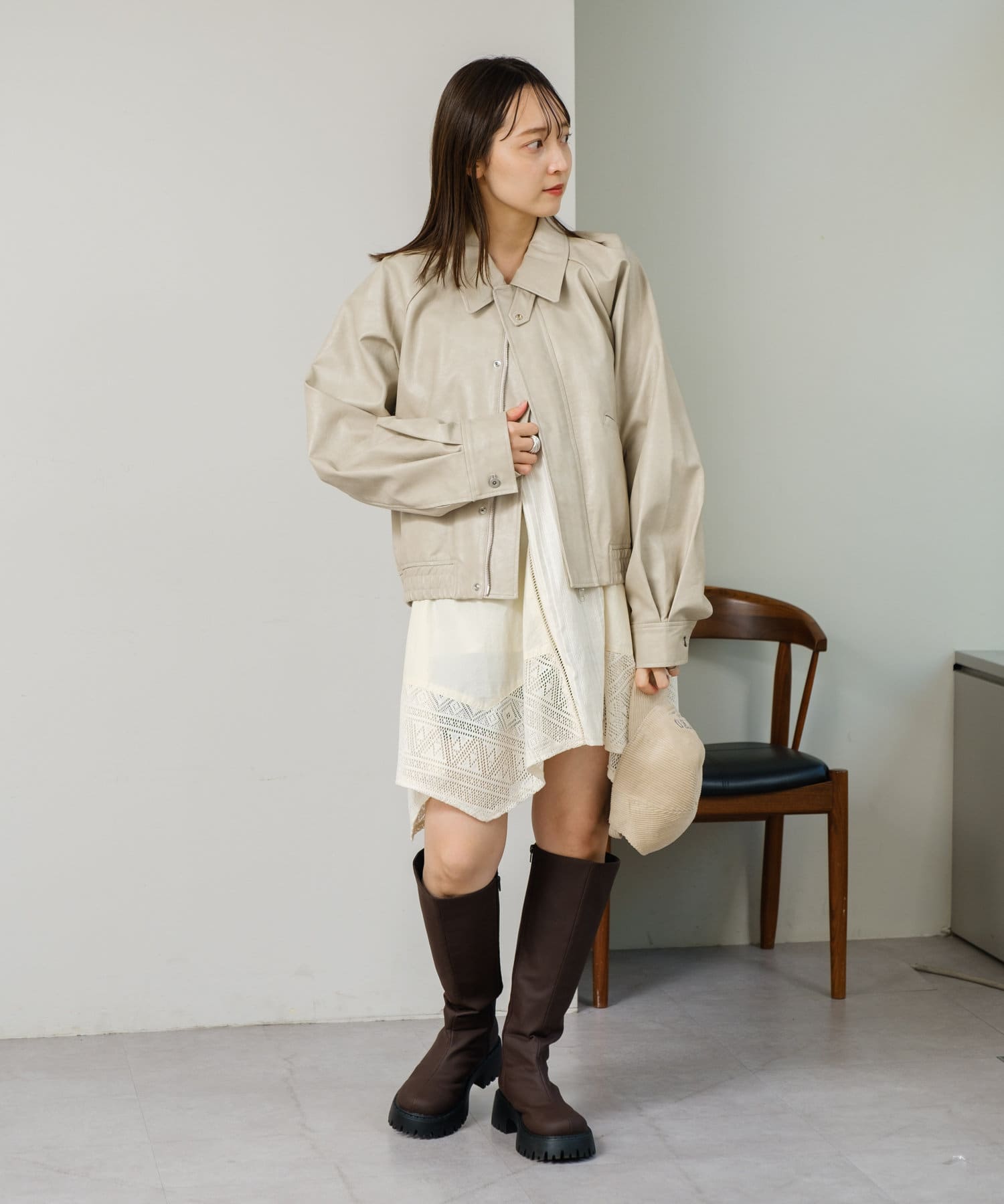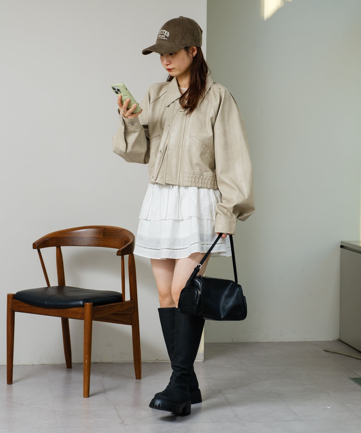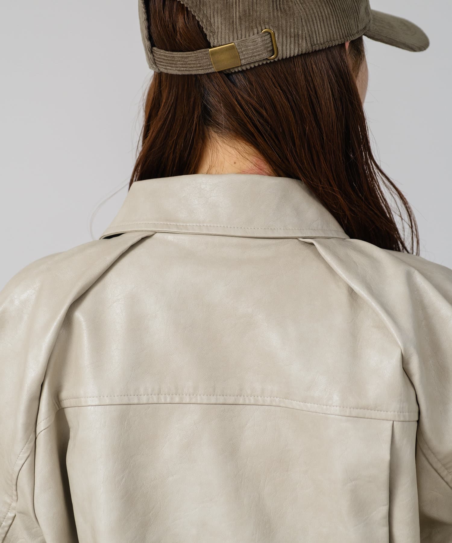 購入場所:パルクローゼットレザーというと、カチッとしていてかっこいいイメージありましたが、肩周りがゆったりしているのでかわいらしく着られます。アイボリーなのでより柔らかい印象です。個人的に横から見た時にたぽっと丸みを帯びている感じが好きです。