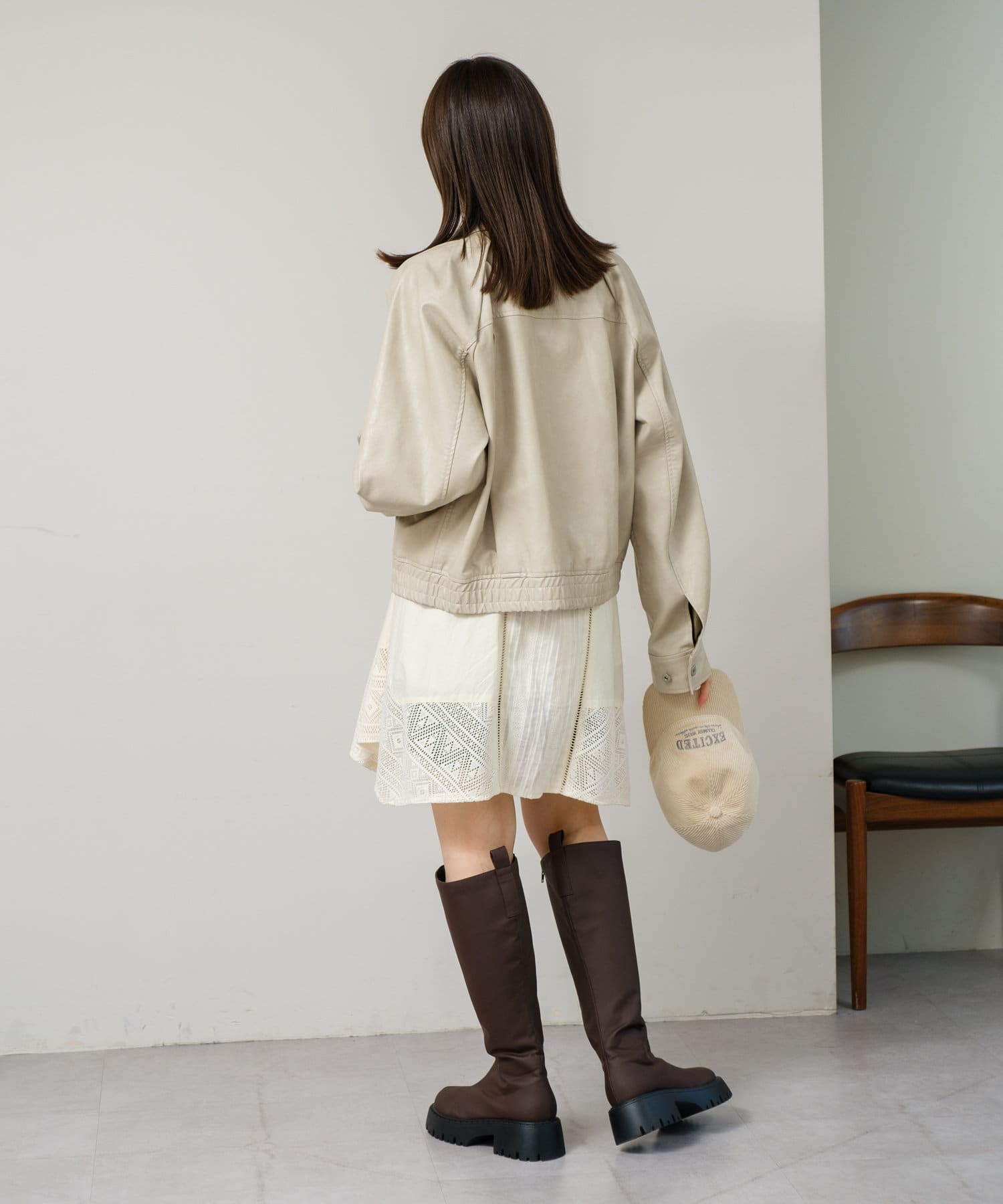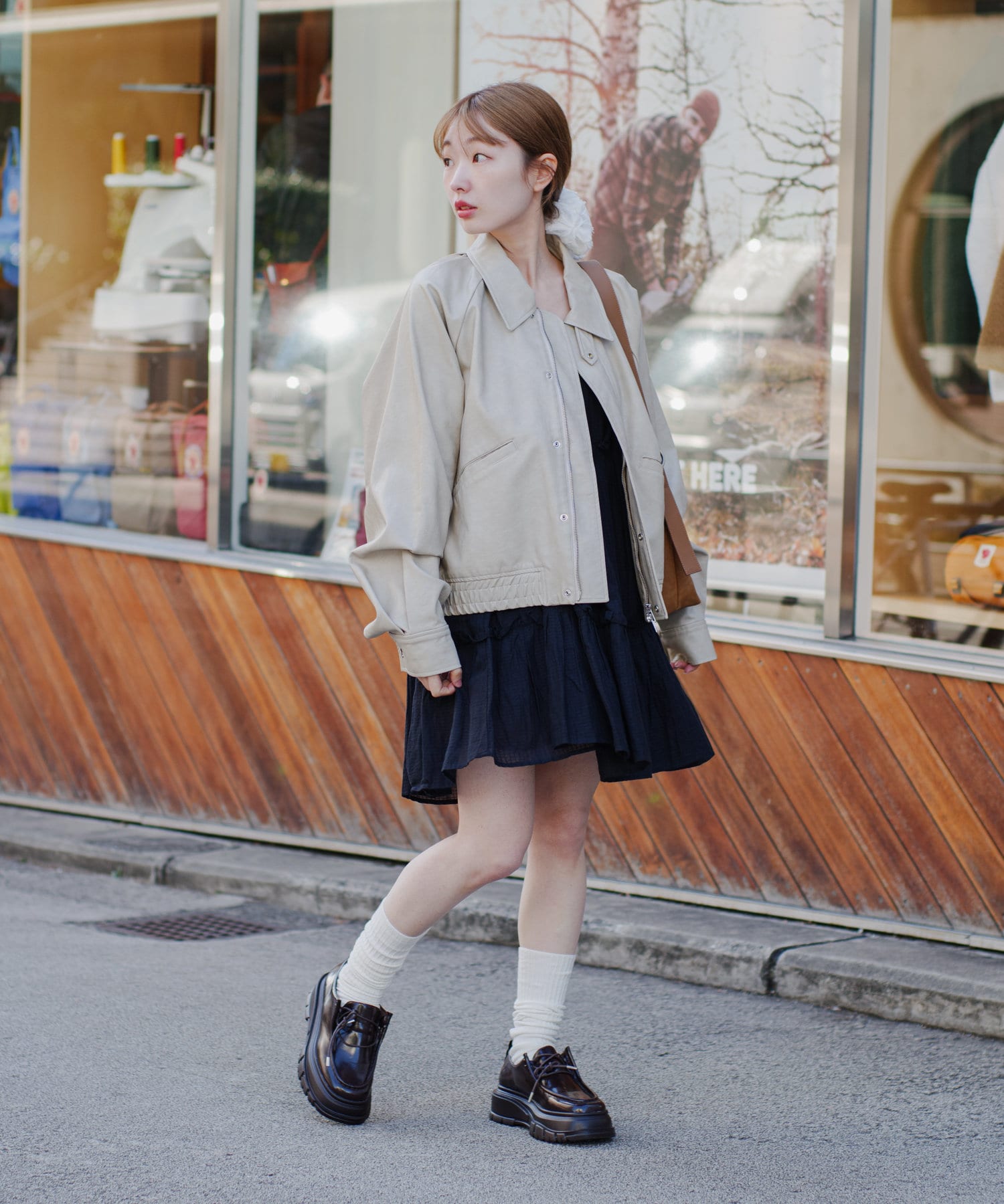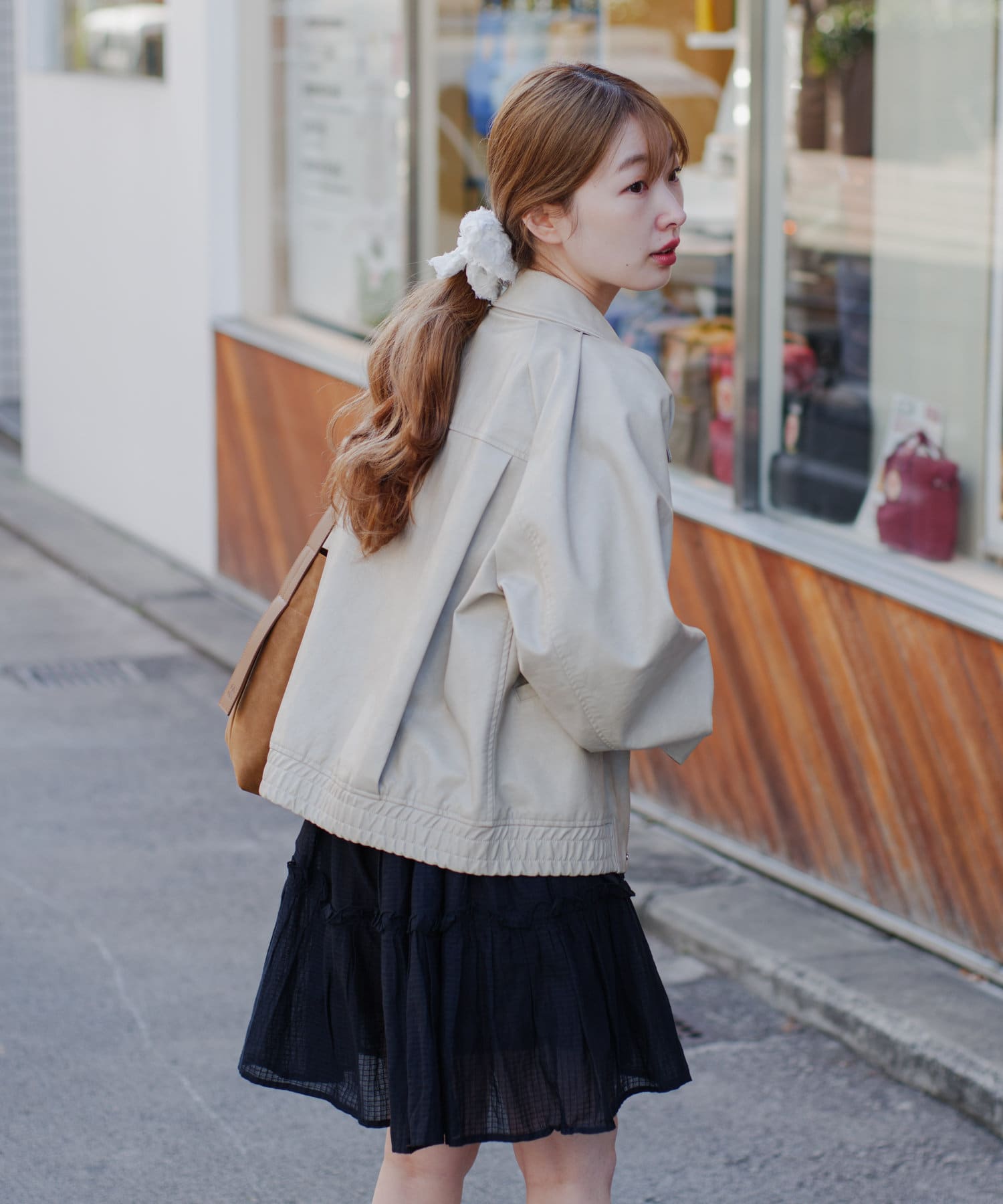 購入場所:パルクローゼットレザーというと、カチッとしていてかっこいいイメージありましたが、肩周りがゆったりしているのでかわいらしく着られます。アイボリーなのでより柔らかい印象です。個人的に横から見た時にたぽっと丸みを帯びている感じが好きです。