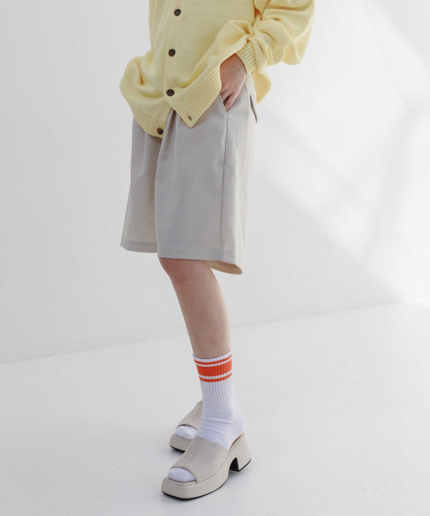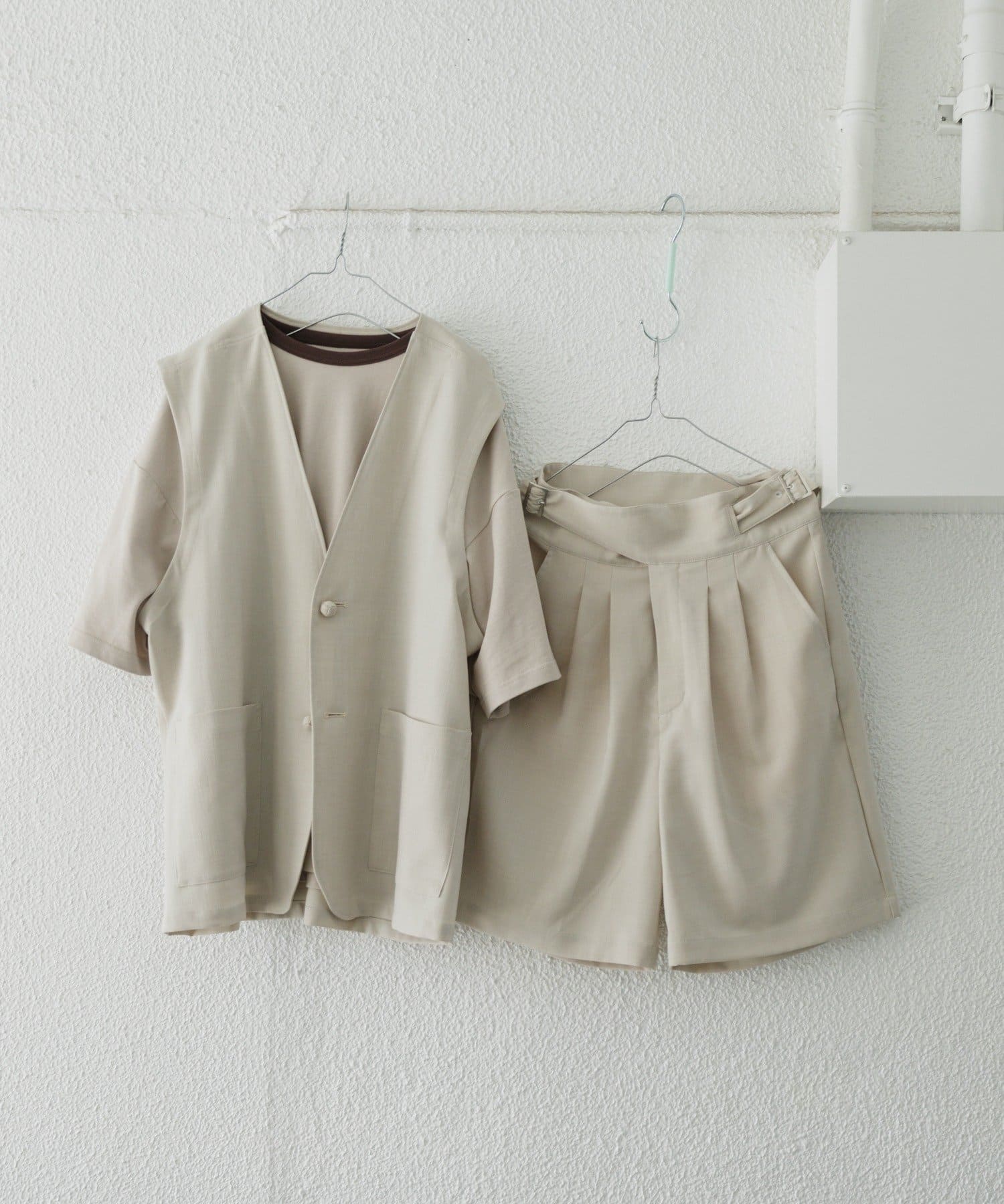 タック入りでシルエットを綺麗に見せてくれます。SET UPのベストと着るだけでこなれ感を演出します。