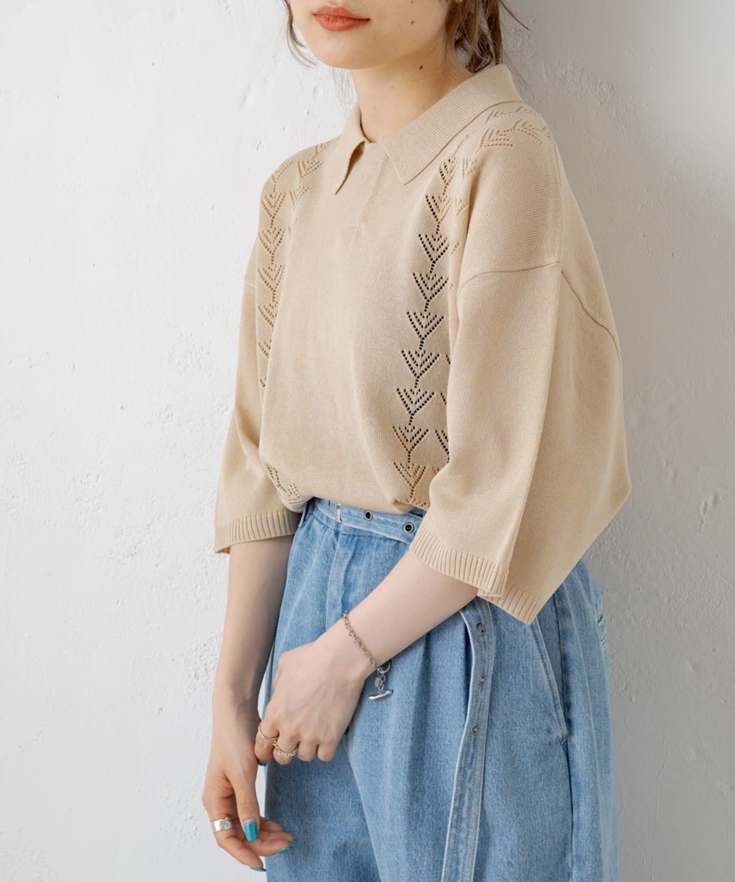 襟付きのポロシャツは上品見えする今年らしく着て頂ける一着です。