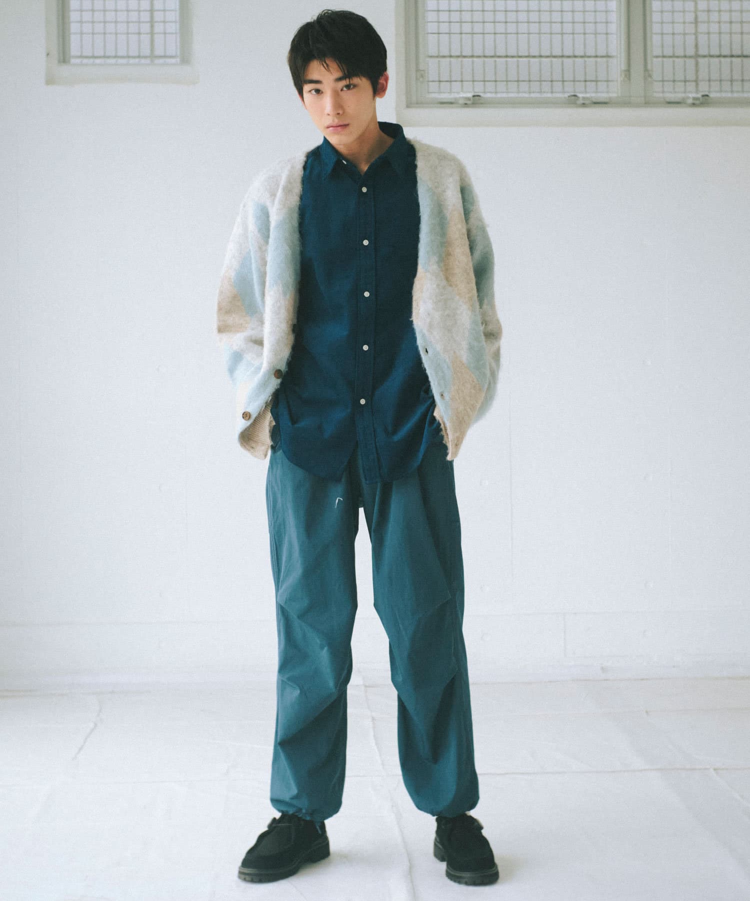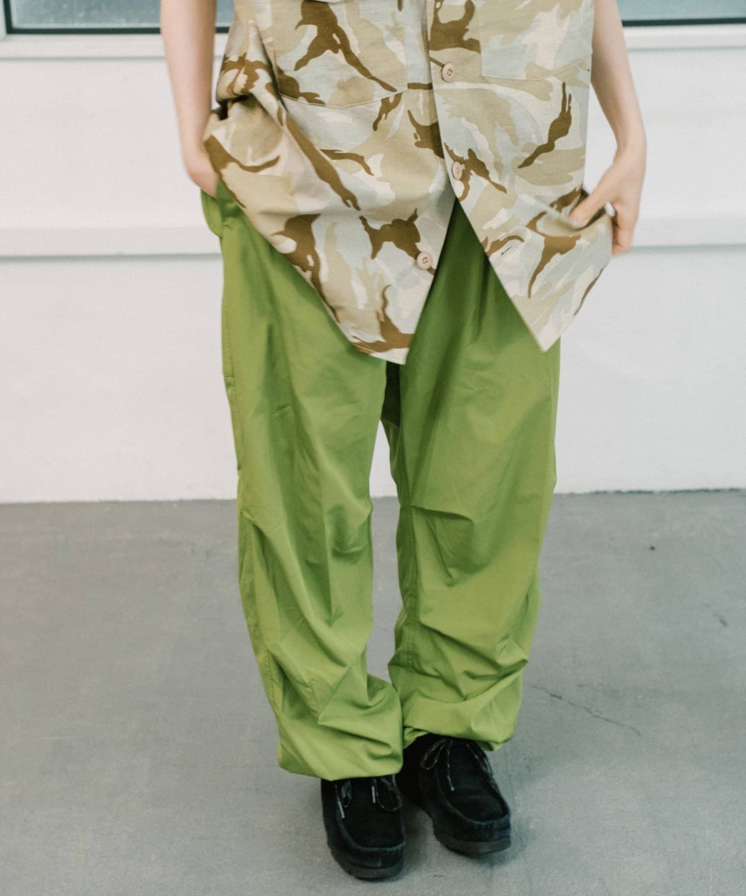 WHIMSICでは、SNOW CAMO PANTSのディテールをそのままに、ビッグシルエットになりすぎない型にアップデート。