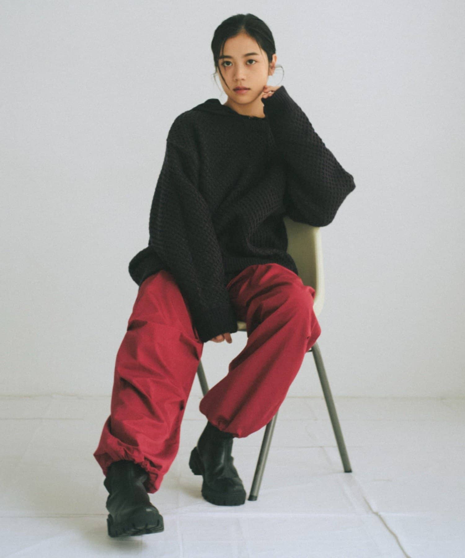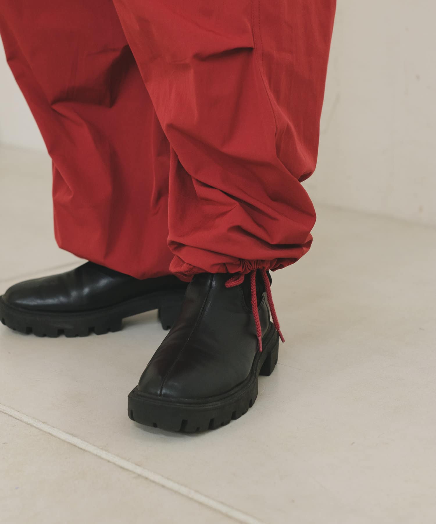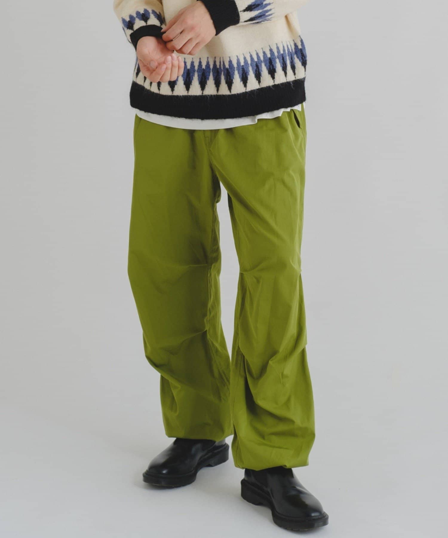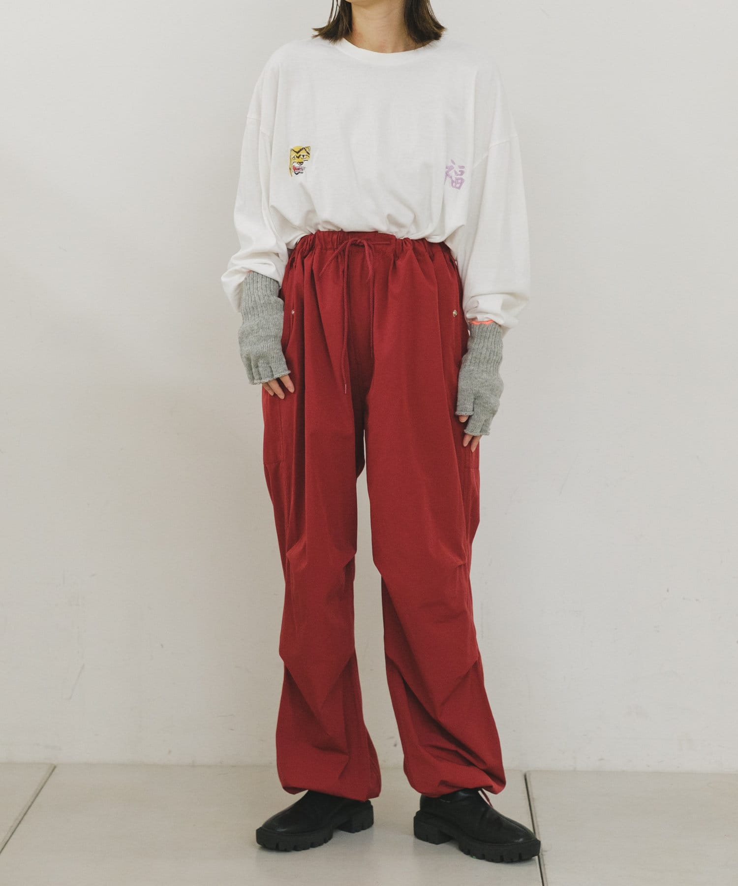 直接パンツの上から重ねて着るためビッグシルエットが特徴のパンツです。