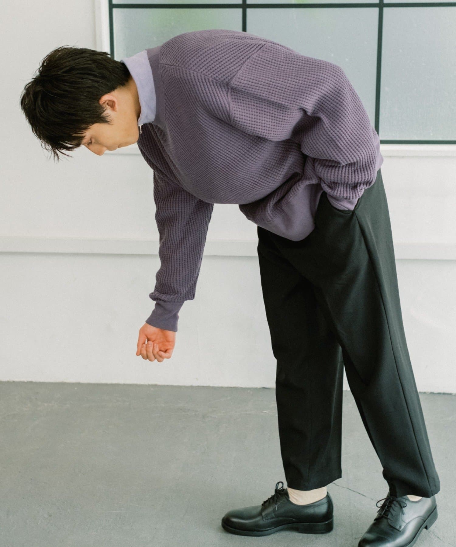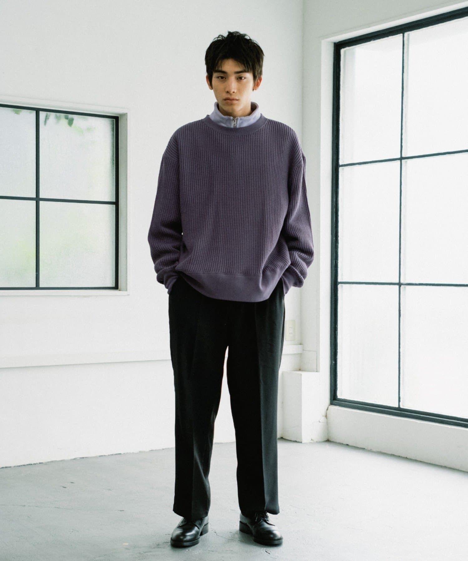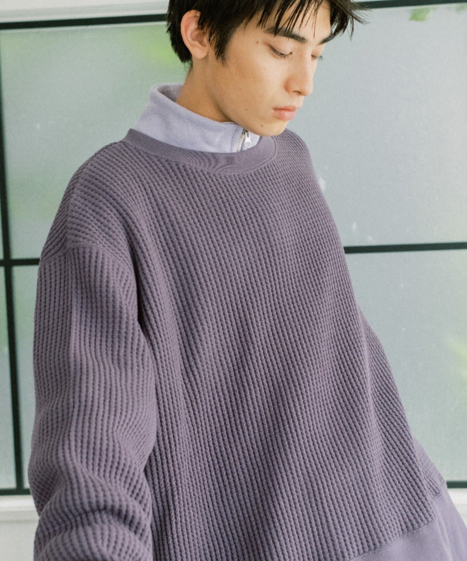 シンプルながらも素材感が引き立つワッフルプルオーバー。