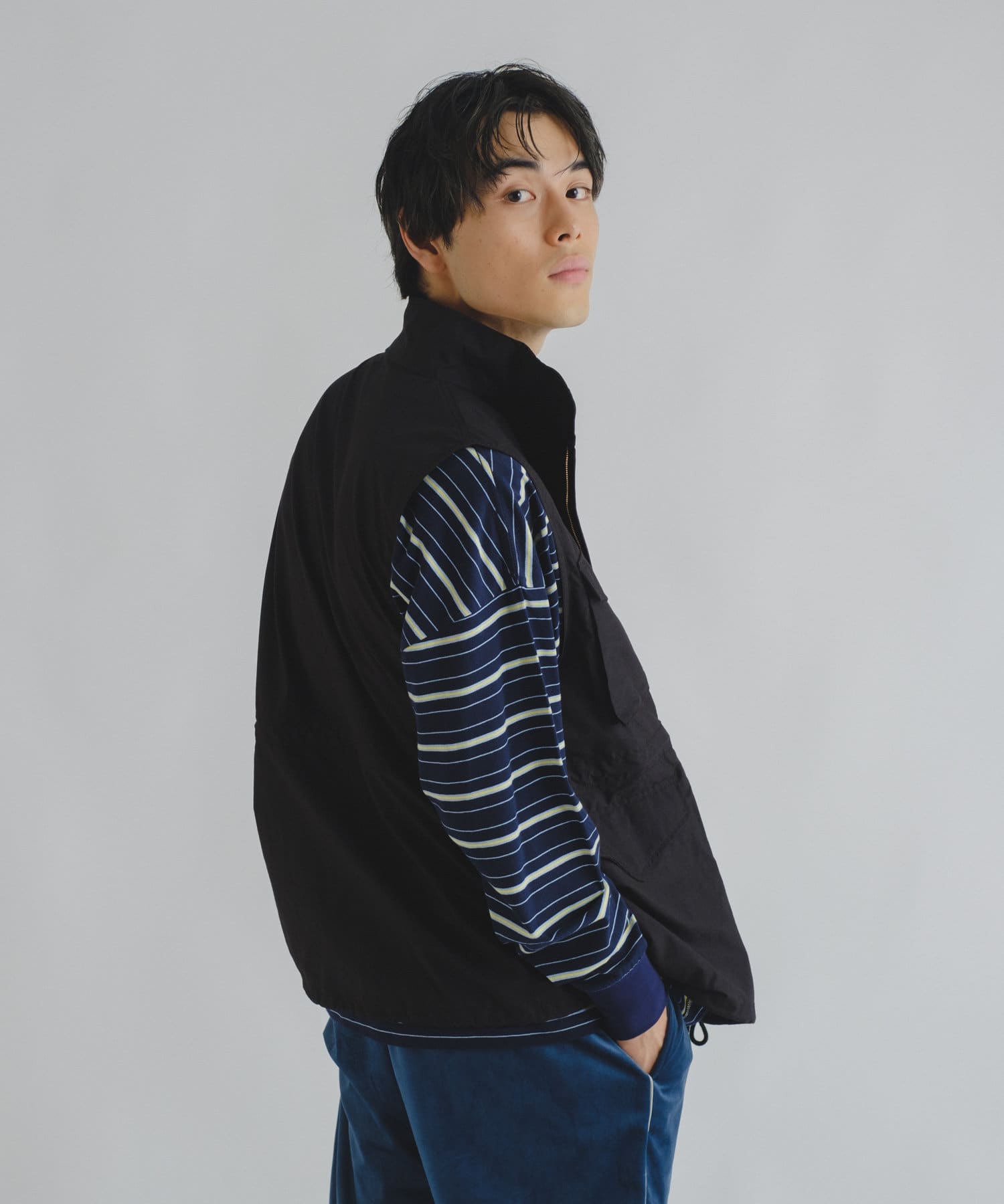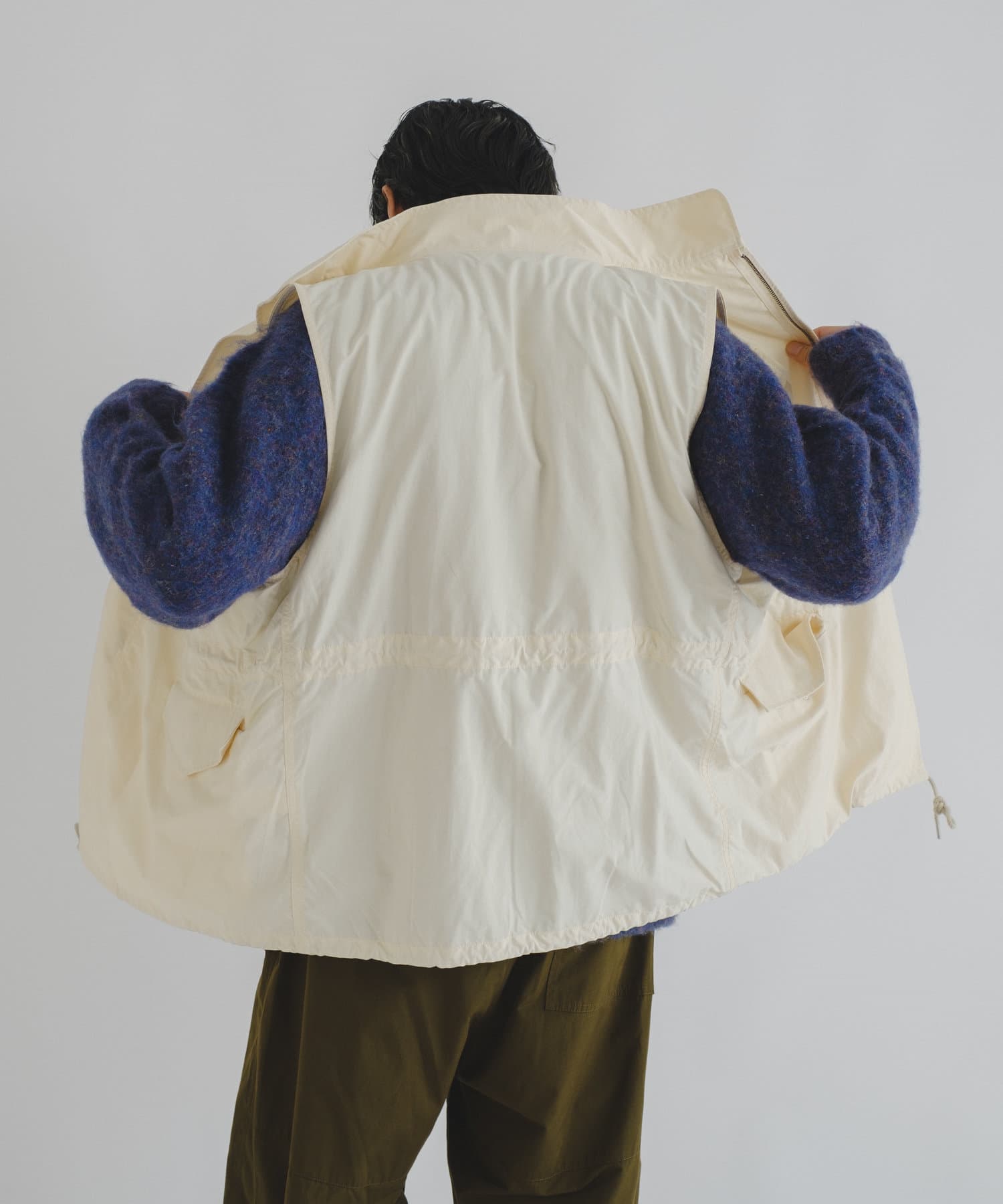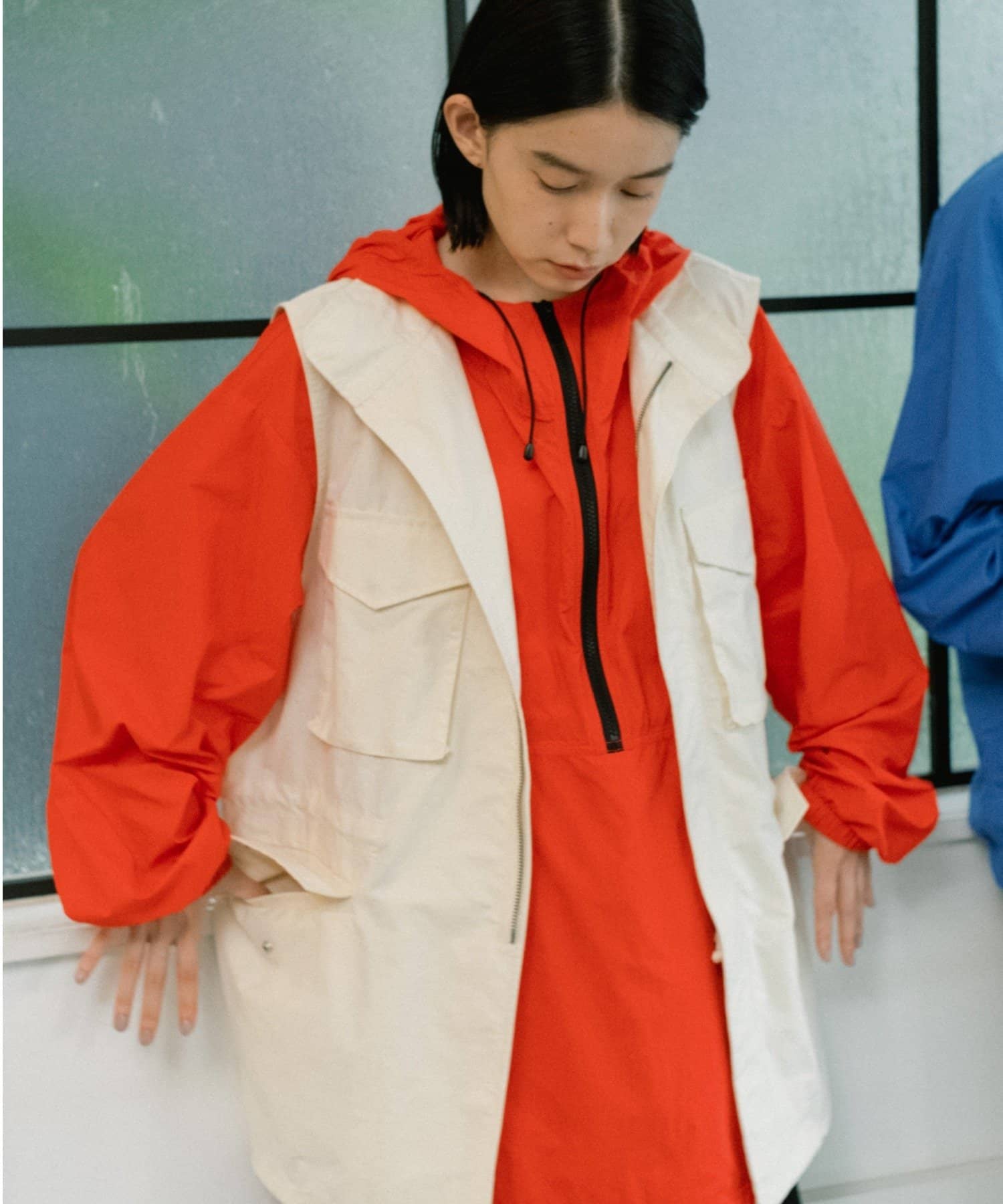 裾、ウエストのドローストリング調節することでミニマムなスタイリングも可能。