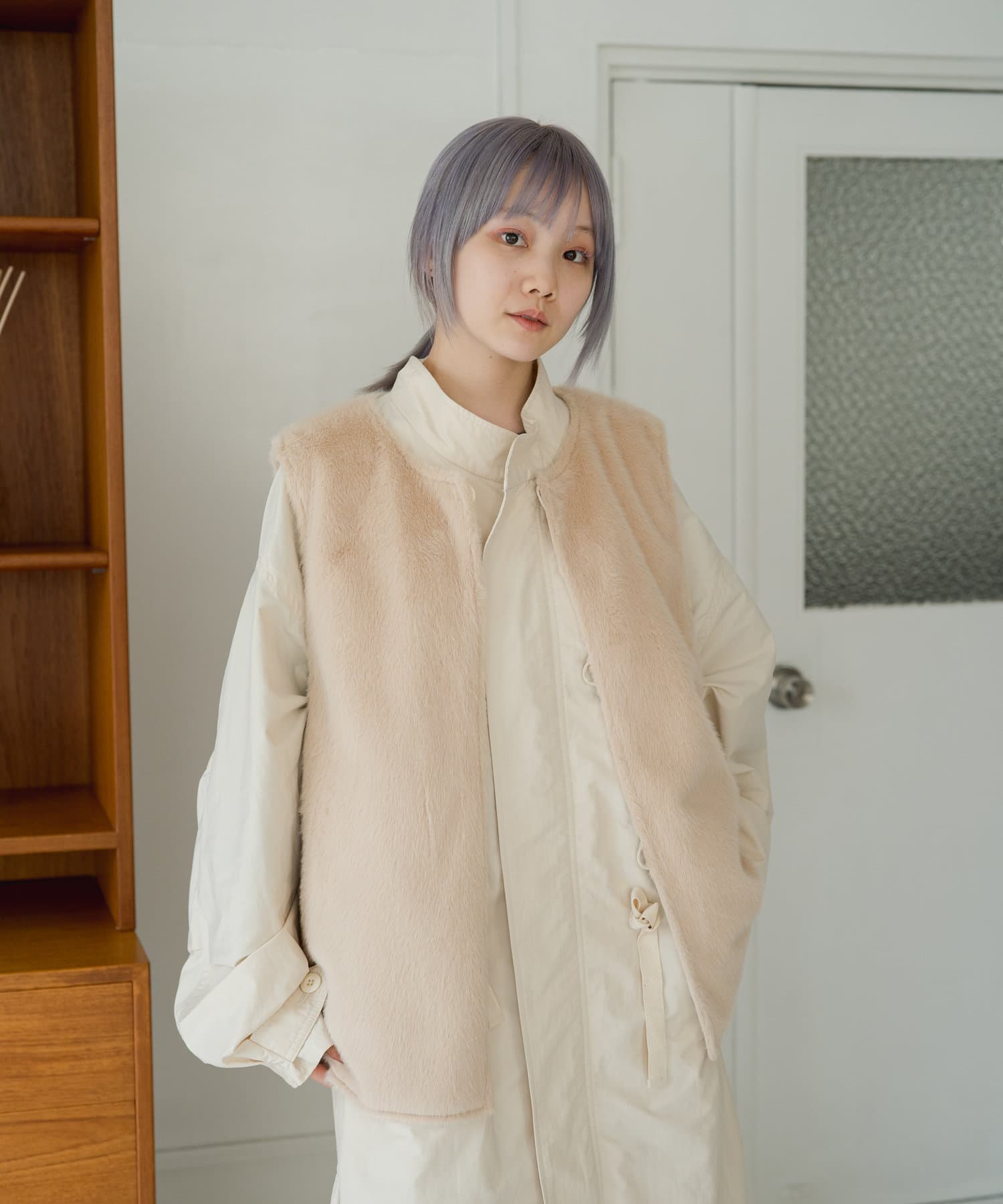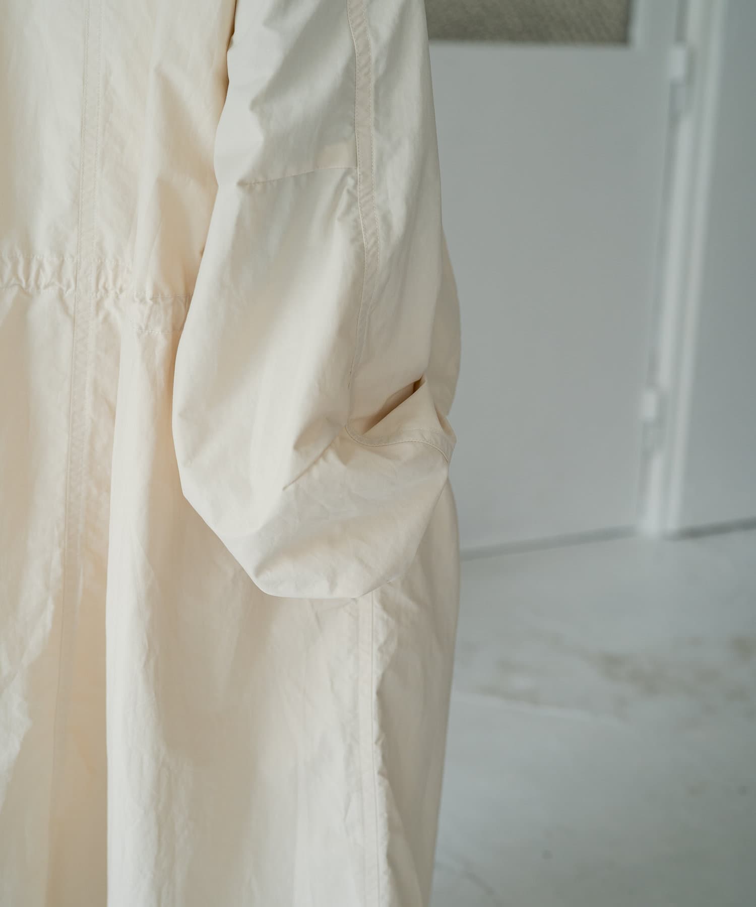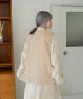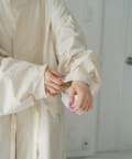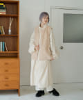 たっぷりした作りなので、インナーにパフスリーブニットやボリューム袖を着てももたつかずに着て頂けます。