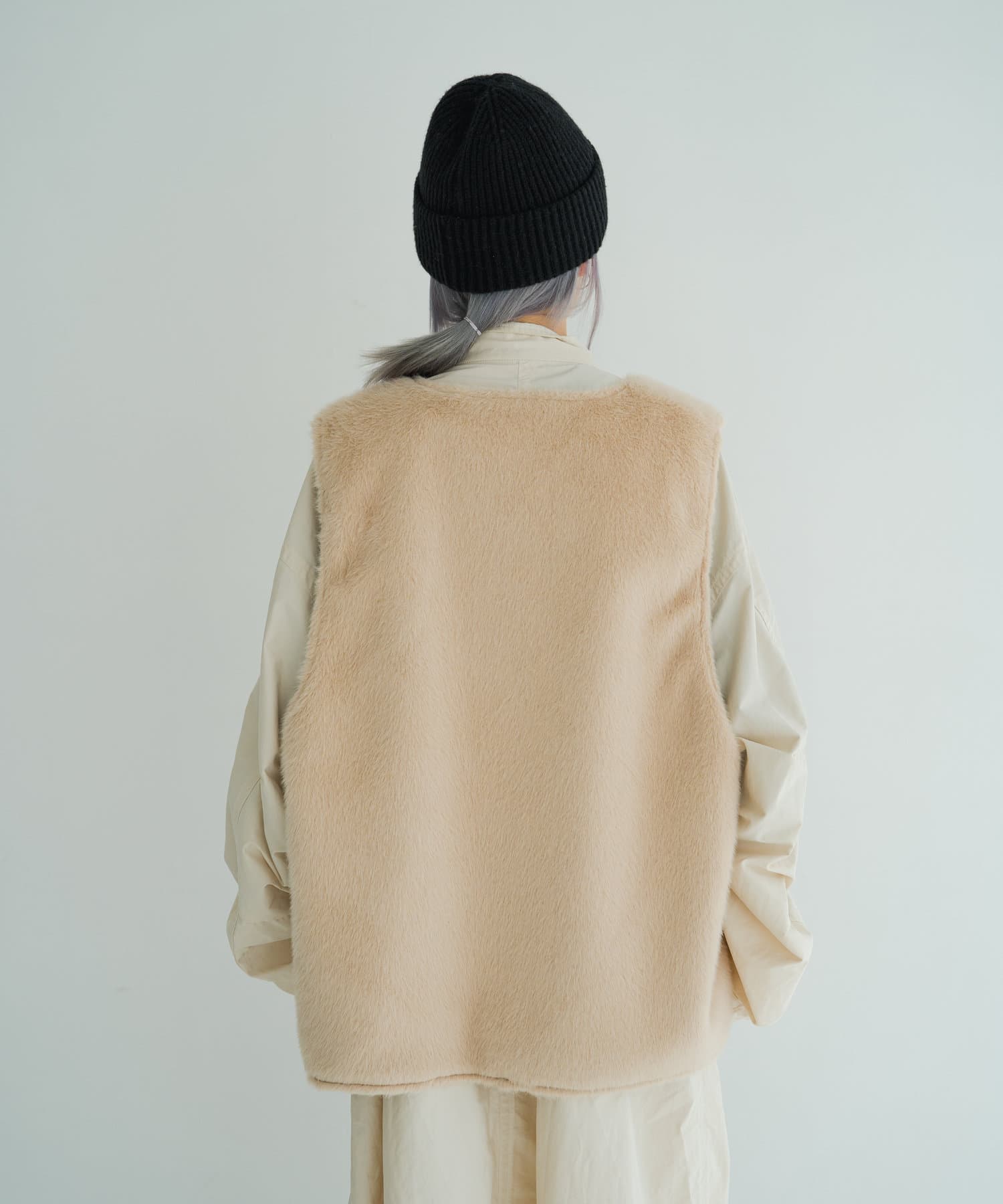 BIGシルエットを活かし、肉厚なニットの上にも羽織りやすいメリットがあります。