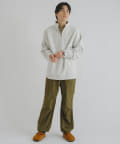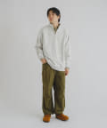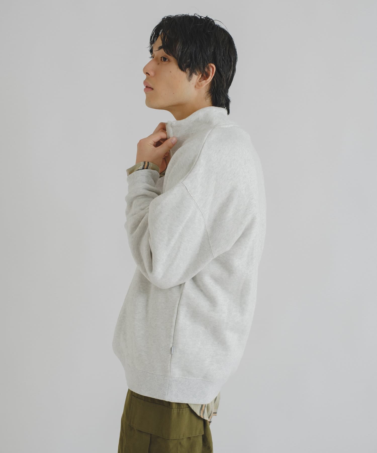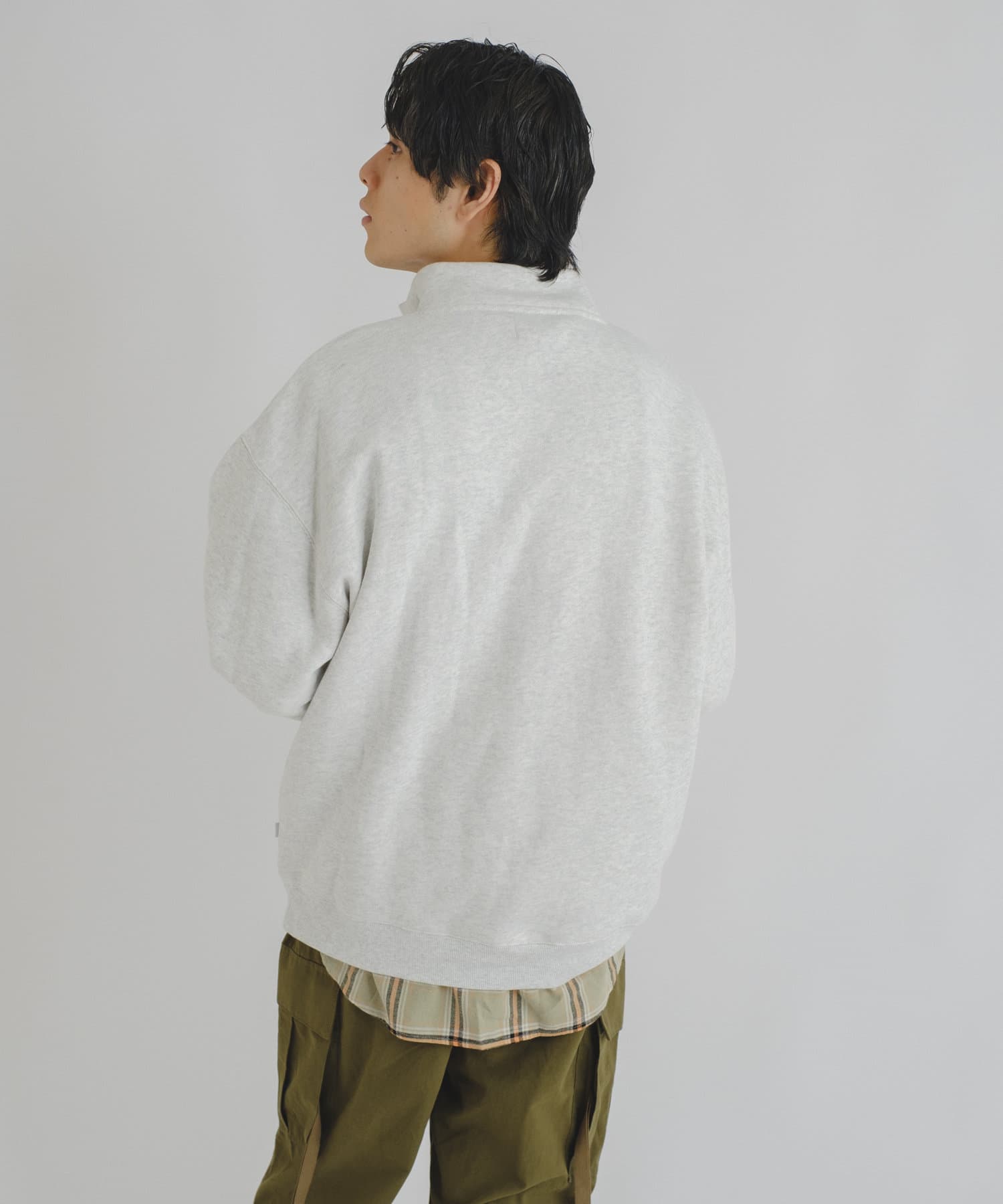 スタンドカラーのハーフジップデザインスウェット。重ね着できるルーズシルエットでアウターからインナーとしても使えるアイテムです。