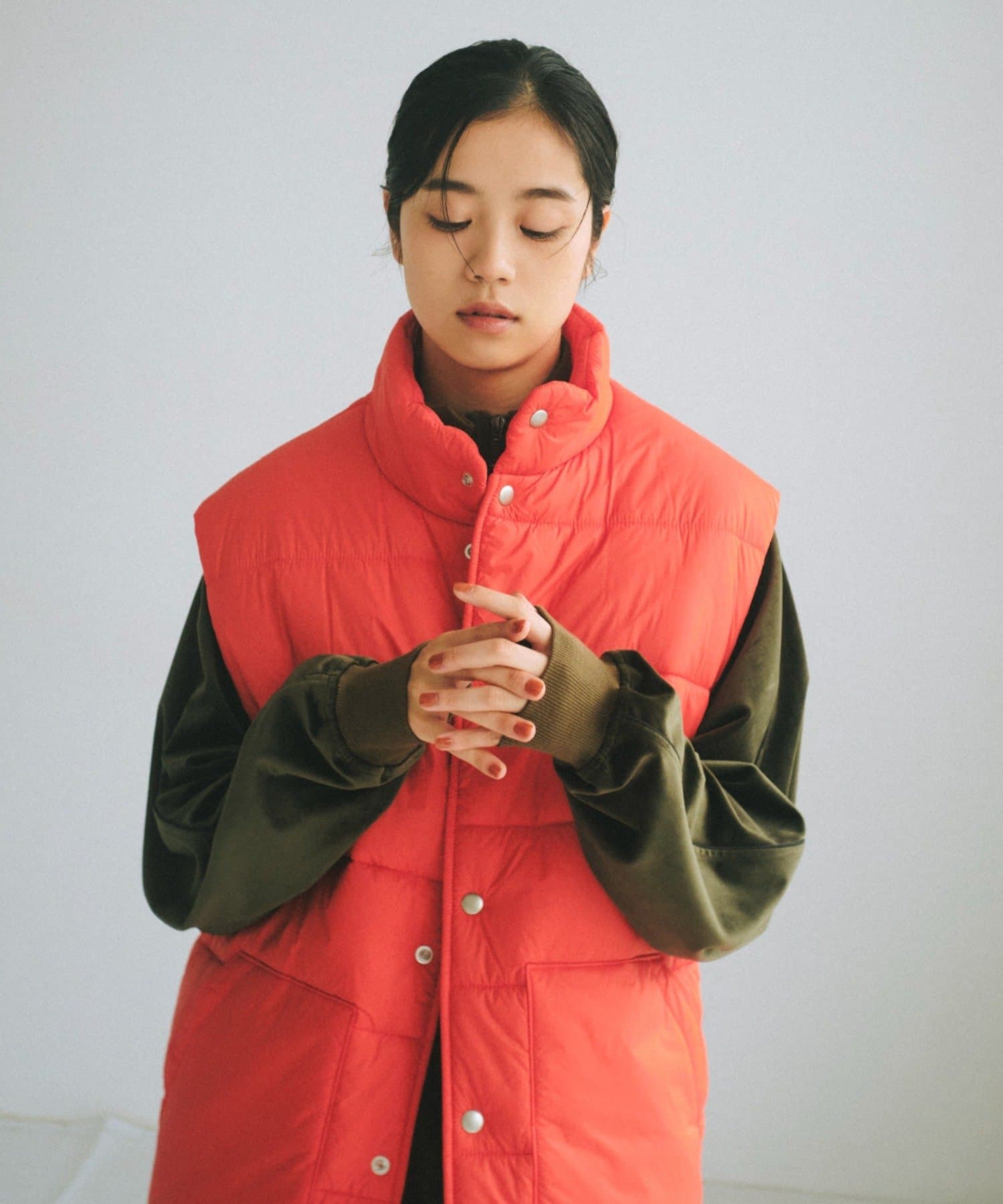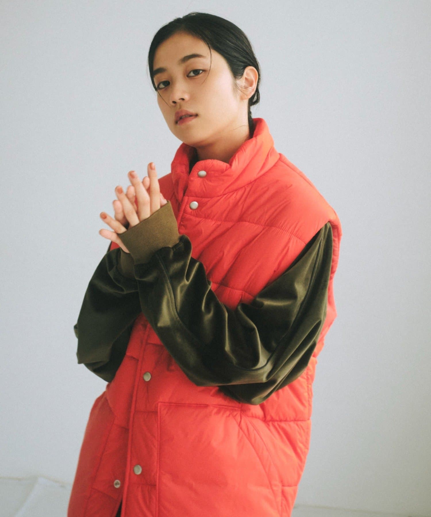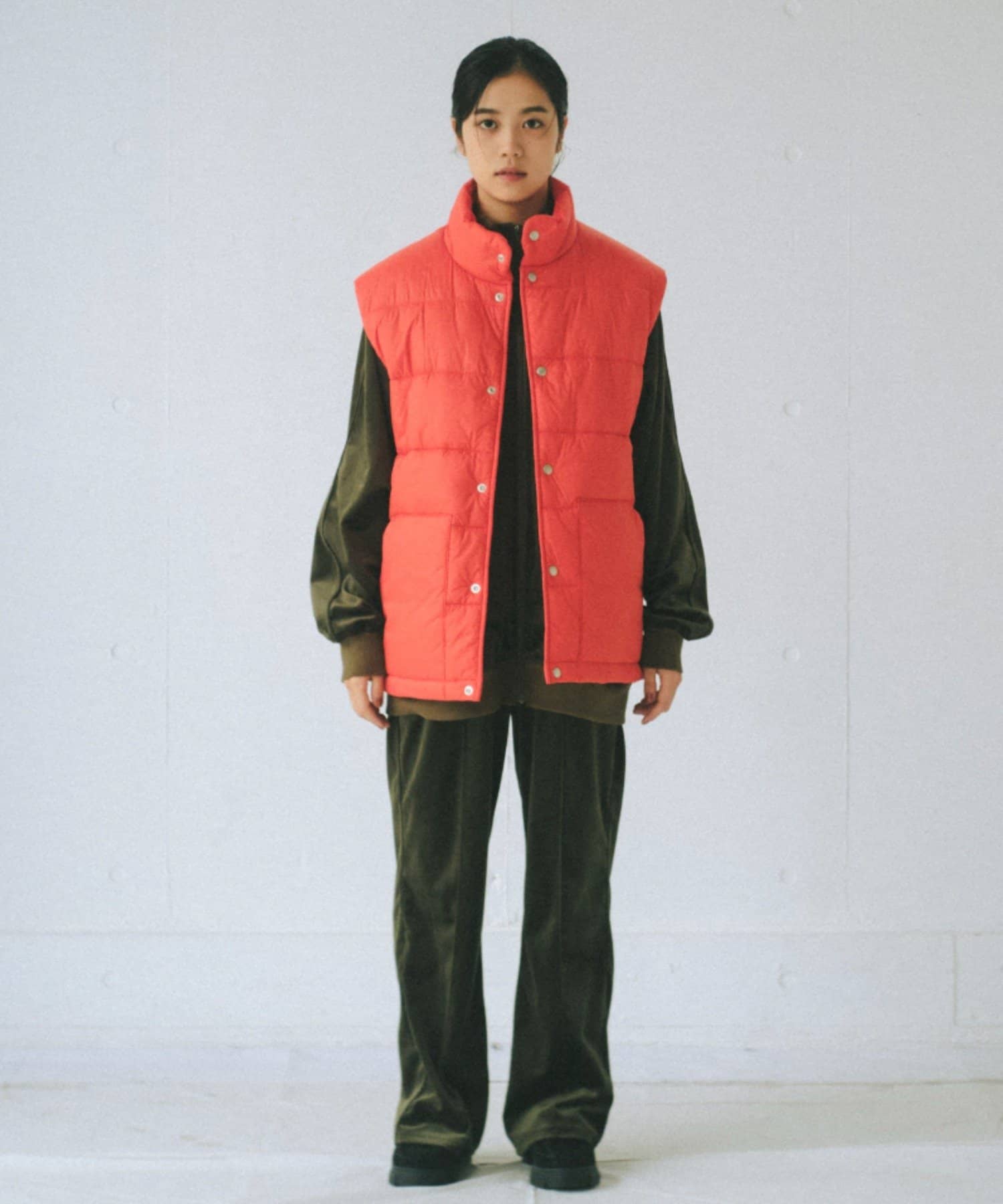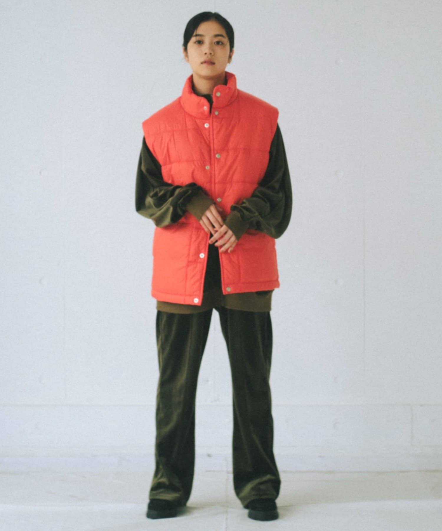現代のサイズ感にアップデートした中綿ベストです。