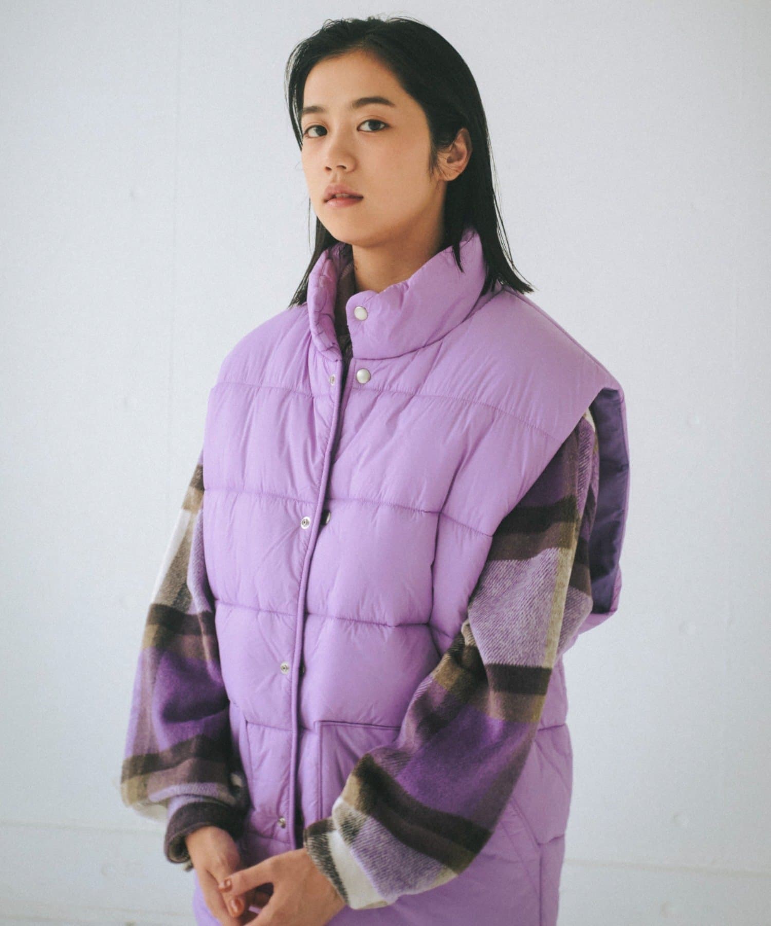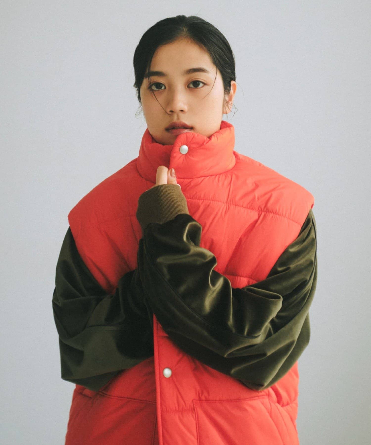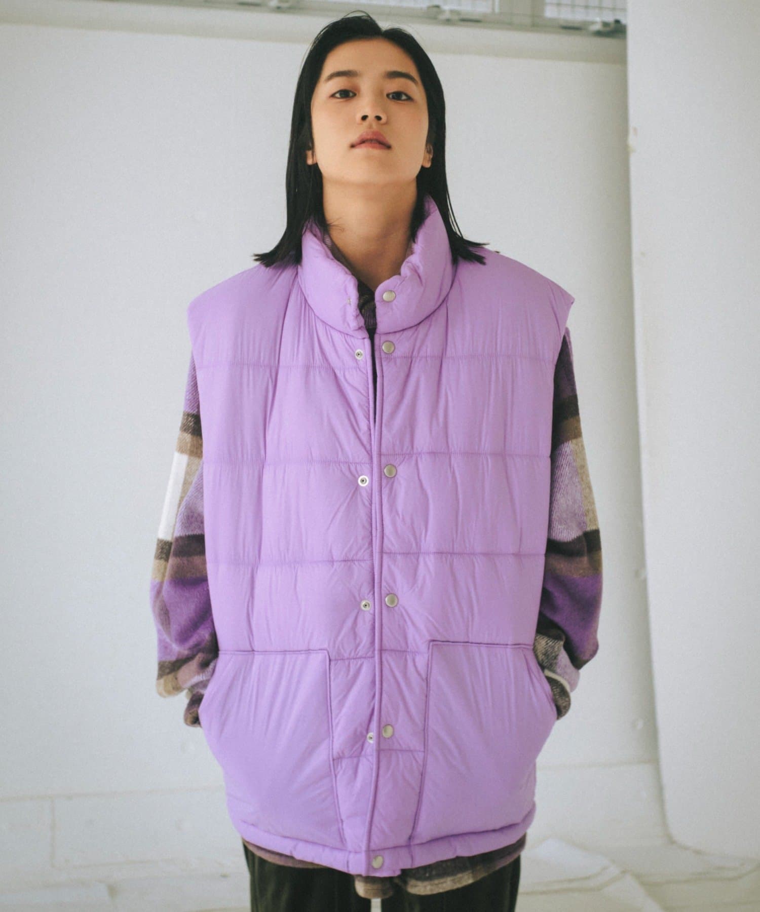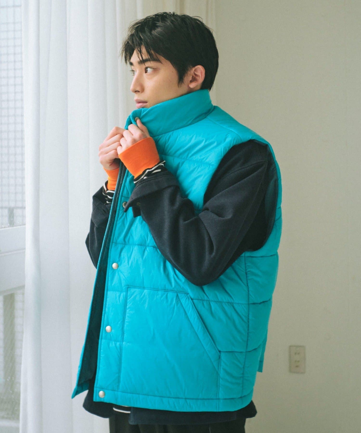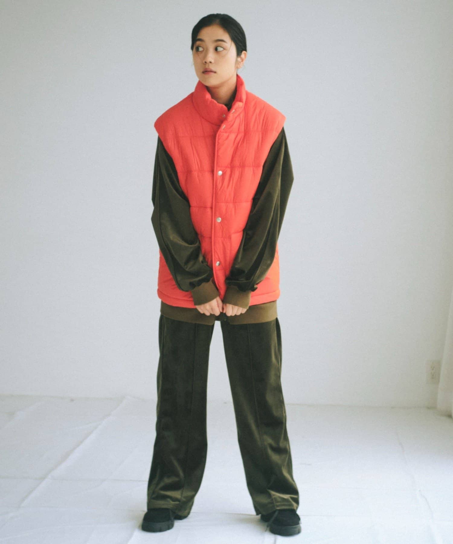 現代のサイズ感にアップデートした中綿ベストです。