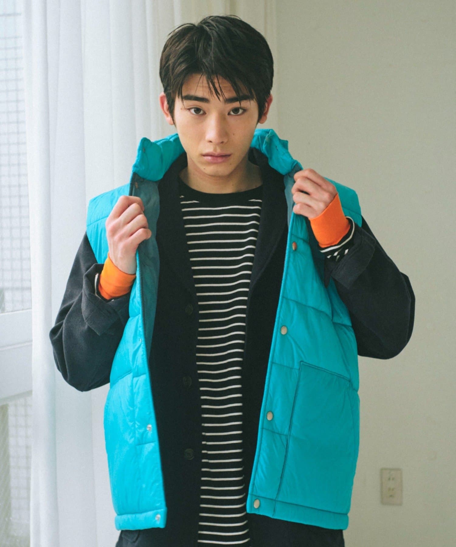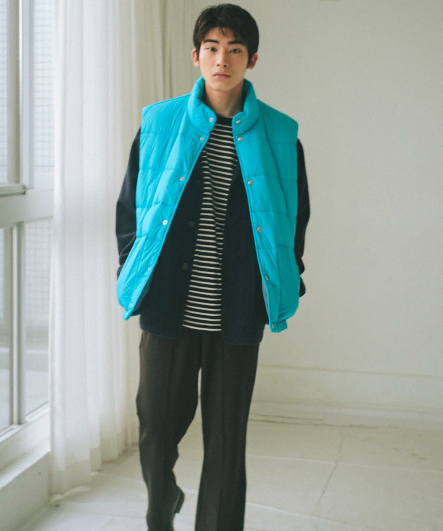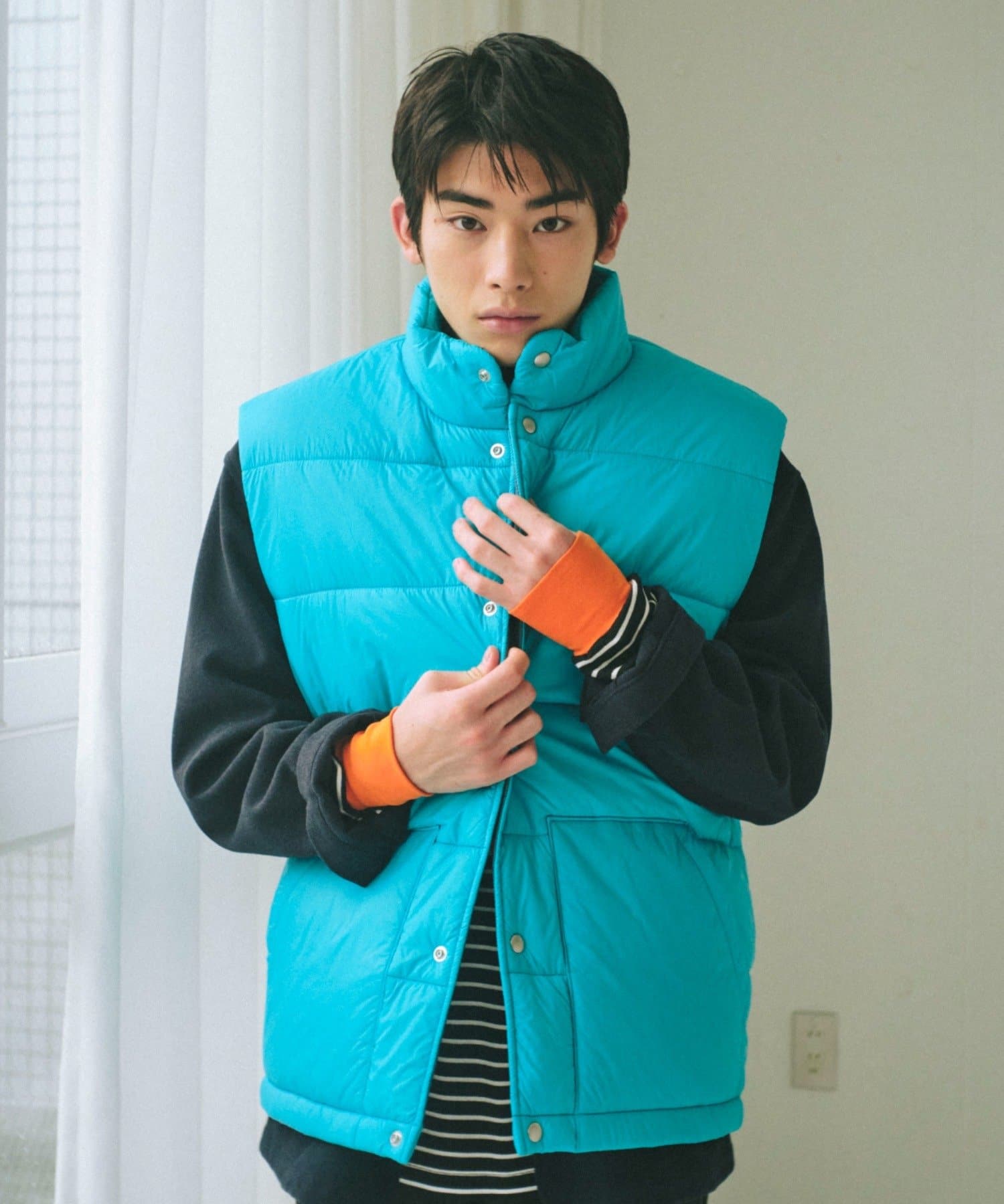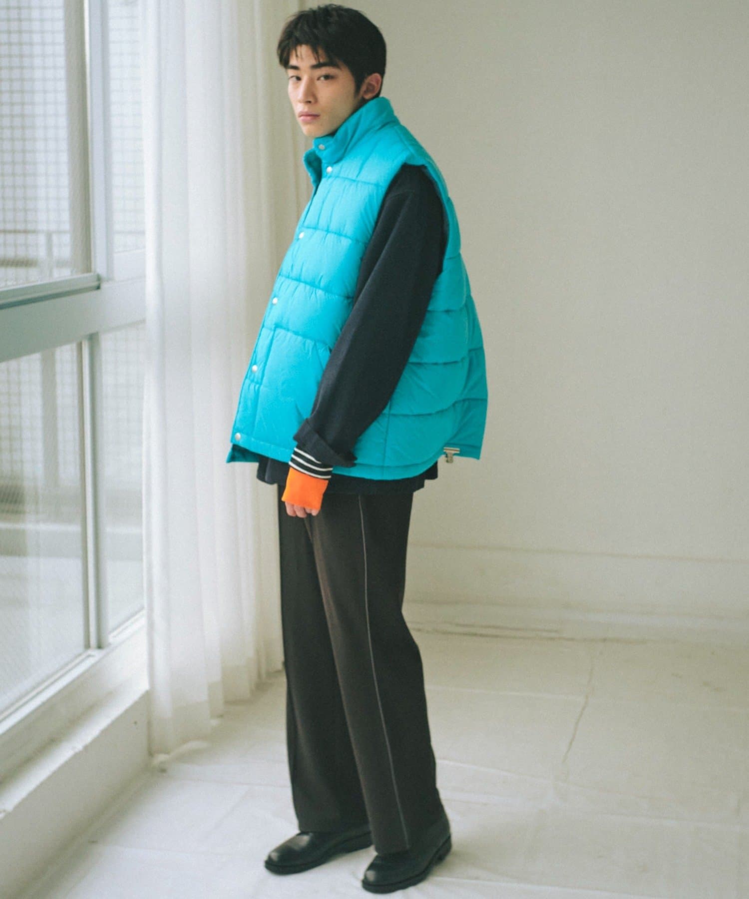 現代のサイズ感にアップデートした中綿ベストです。