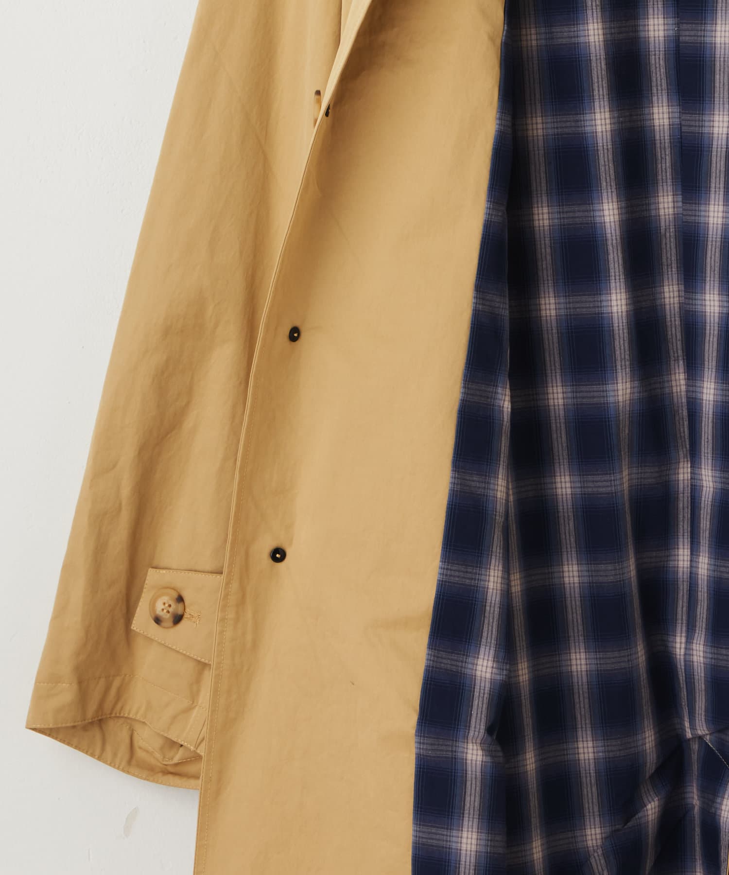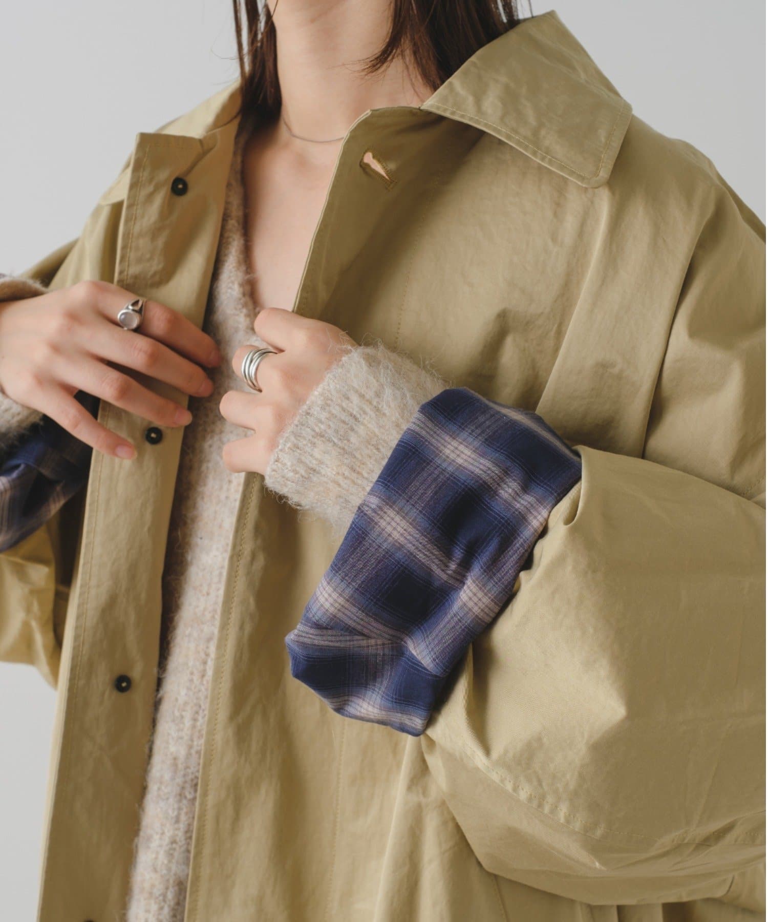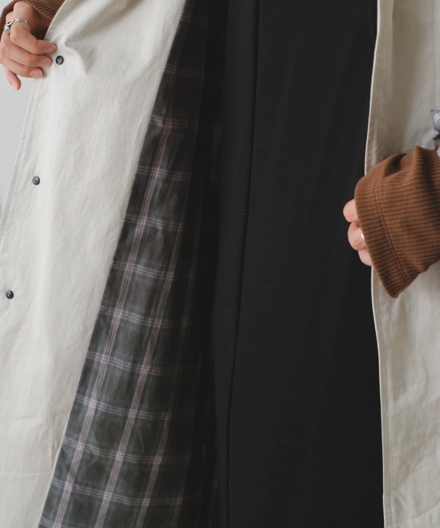 袖から見えるチェック柄はカラーによって異なる配色デザインです。