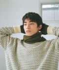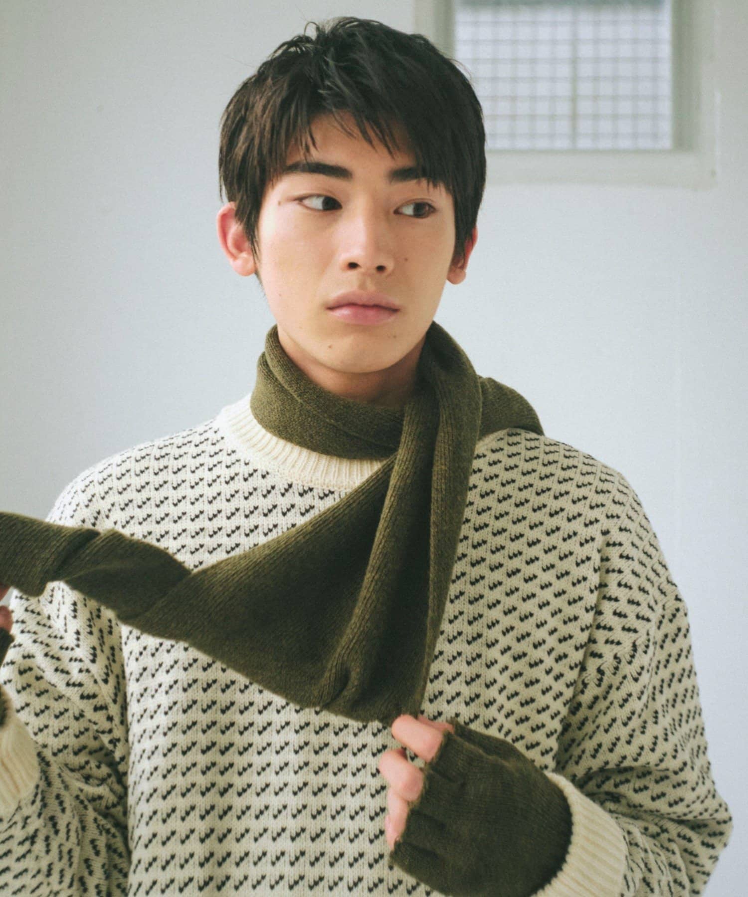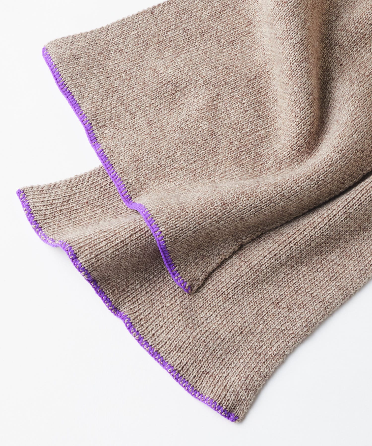 軽量で持ち運びもしやすく、ボリュームを抑えた編地のニットマフラーです。